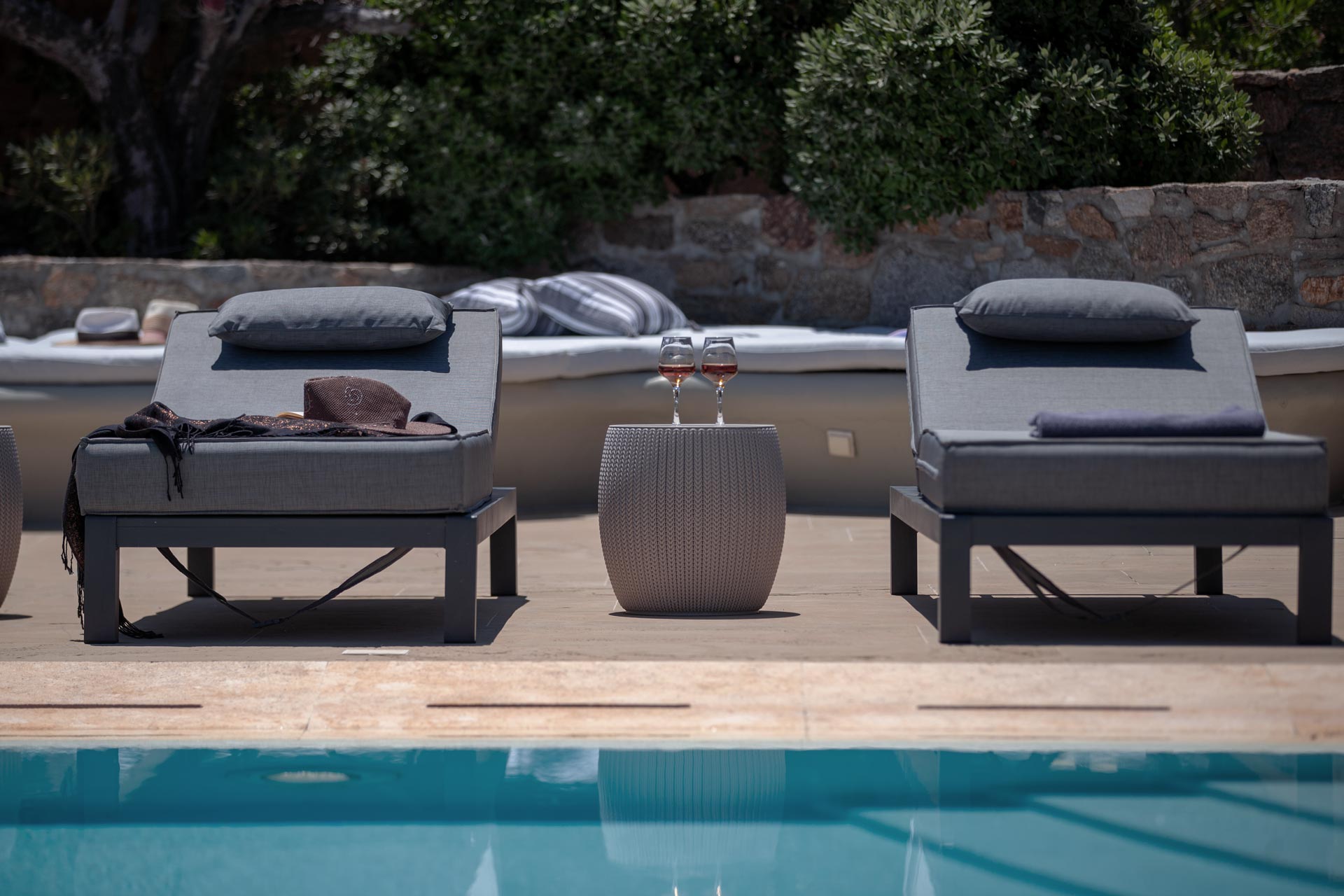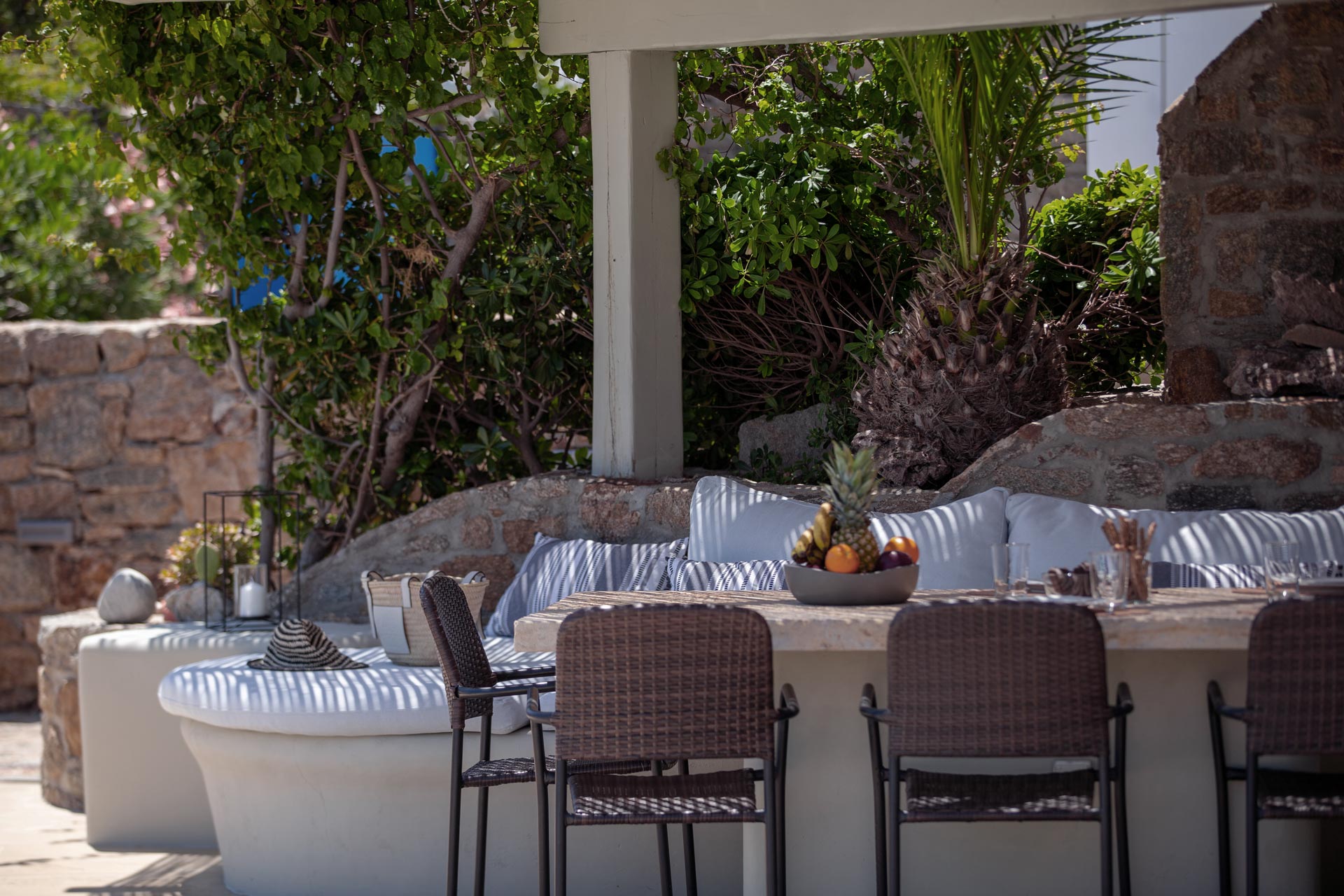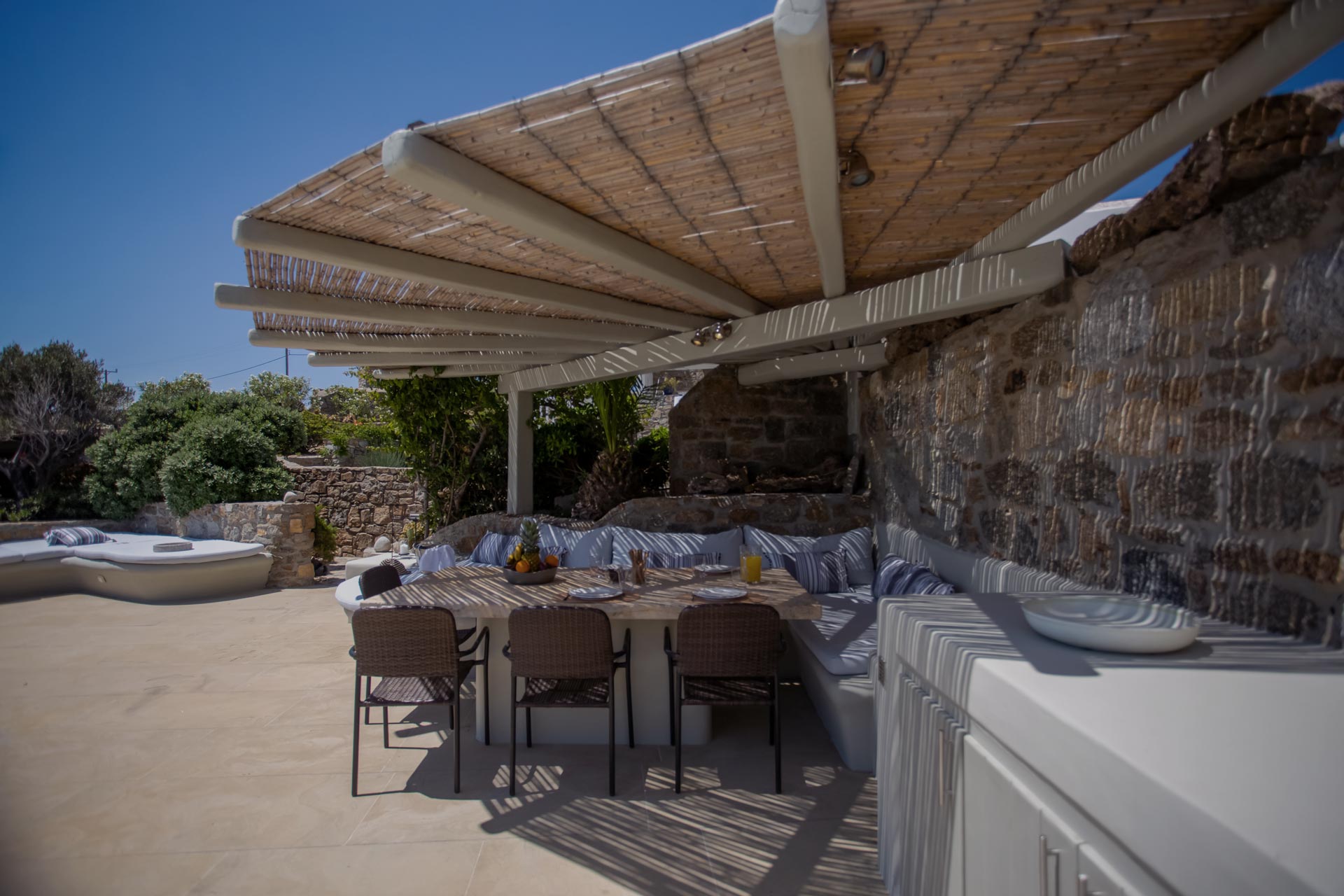 The villa extends over of 600 m2 furnished terraces and outdoor living areas, ideal for relaxation and entertainment :