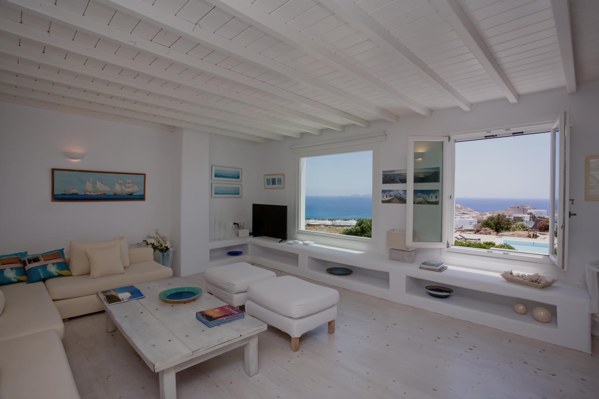 Nestled in the breathtaking landscape of Kalafatis, Villa Blue Lounge is a luxurious retreat offering comfort, and stunning sea views, including a direct sightline to Agia Anna Kalafatis. This 200m² villa is part of an exclusive complex but ensures privacy with its private pool.