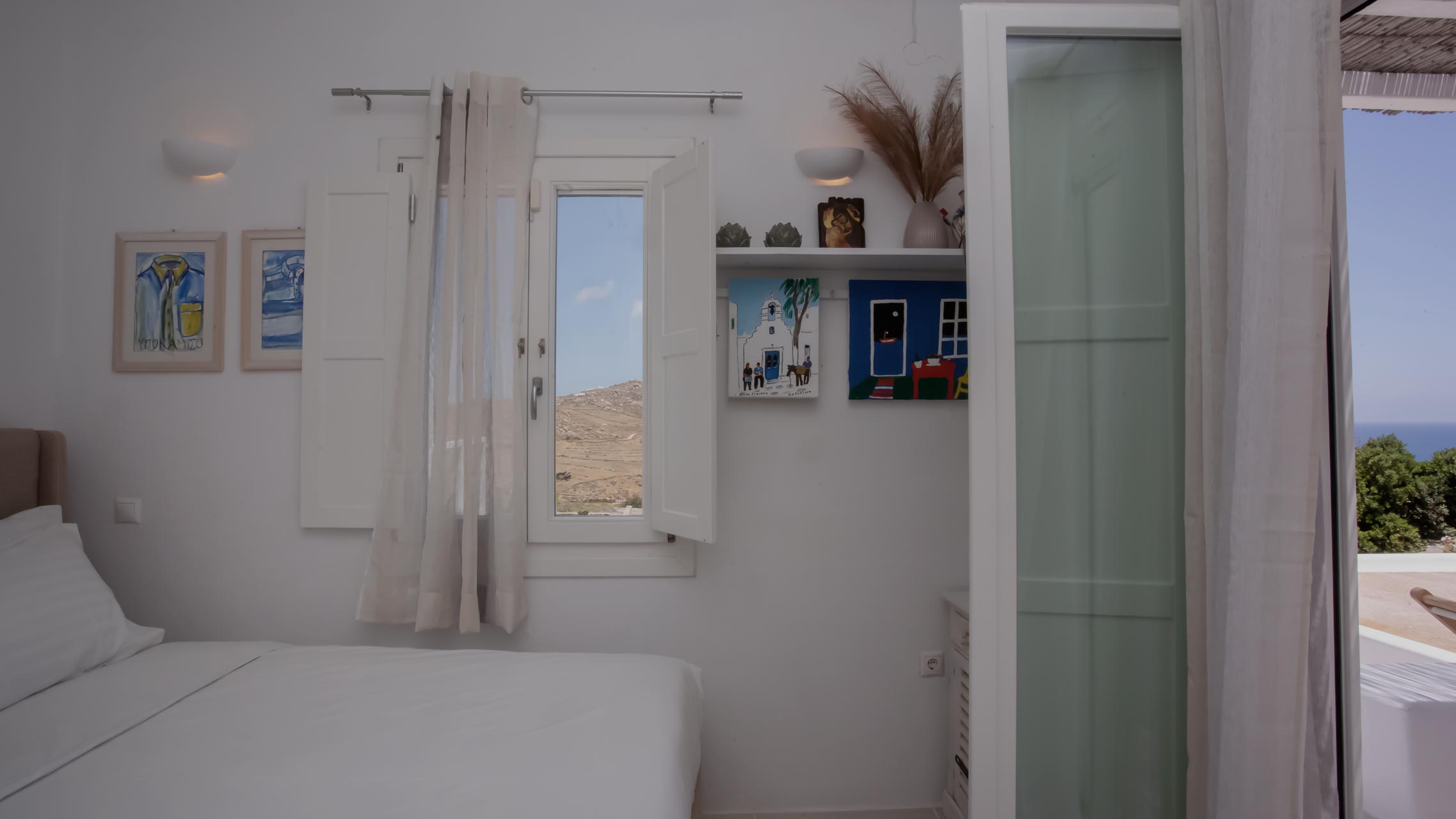 • Room 2: Double Bedroom with shower, pool access, double-size bed, A/C, and bath essentials.