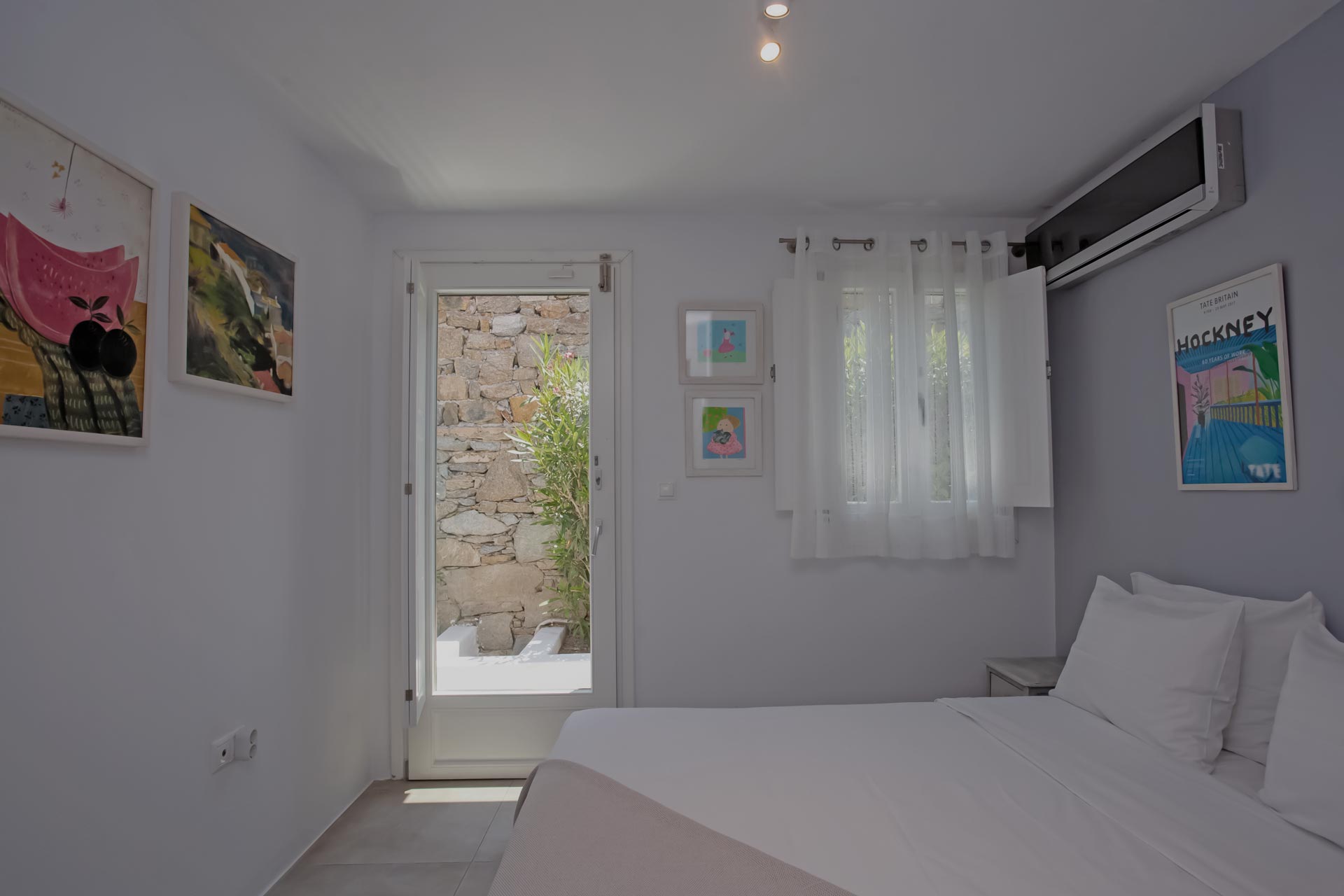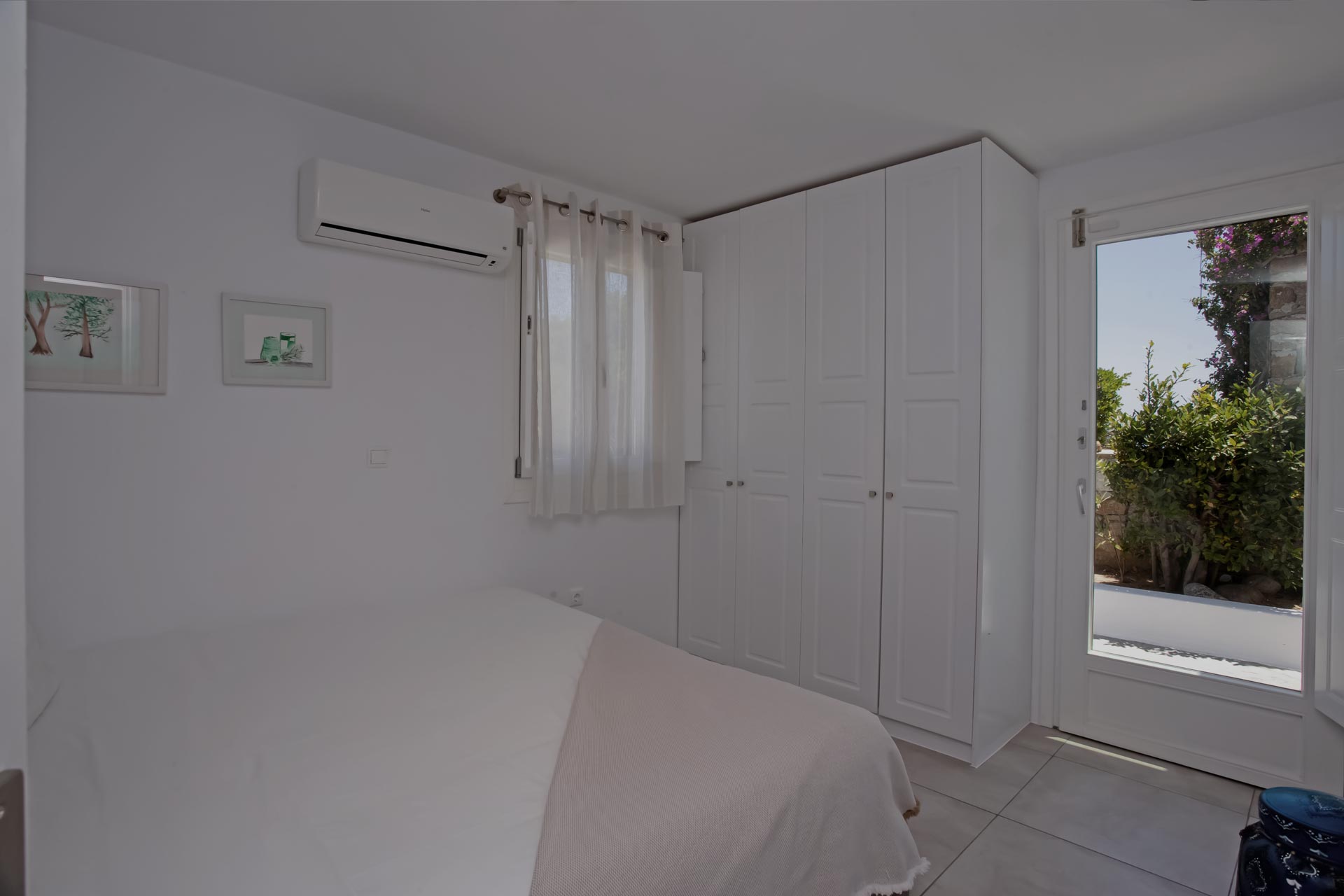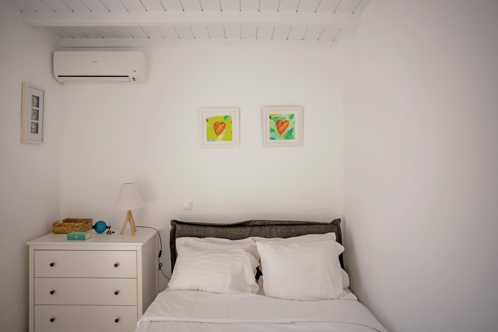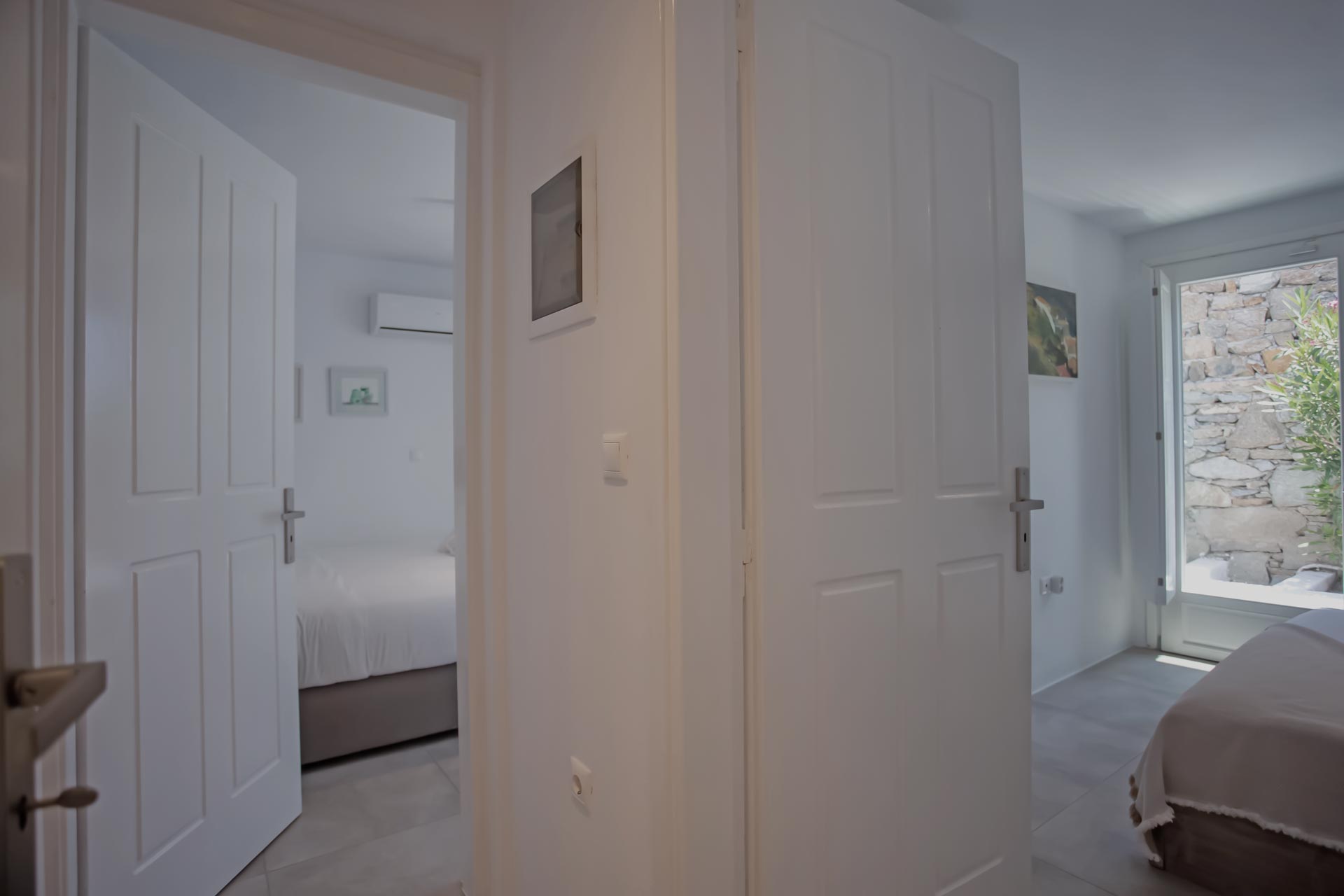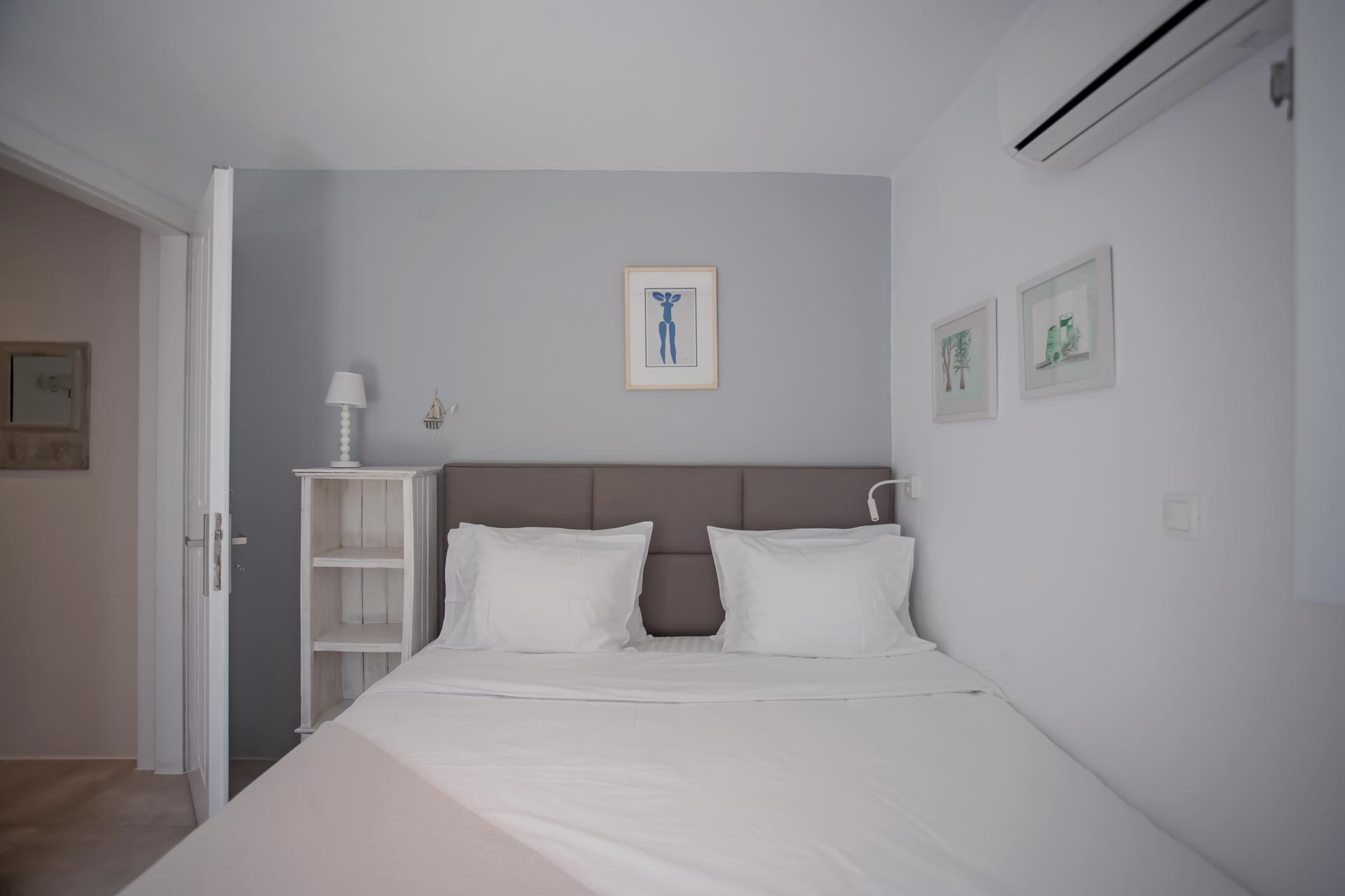 • Room 3: Double Room with shower, direct bathroom access, queen-size bed, and A/C.