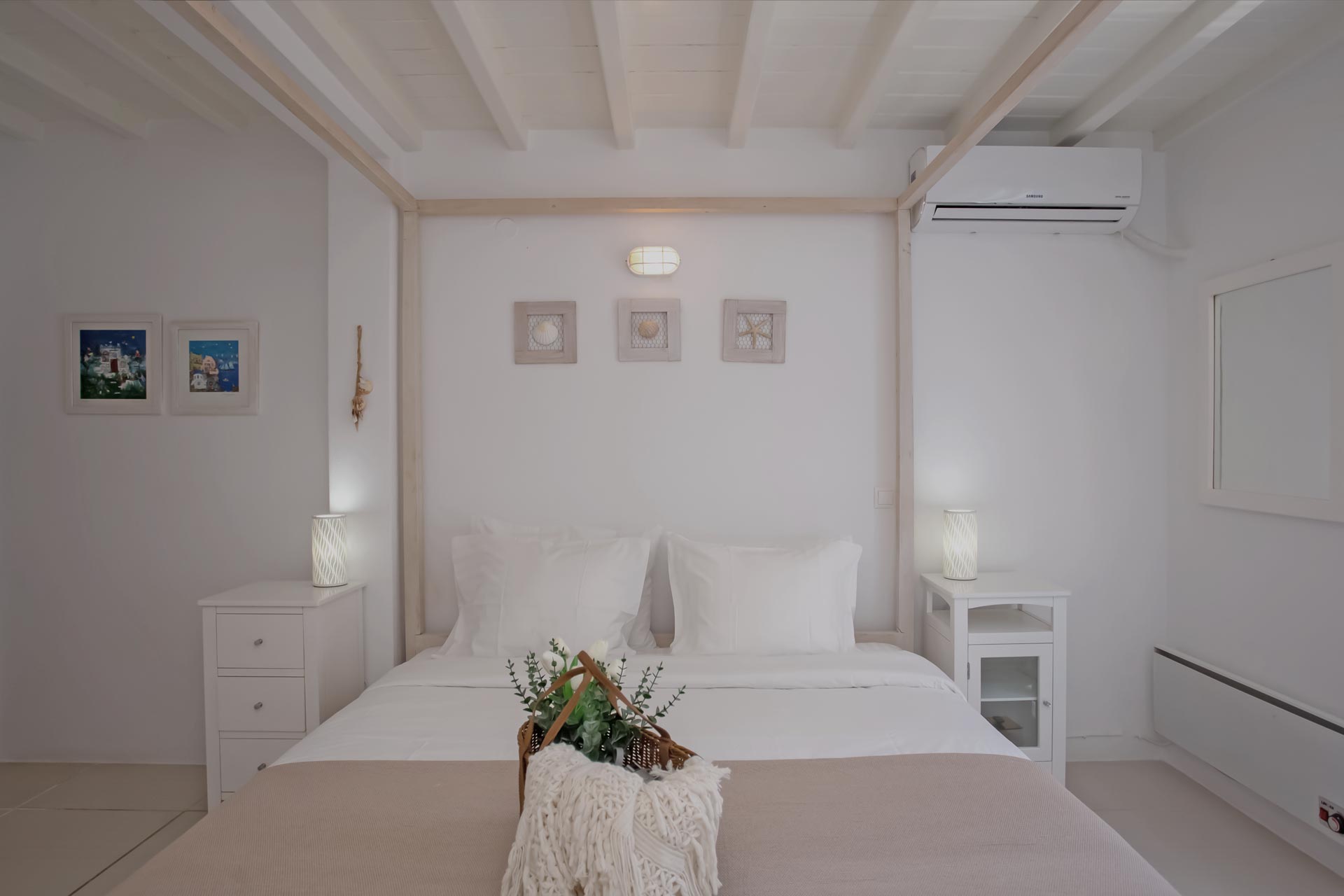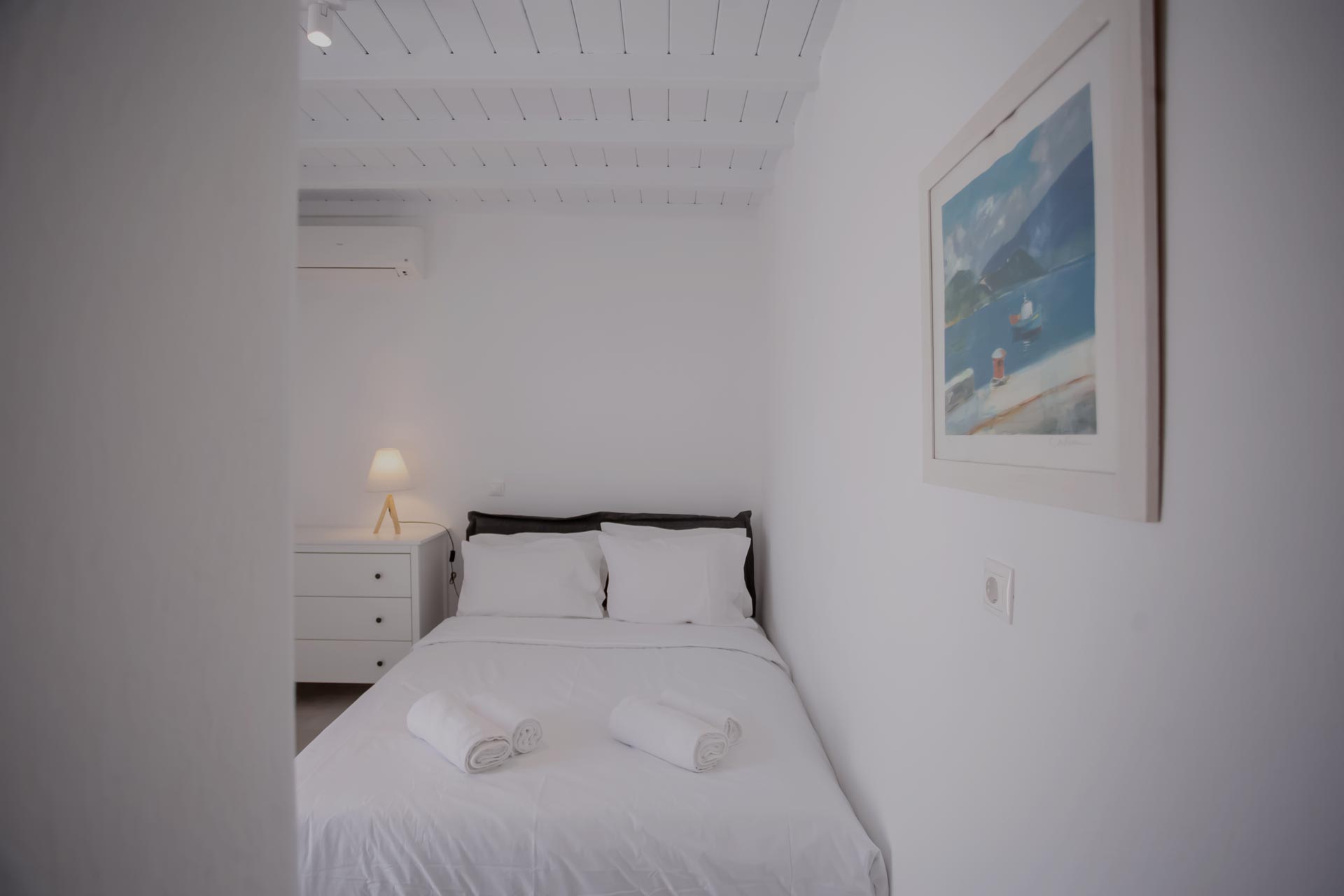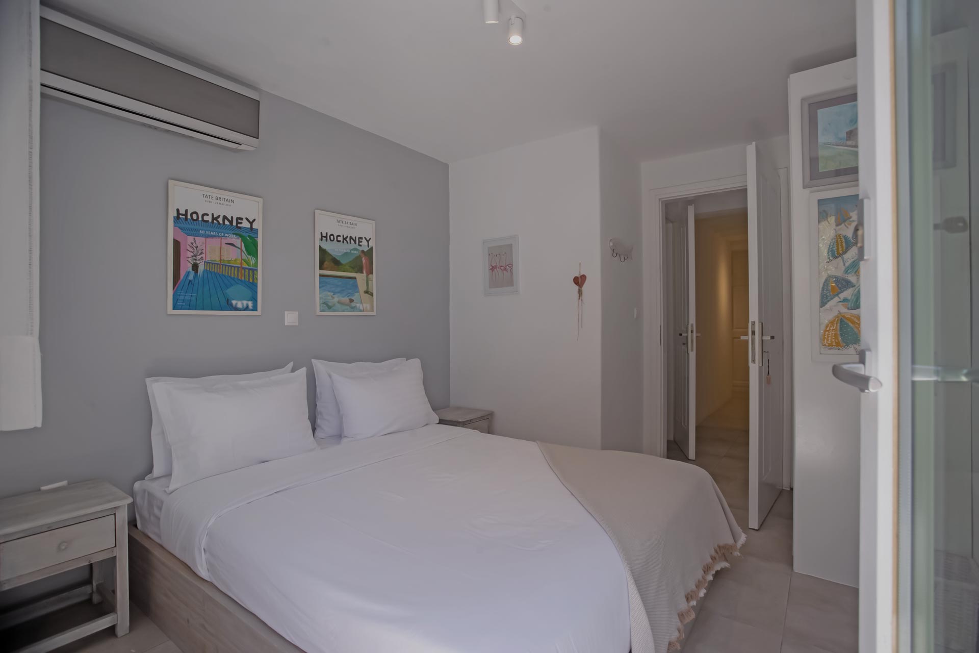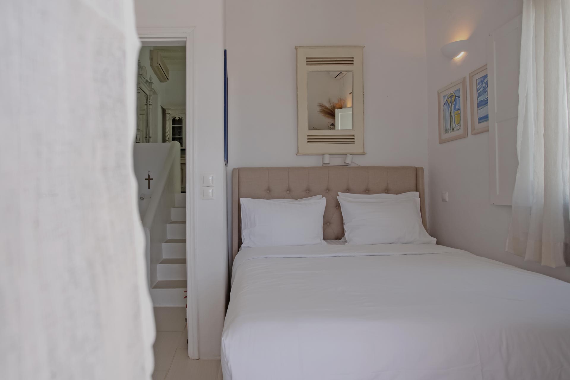 • Room 3: Double Room with shower, direct bathroom access, queen-size bed, and A/C.