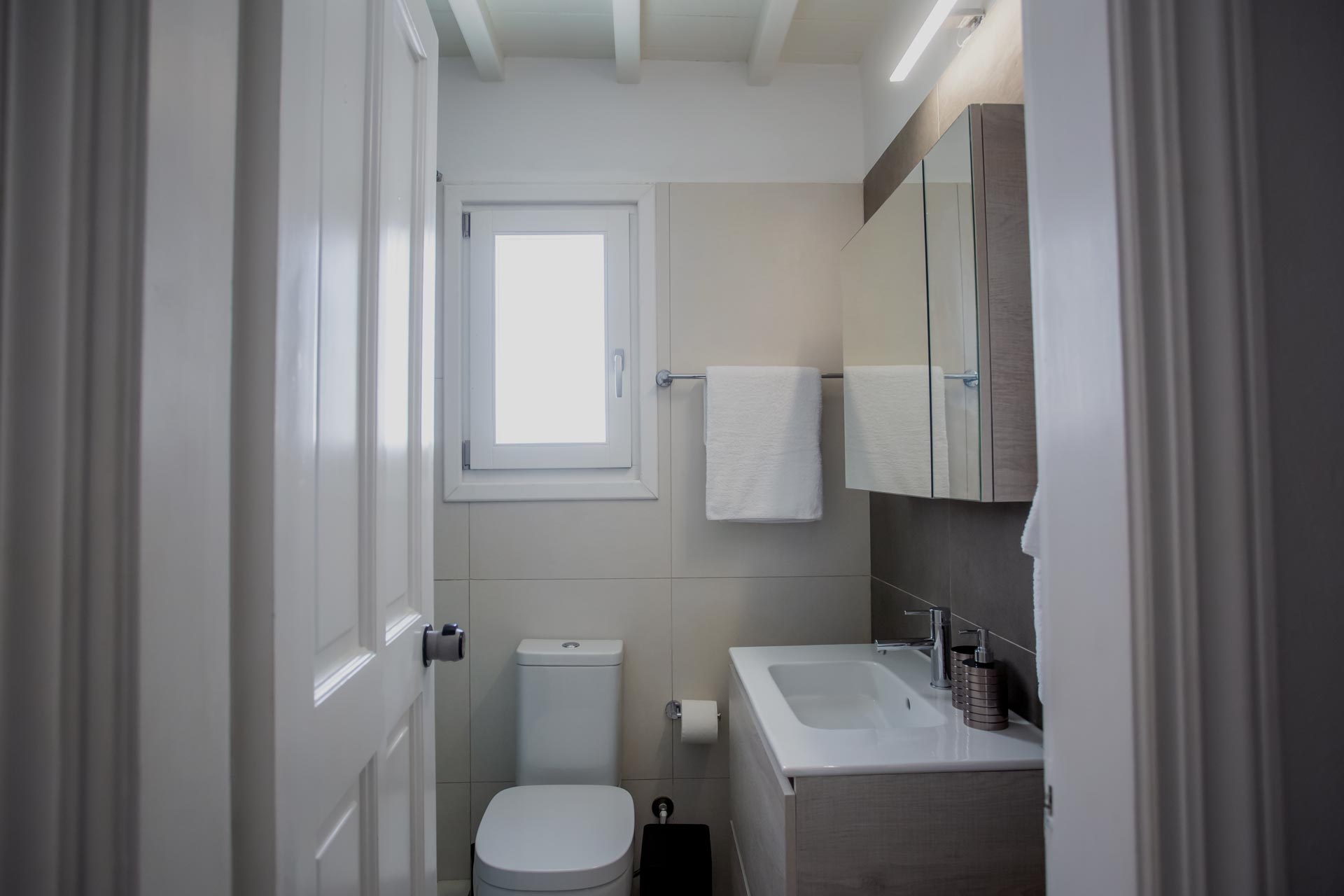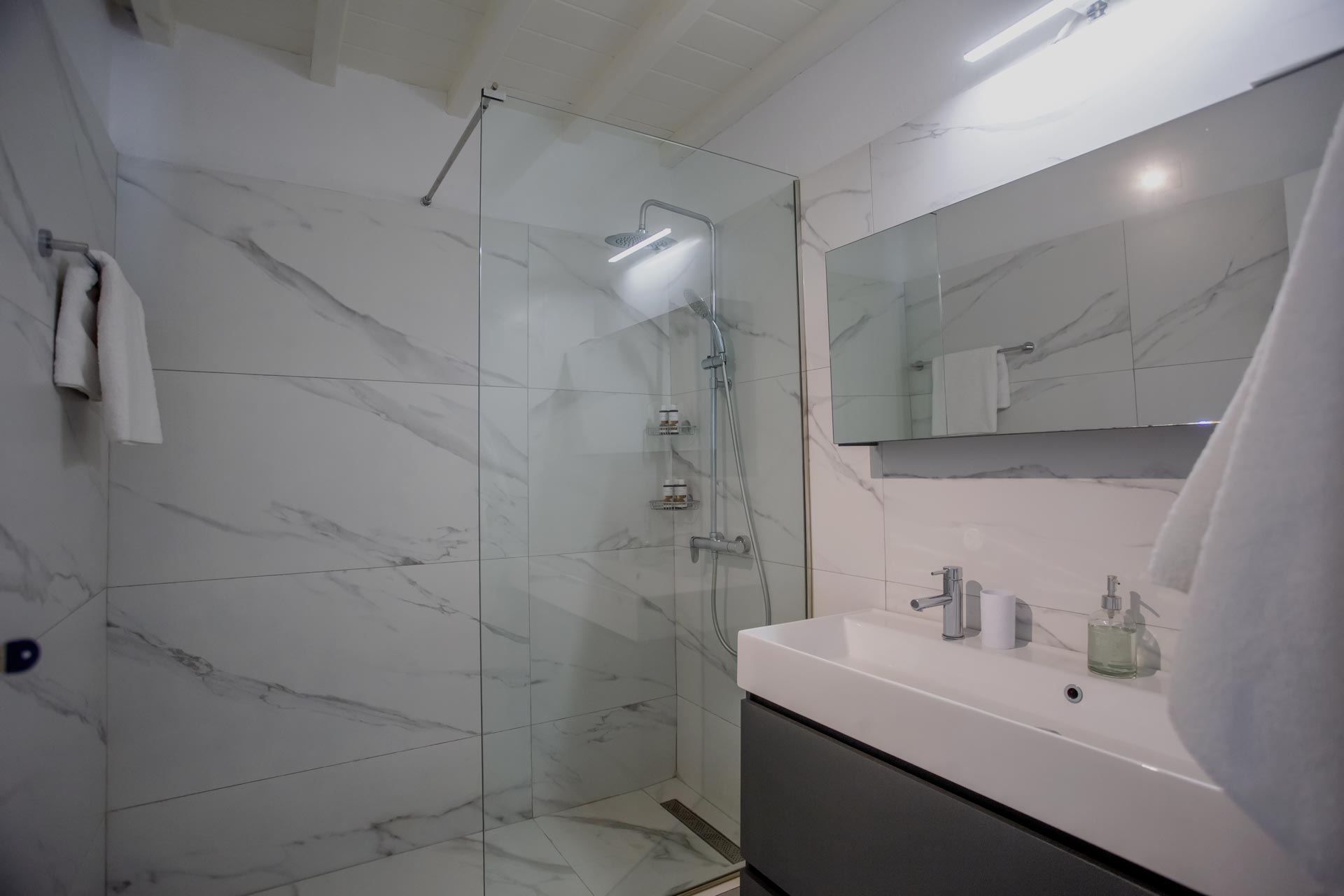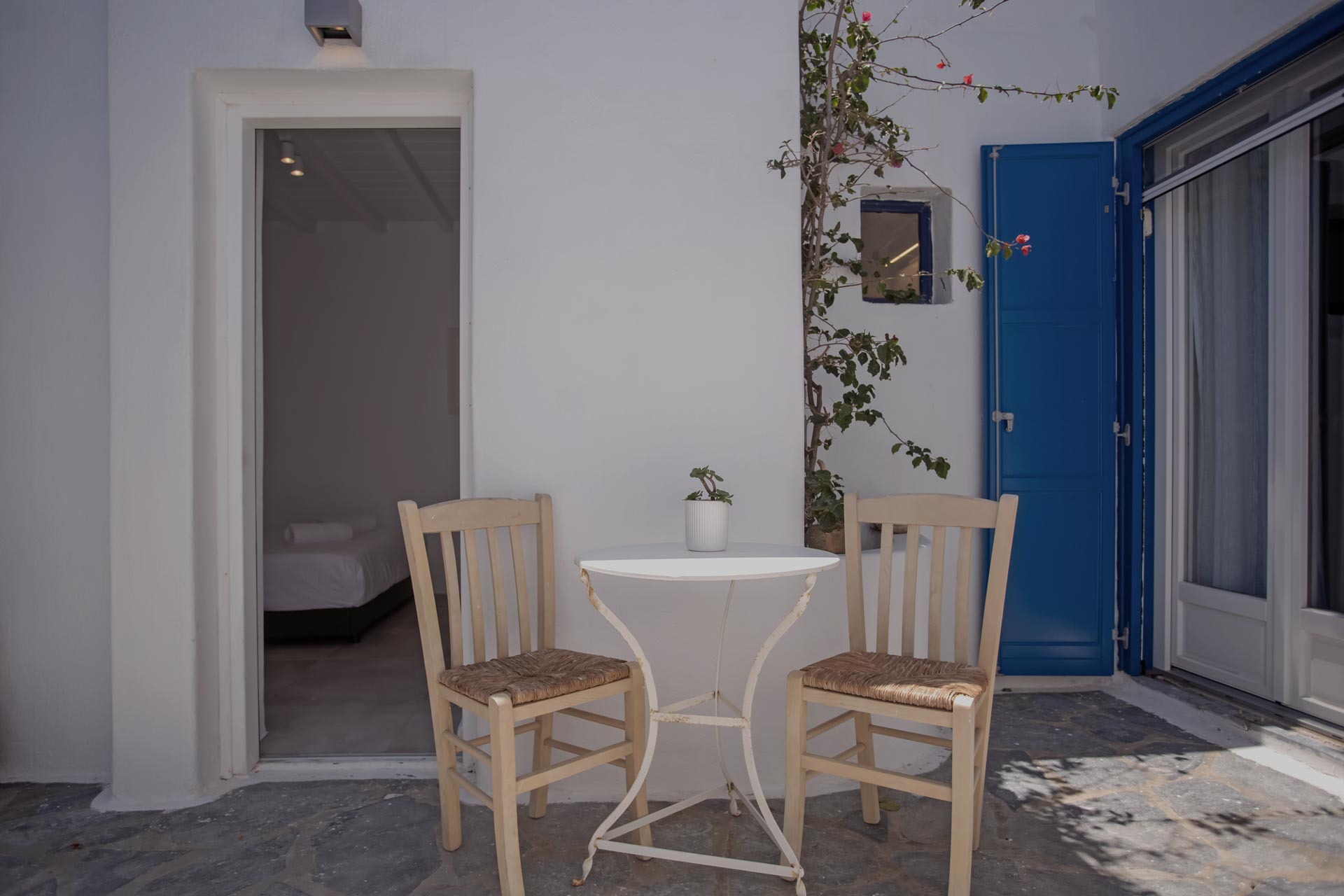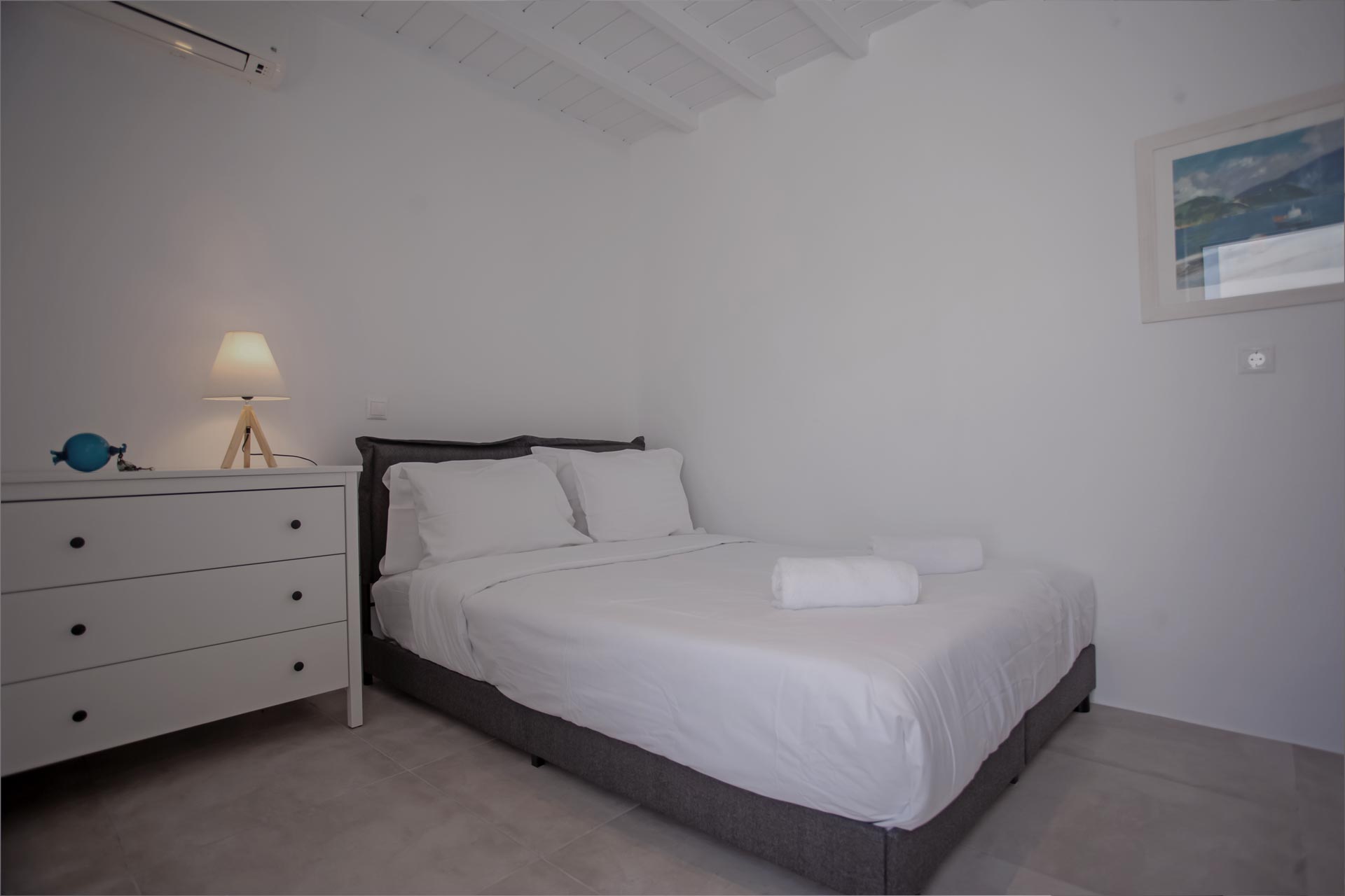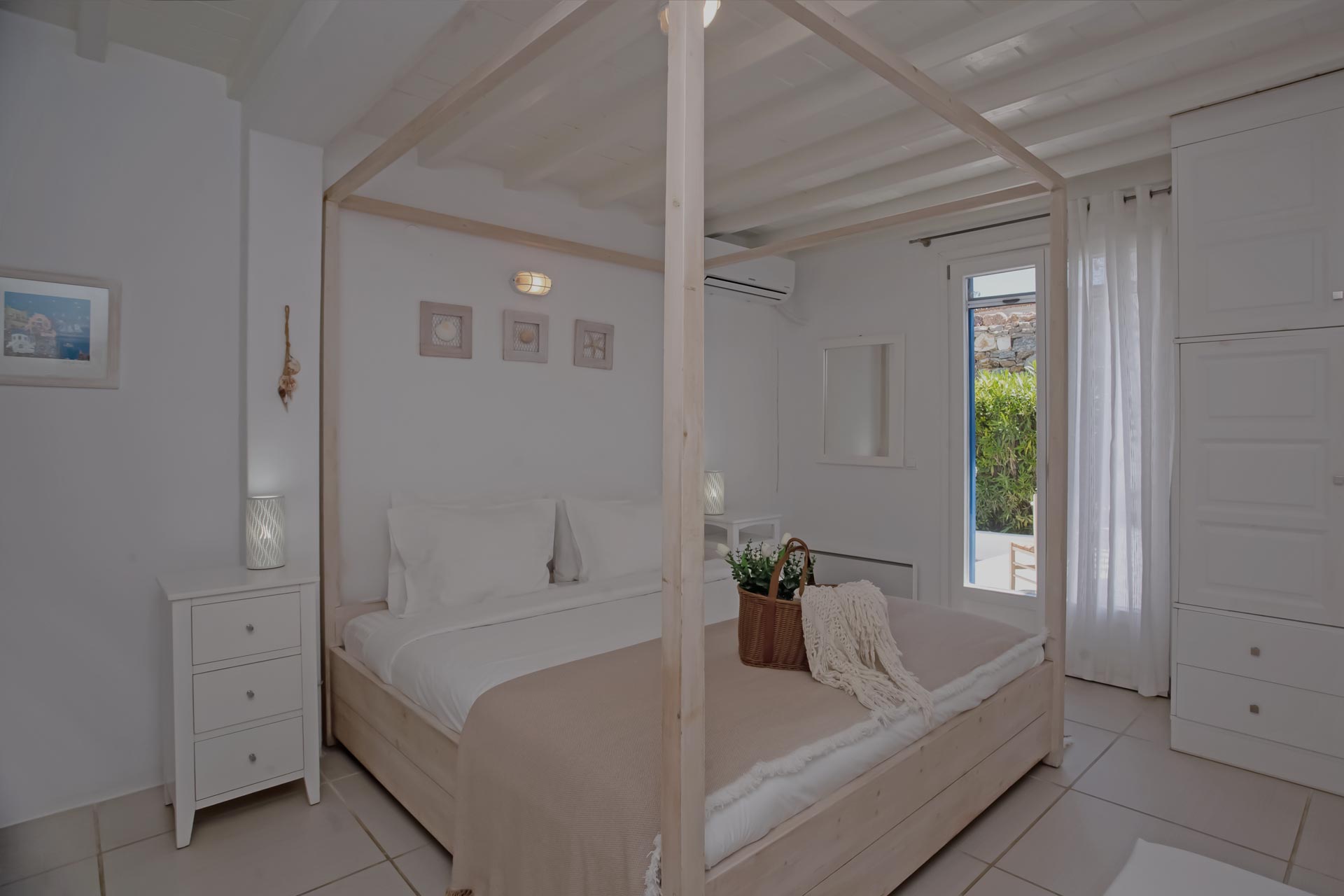 • Room 3: Double Room with shower, direct bathroom access, queen-size bed, and A/C.