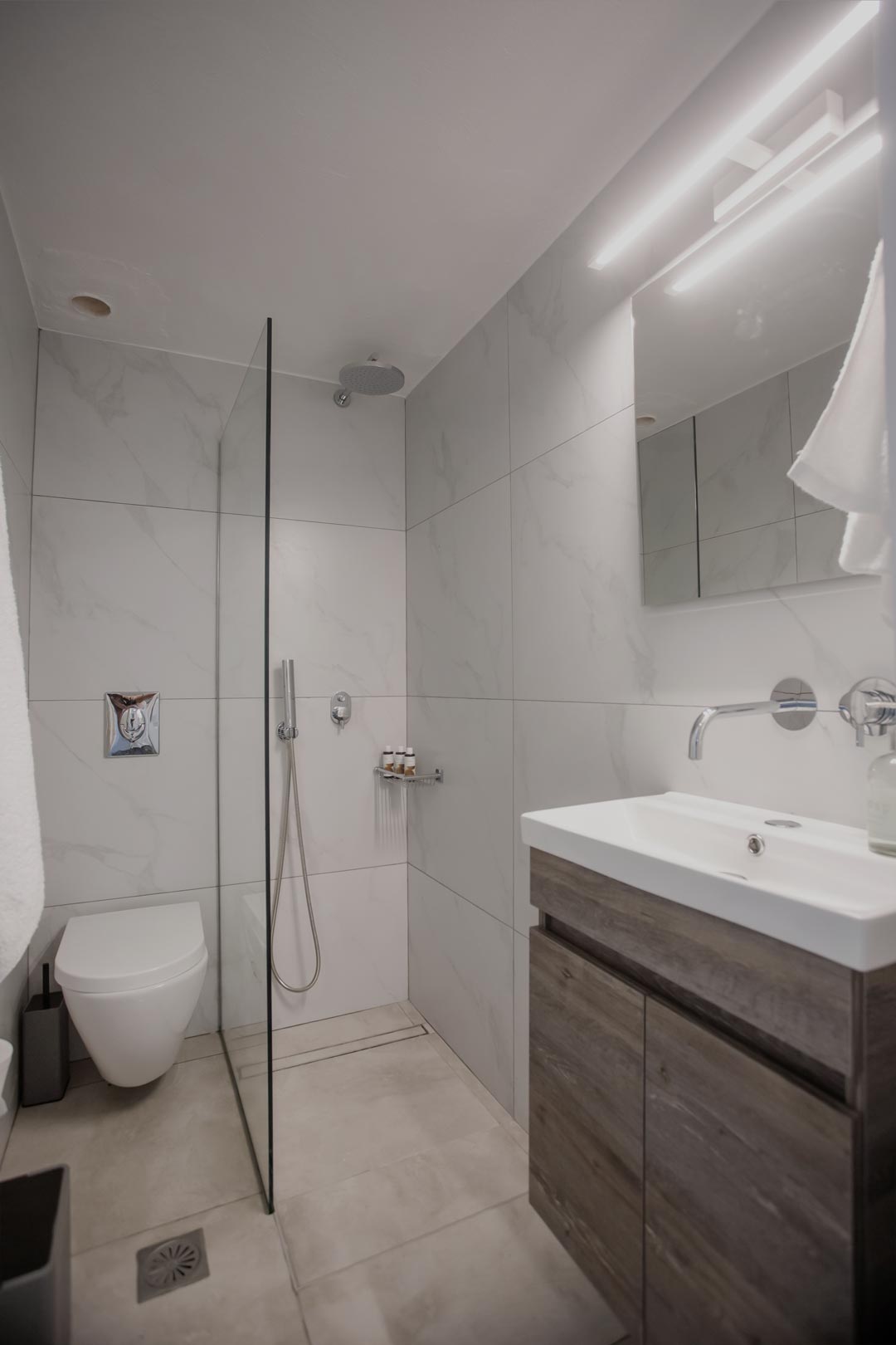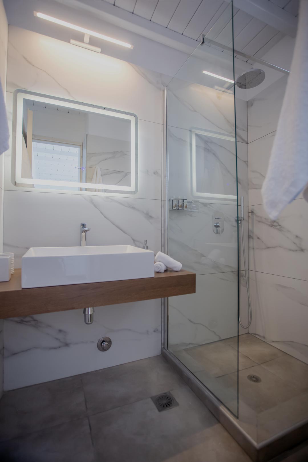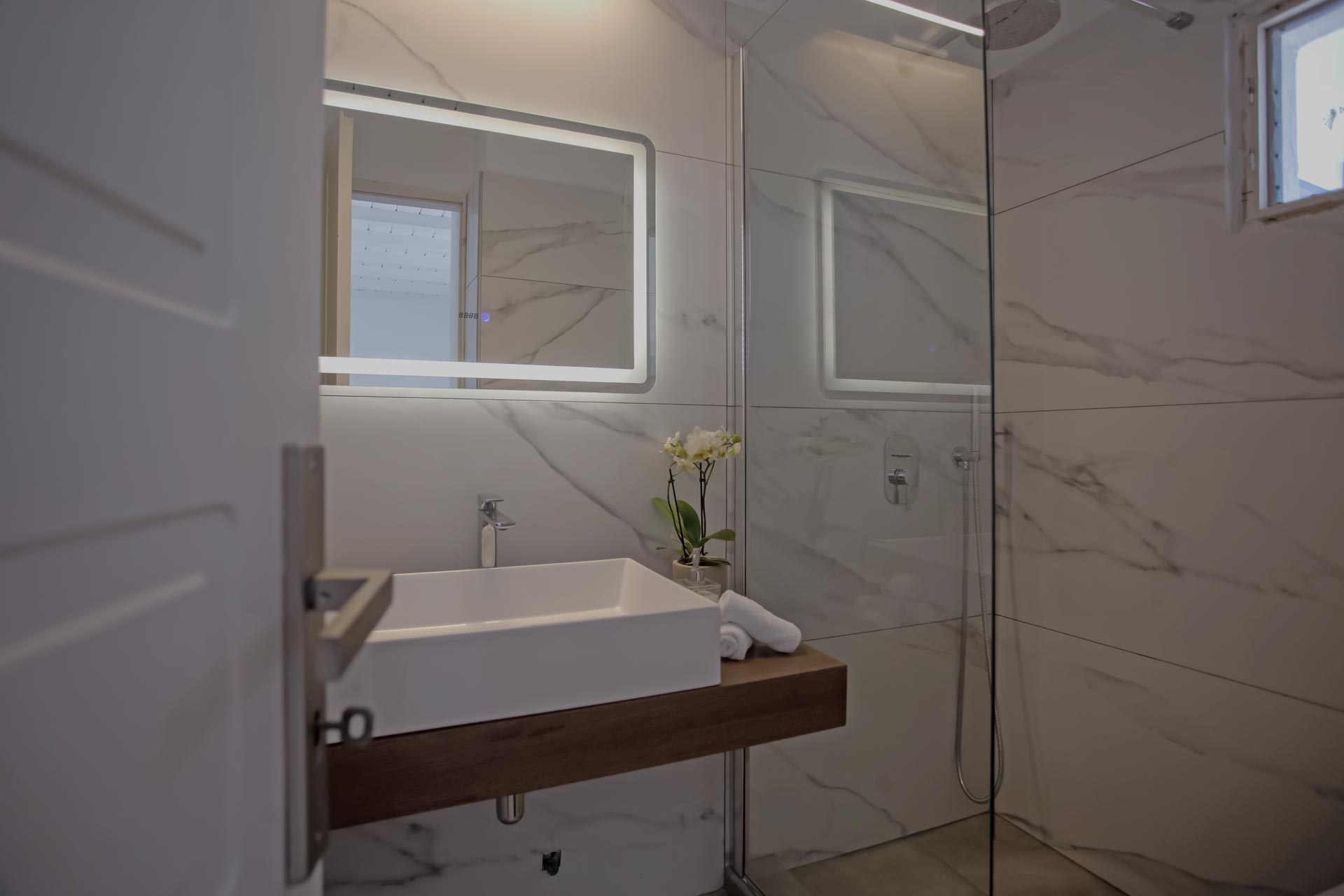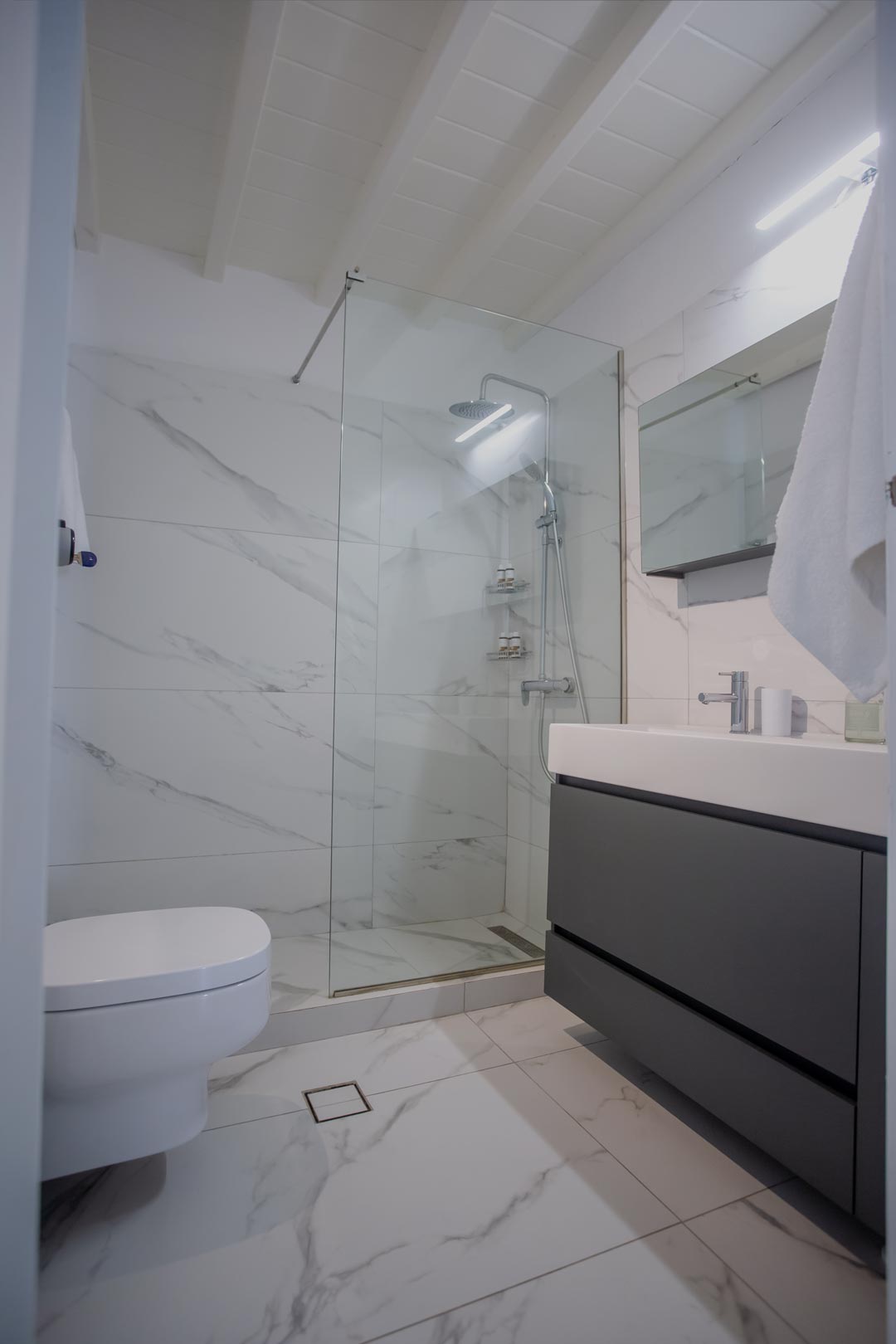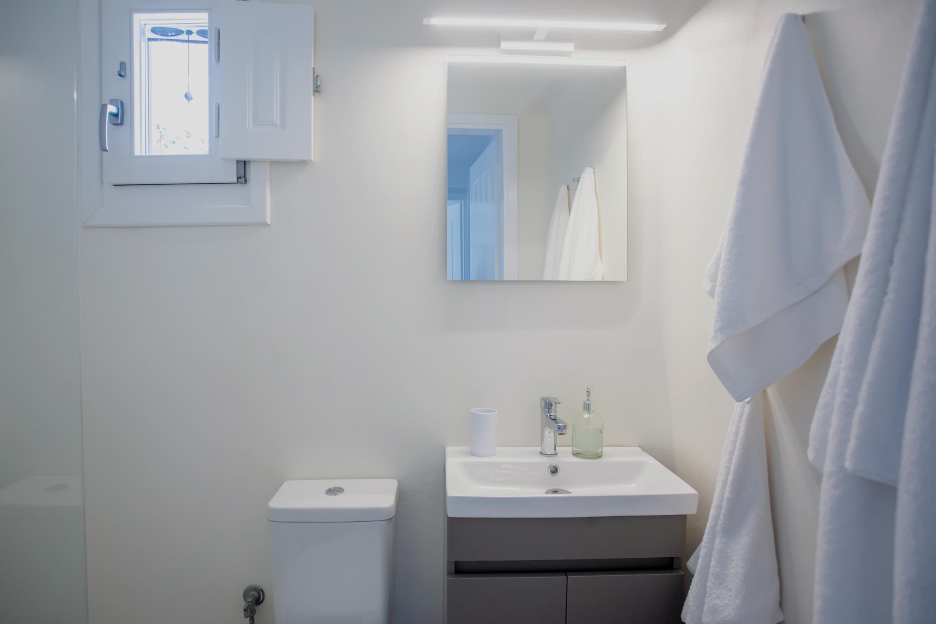 • Room 3: Double Room with shower, direct bathroom access, queen-size bed, and A/C.