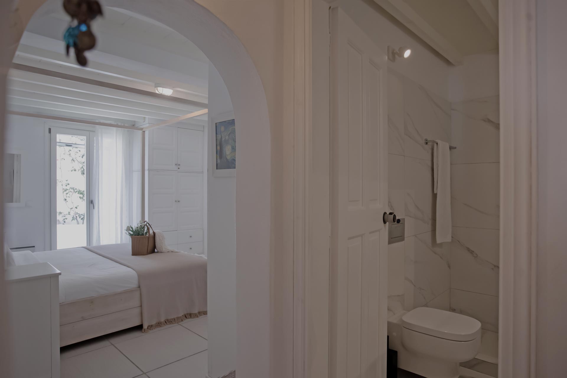 • Room 1: Master Bedroom with ensuite shower, pool access, queen-size bed, A/C, safe box, and luxury amenities.