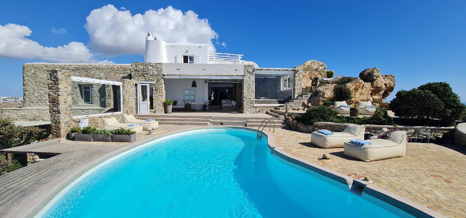 Villa Allegra is located at the top of the hill between Ornos and Agios Ioannis area of Mykonos Island. This luxurious property offers a unique experience with its breathtaking 360-degree views of Mykonos town, Delos, Ornos Beach, Agios Ioannis bay, Corfos beach and the surrounding landscape. Besides the unique view, Villa Allegra stands in the most prime location with direct access to Ornos, Agios Ioannis beach and to Mykonos Town, close to the most famous restaurants, beach clubs and nightlife.