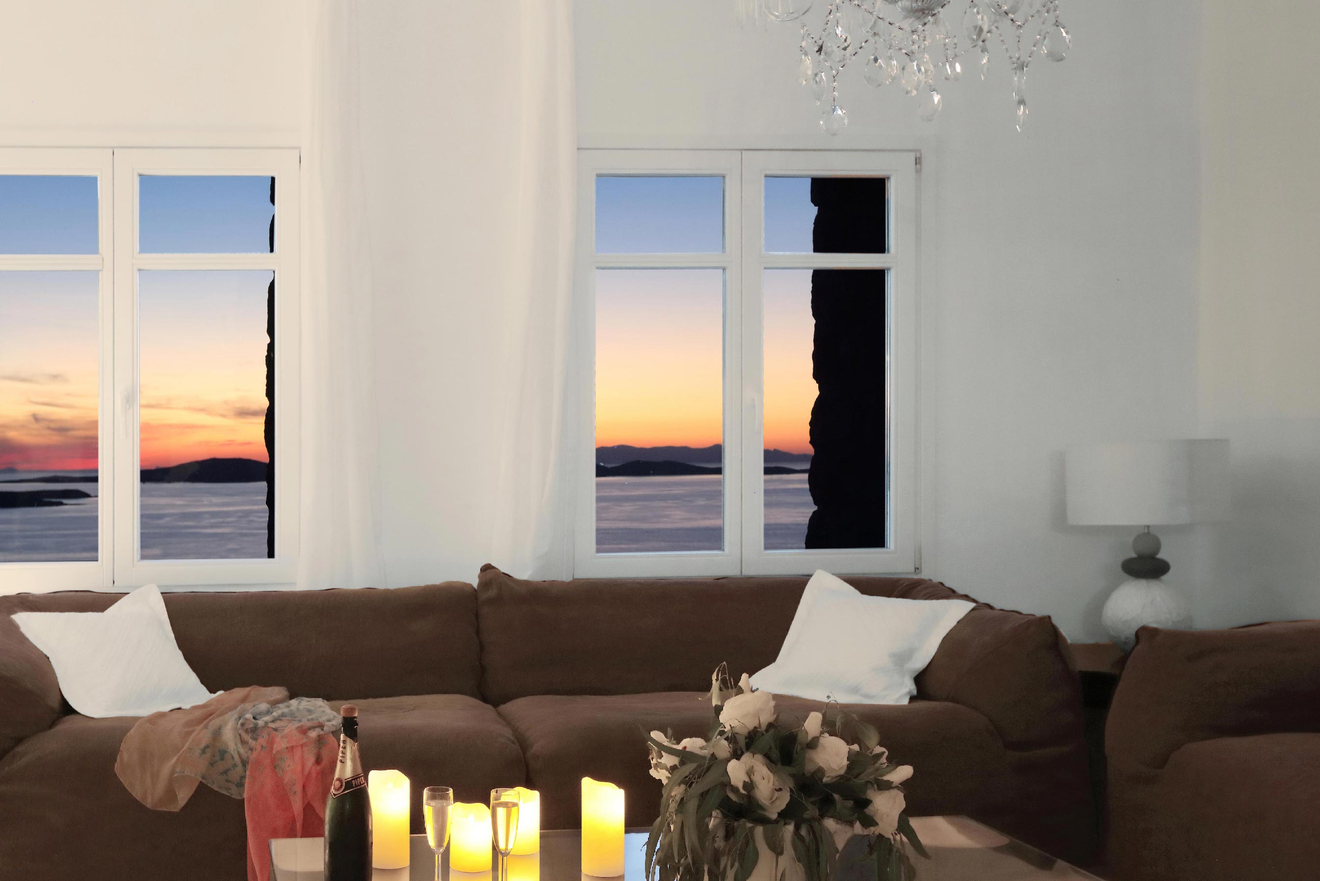 • Location and view: direct sea and sunset views from all rooms/living rooms/pools