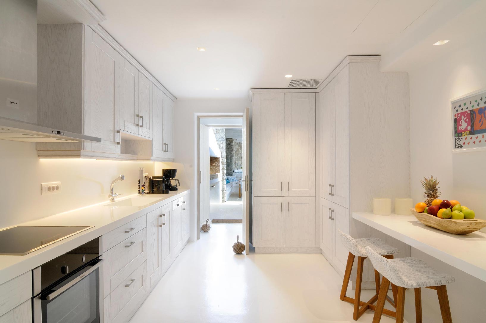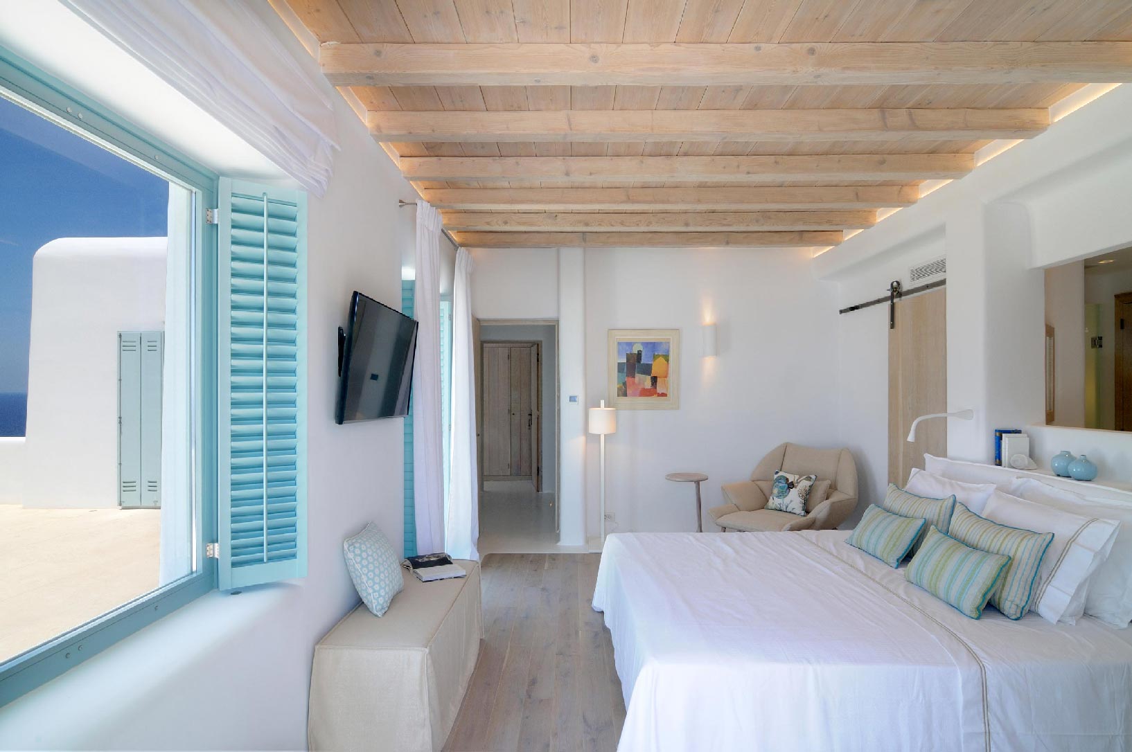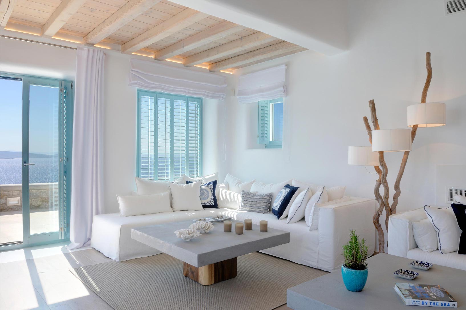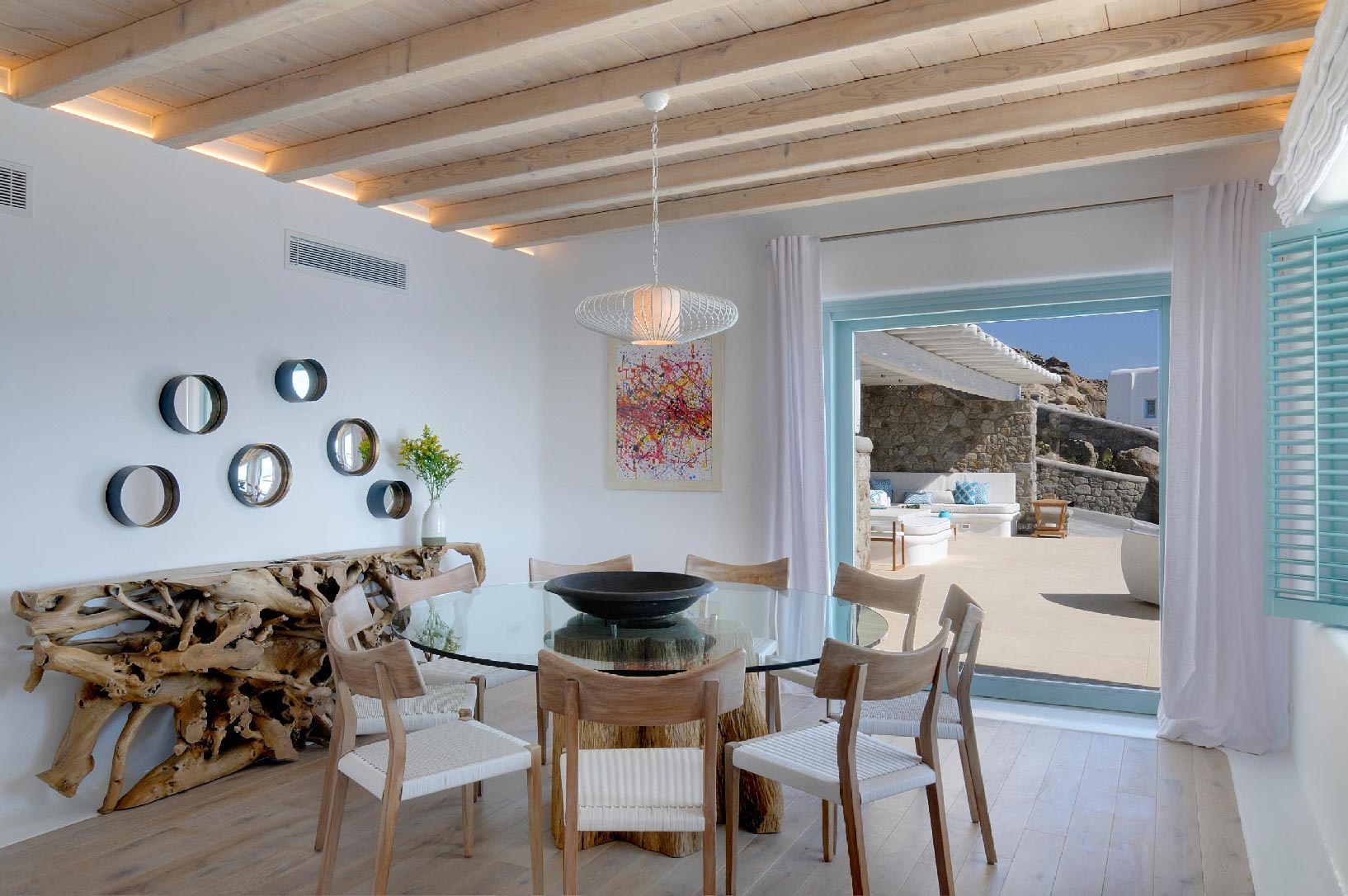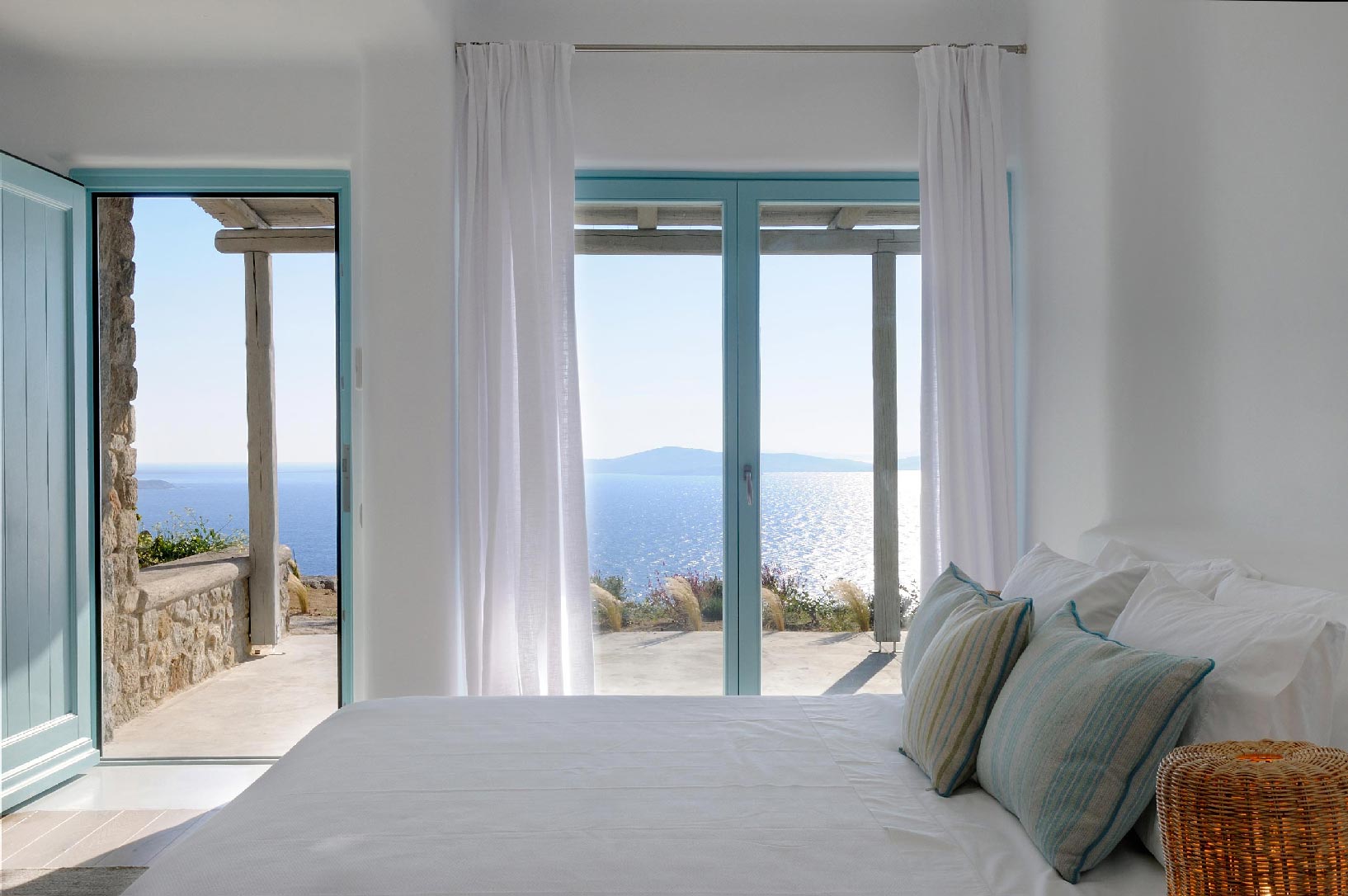 Marvelous views of picturesque Delos and Rhenia islands and enviable island living harmoniously merge into a stunning home that embraces its residents.The stunning views of Delos and Rhenia are perfectly matched by whitewashed architectural elements and natural stone walls. The built-in dining area and lounge offers an inviting respite as the dappled sunlight plays through the bamboo awning, and the infinity pool acts like your private extension of the sea.