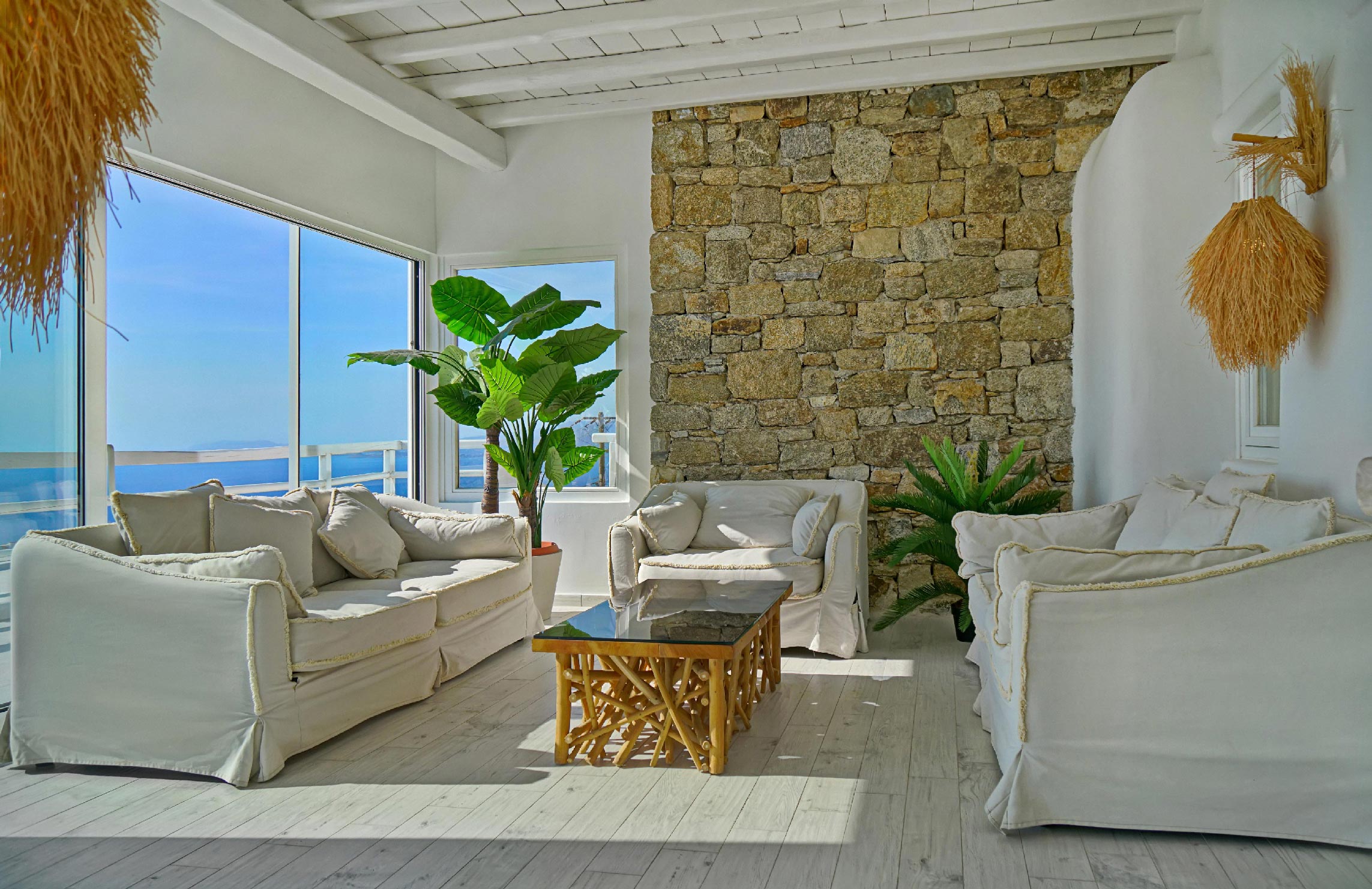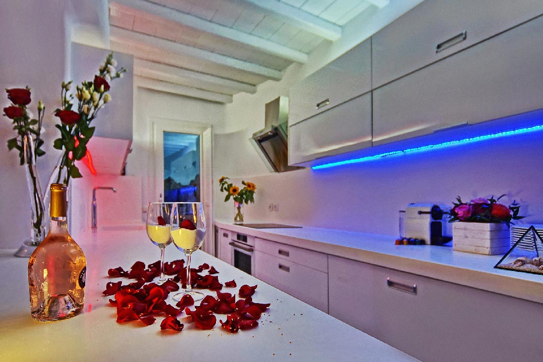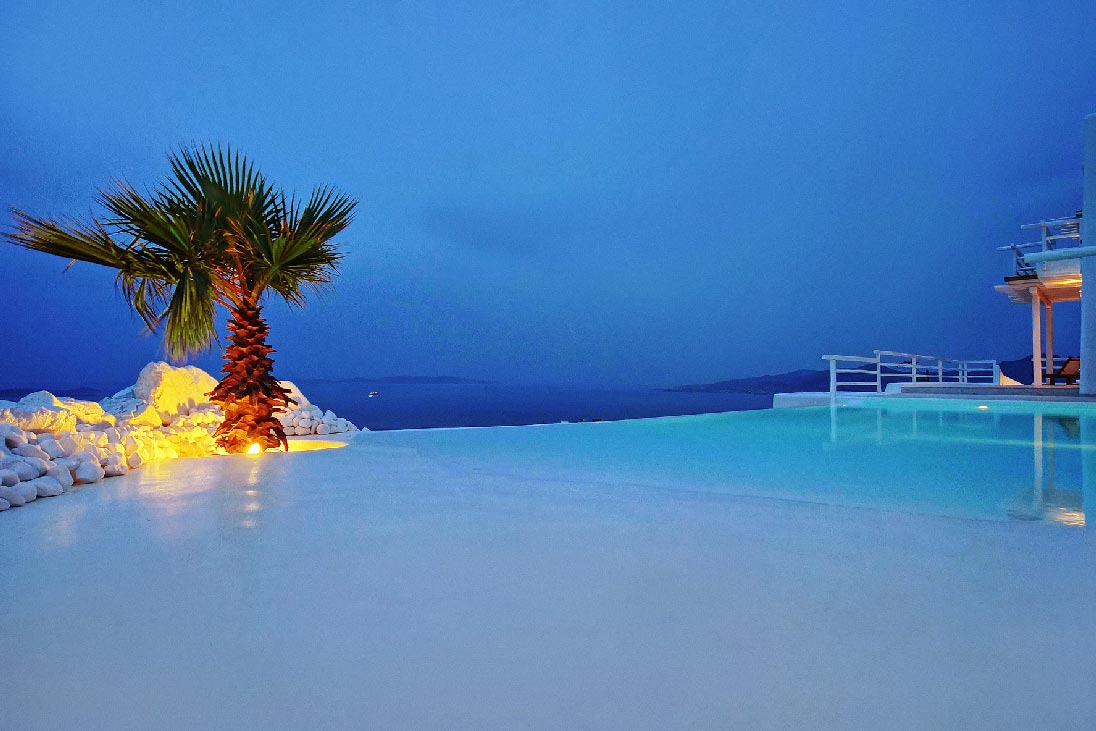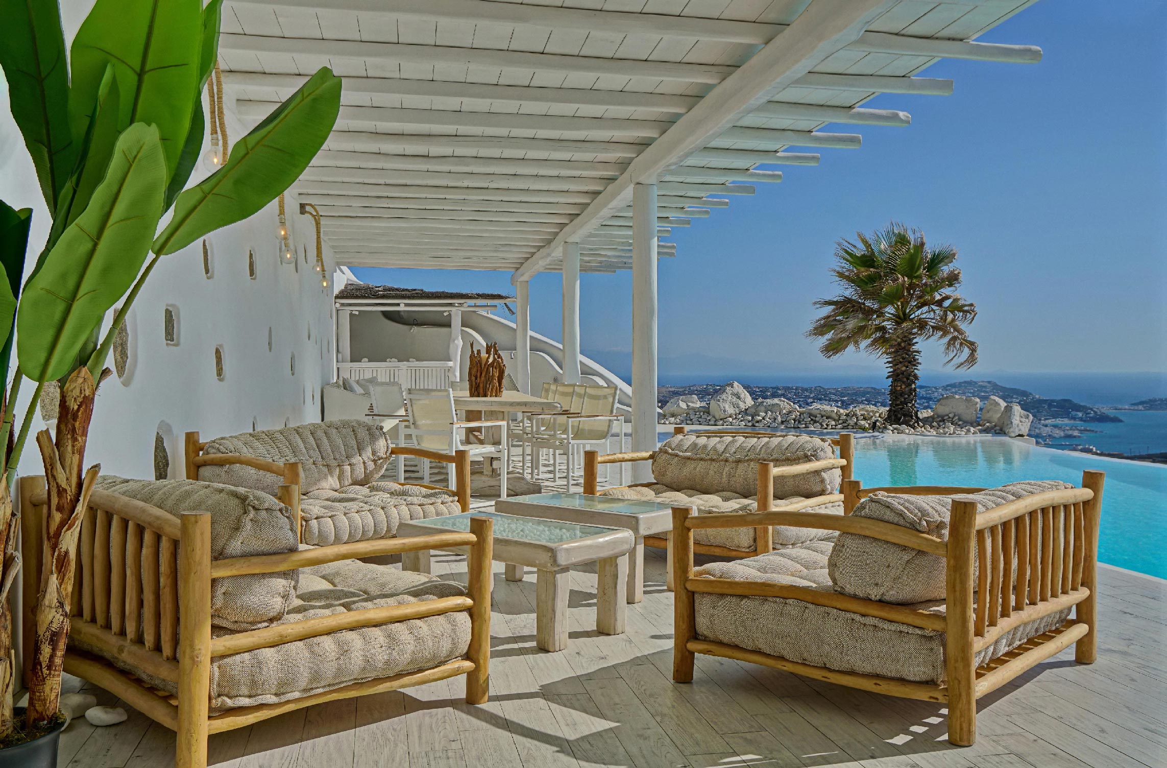 This Villa is apr 400 sq.m of internal places and 450 sq.m of outdoor areas (decks, verandas, parking areas) + the pool of 60 sq.m. This amazing Villa has 3 different stages, 9 rooms and a private pool. Facilities like a wooden bar in the pool area, offer the guests the ability of sharing amazing moments just in front of the big blue, enjoying parties, gatherings and unforgettable wedding experiences.