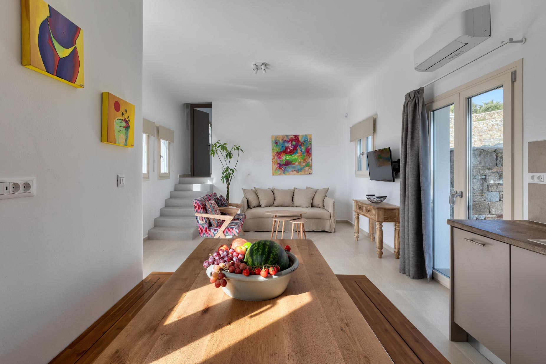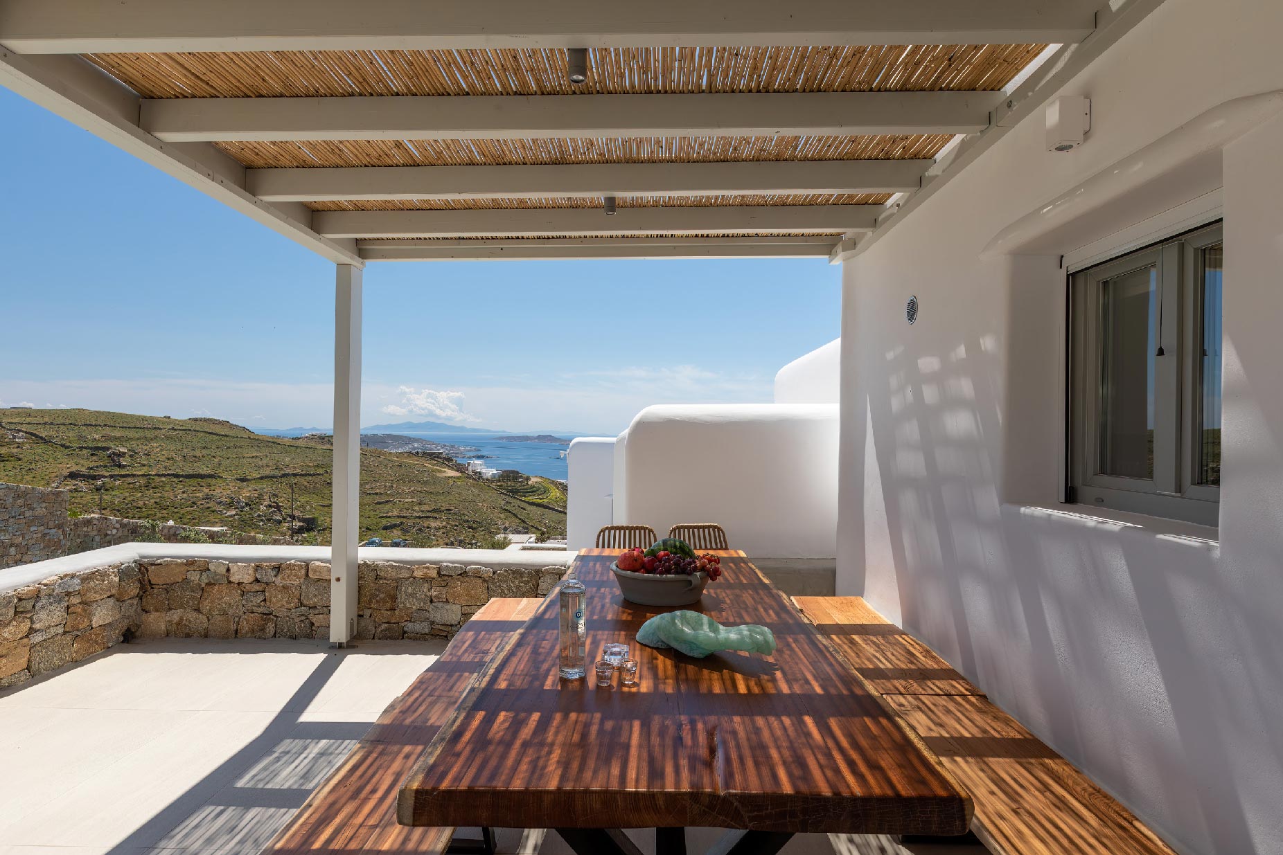 Live out your Mykonian dream in this newly constructed villa complex with an extraordinary and minimal decoration. Away from the noise and simultaneously close to everything. Located at Fanari hill. Villa Amara offers you one of the most amazing view of the south-east Aegean and other islands like Rineia – Delos – Siros – Paros.