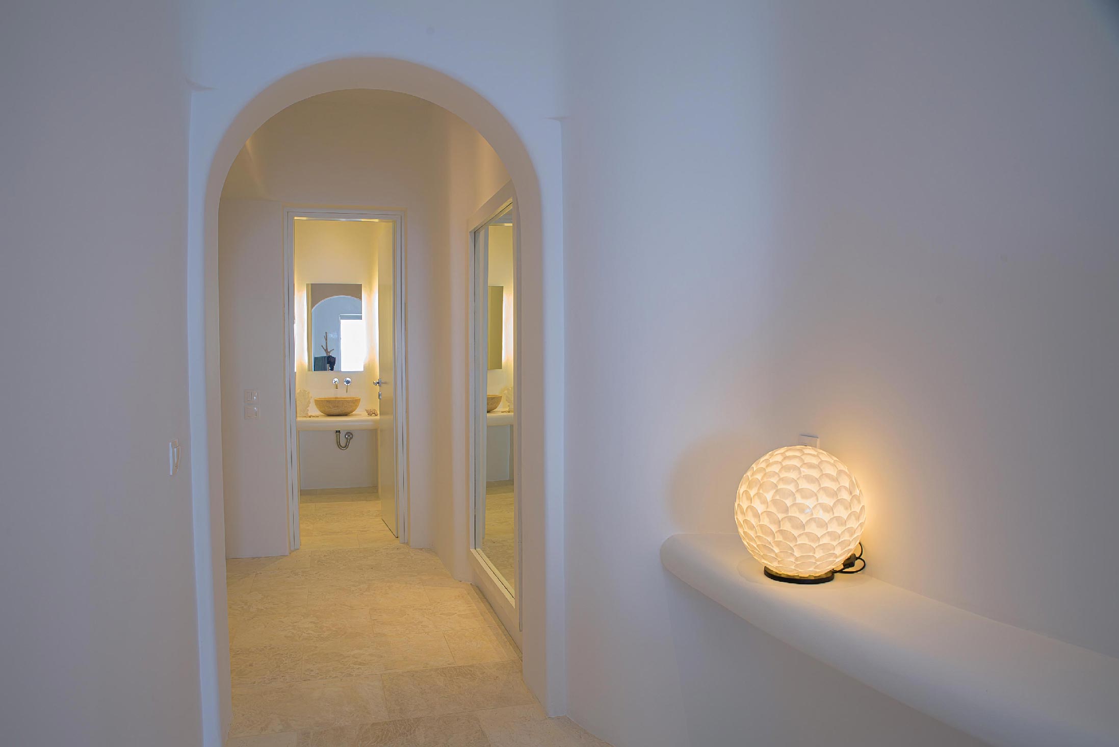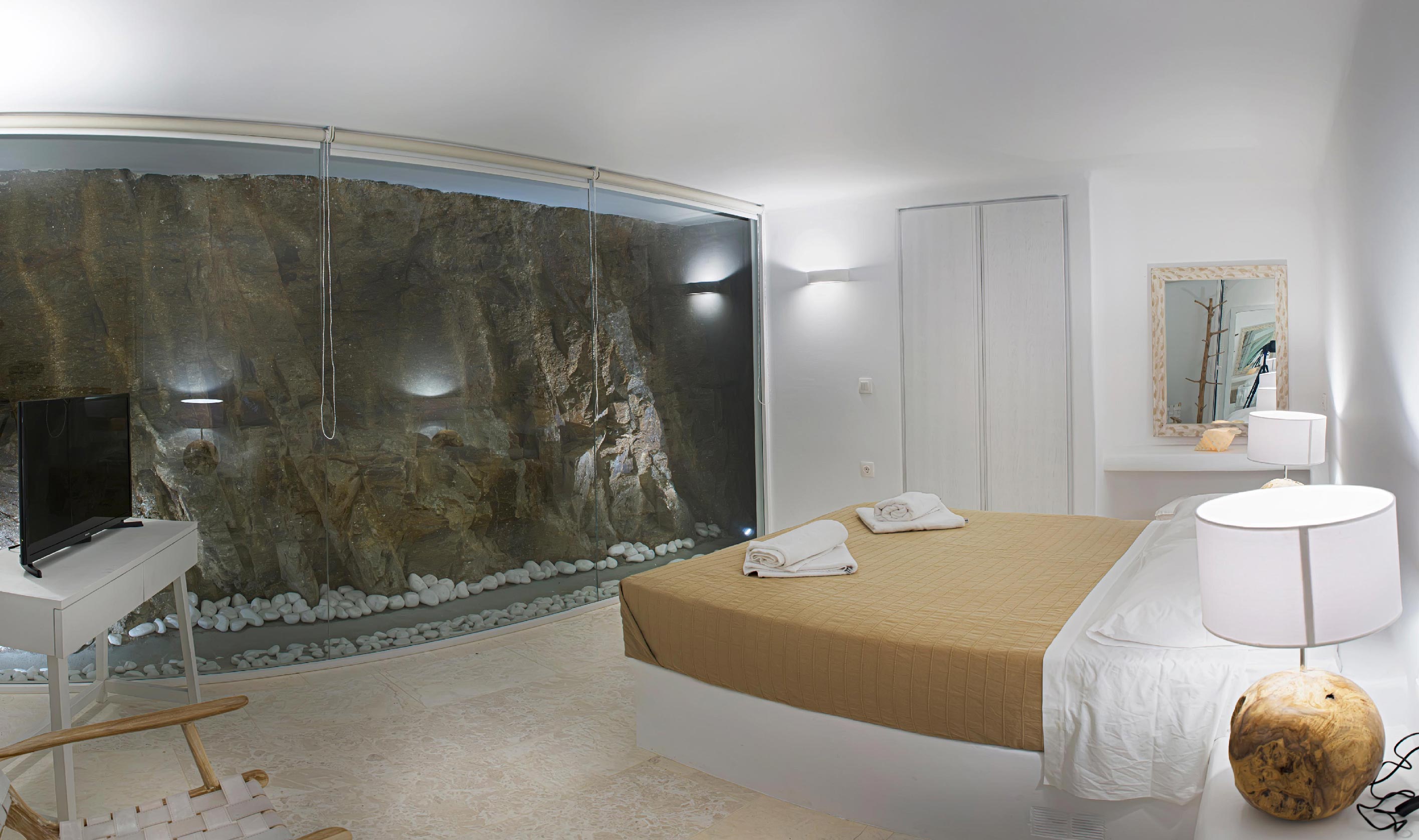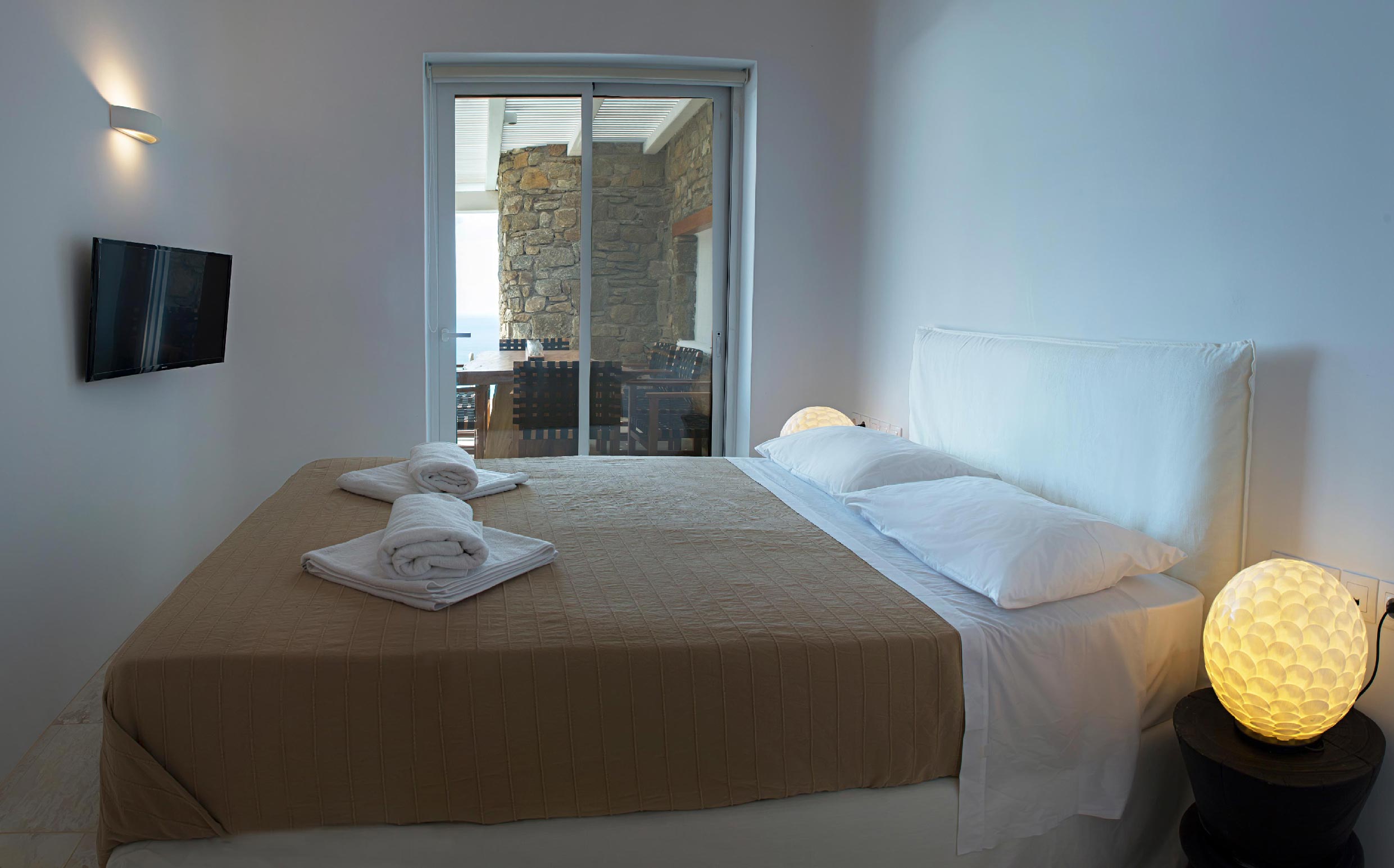 Inside you will find a spacious lounge with a large dining area and a fully equipped kitchen. 3 master bedrooms with double beds (160cm*200cm) and one master bedroom with two single beds (100cm*200cm). An independent guest house with one double bed (180cm*200cm), located at the lower level of the complex which is connected with the outdoor area of the Villa through a traditional stone stair case.