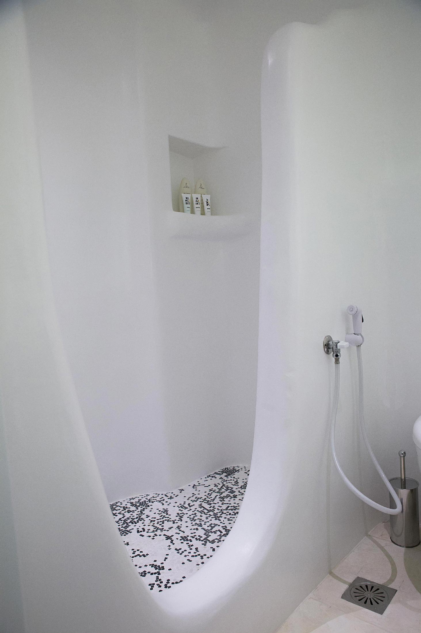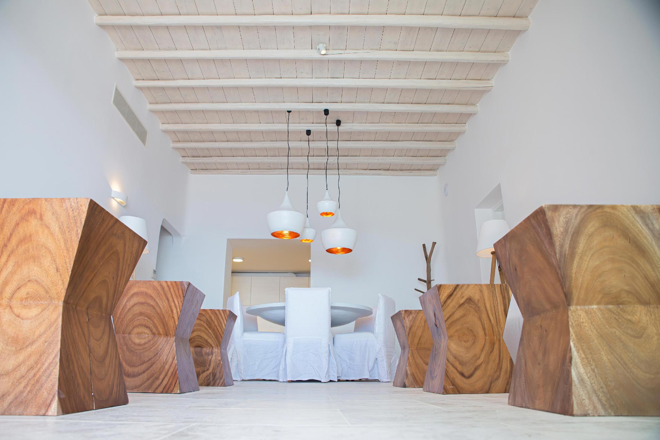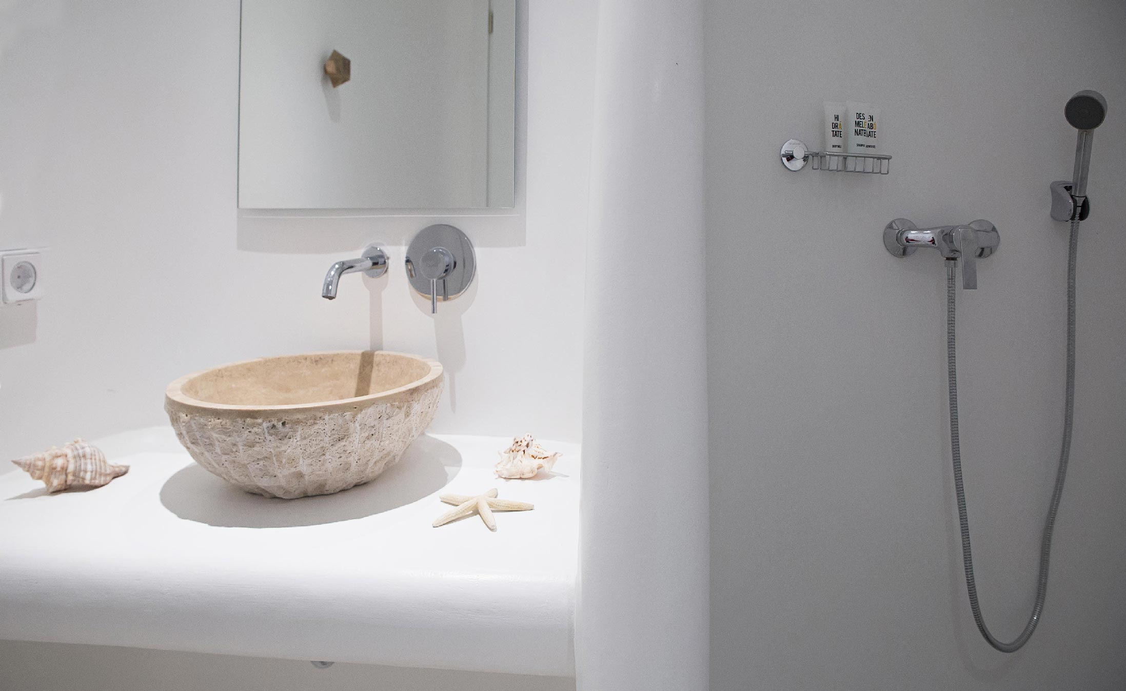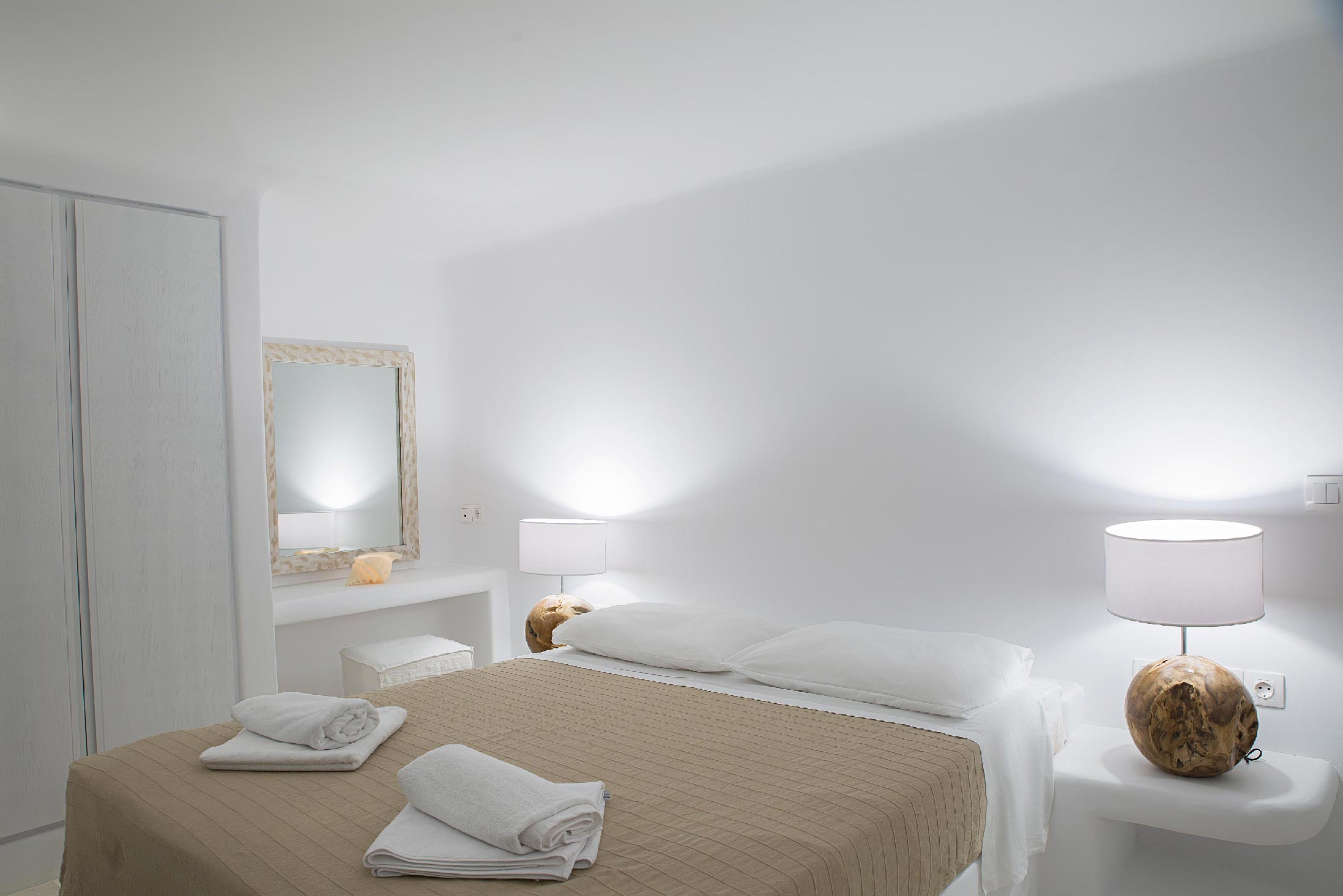 Inside you will find a spacious lounge with a large dining area and a fully equipped kitchen. 3 master bedrooms with double beds (160cm*200cm) and one master bedroom with two single beds (100cm*200cm). An independent guest house with one double bed (180cm*200cm), located at the lower level of the complex which is connected with the outdoor area of the Villa through a traditional stone stair case.