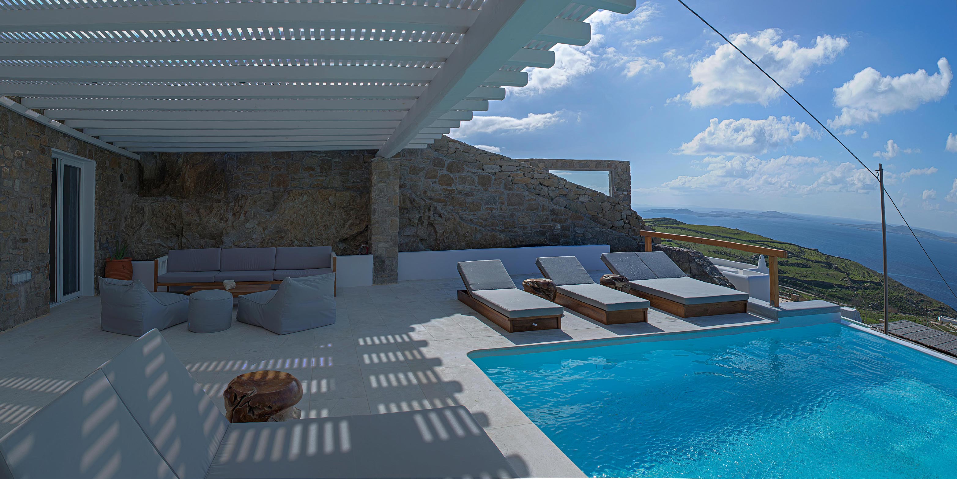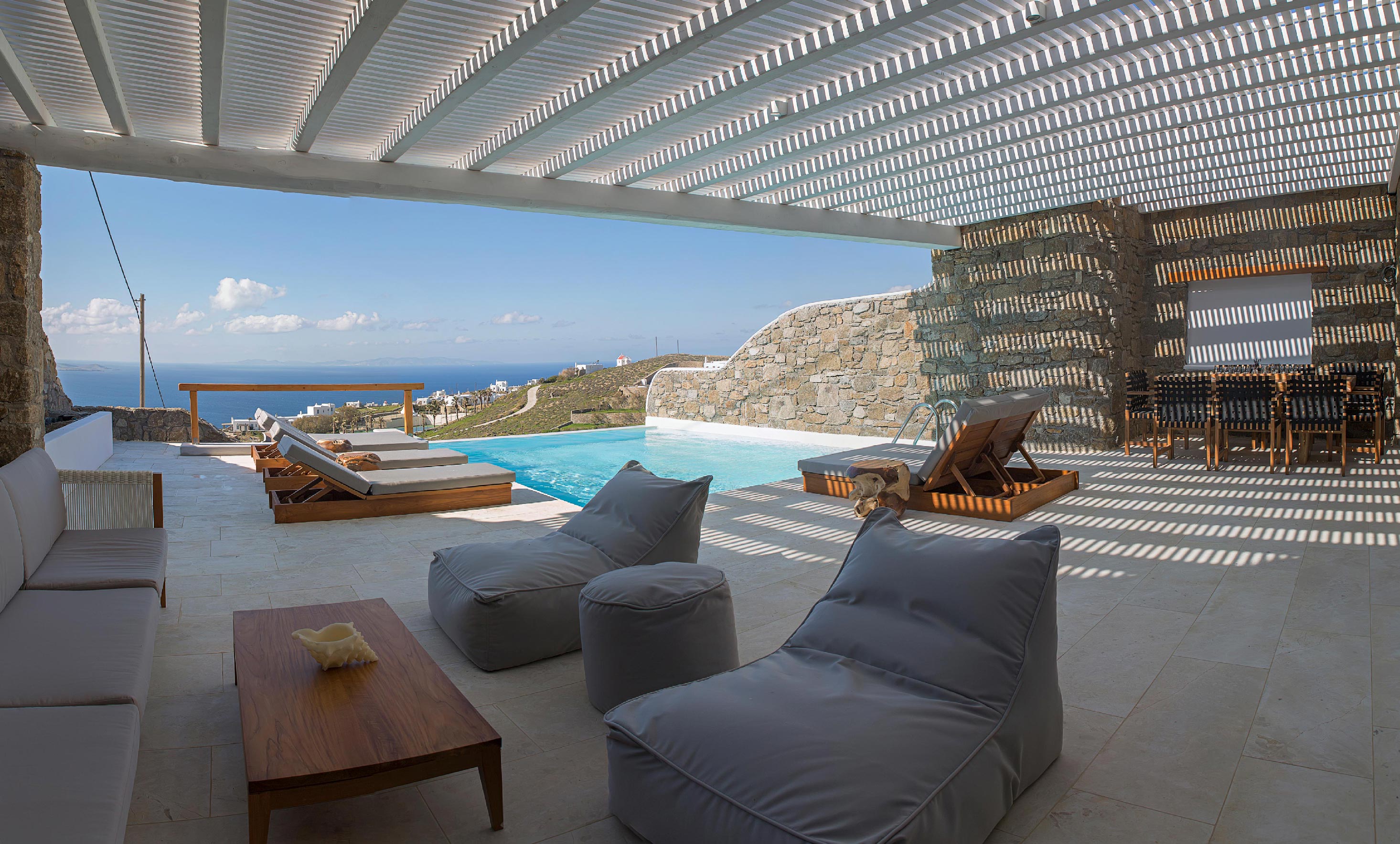 A luxurious villa, part of a glorious complex of Villas and Suites. Locatedv at the mid level of the complex, offering unique sea views and sunset. With an outdoor lounge, dining room, swimming pool and sun loungers.