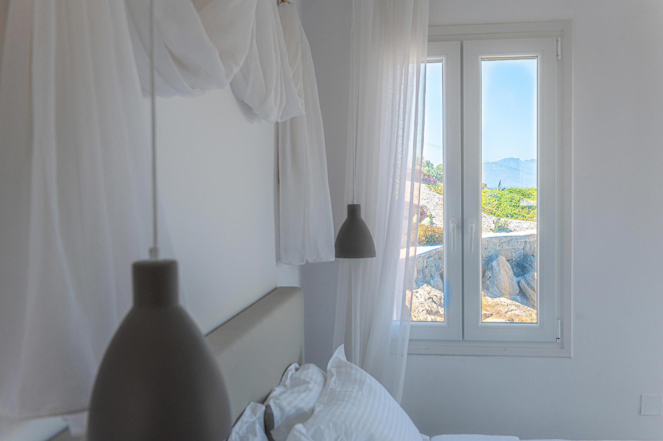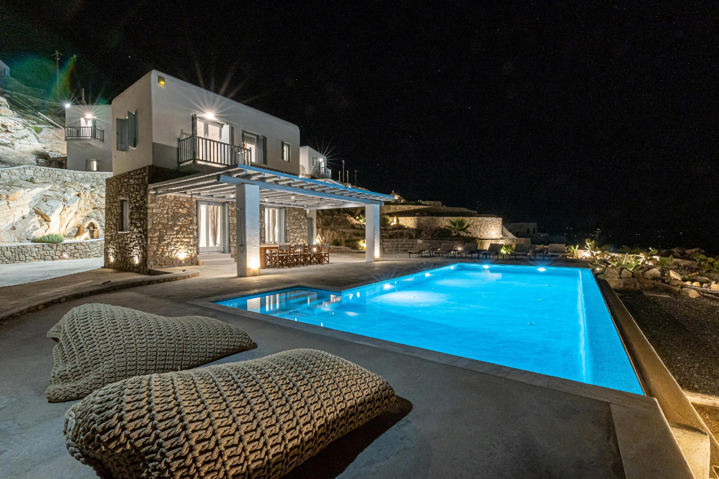 A hillside hideaway in a secluded nearly rural area although close to the town, where you can relax after a long day at the magnificent beaches of the island or a long night in the vivid nightlife. Carved on a hill, 50 m from the coast, in an extraordinary setting framed by beautiful countryside, it blends uniquely in the rocky topography of its hillside, prime and unspoiled, setting.