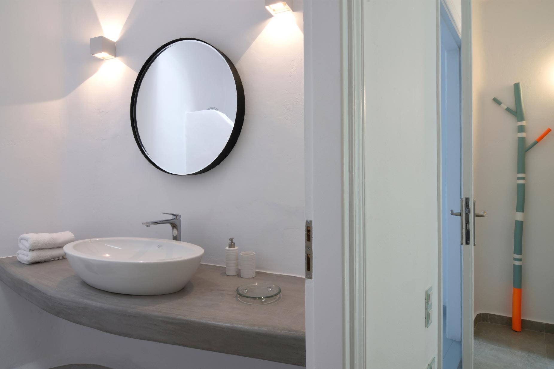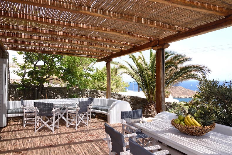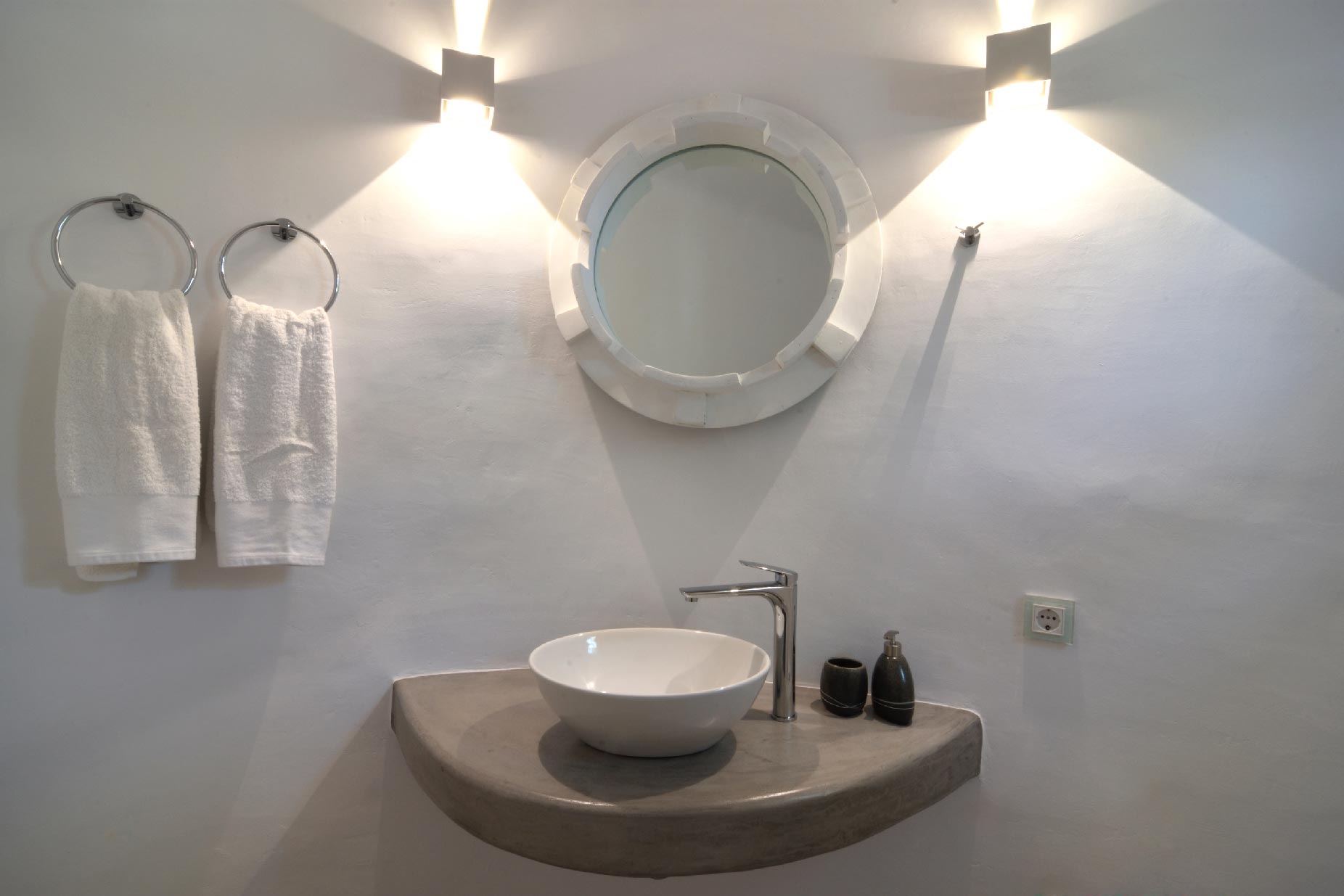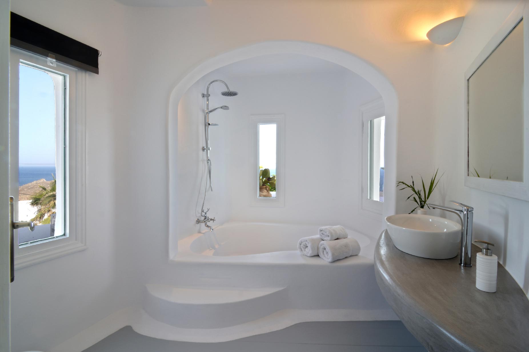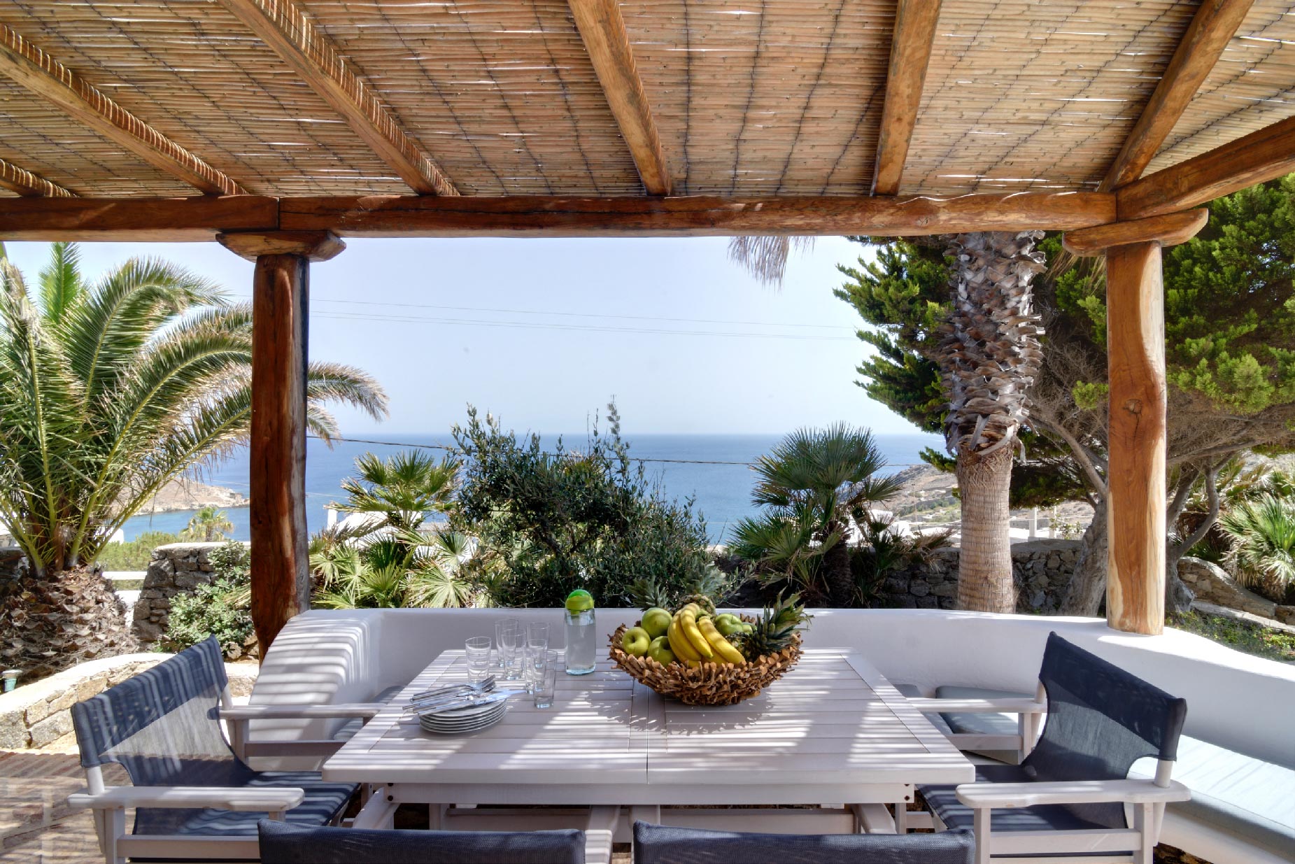 The luxurious 225 sq meters 4-bedroom/5 bathroom villa, is a unique and luxury property that stands on a sublime location in the south-west of the island in the area of Aleomandra just 60 meters from the sea front with magnificent views the infinite blue of the Aegean Sea that expands as far as the eye can see, towards the neighboring Cycladic islands of Naxos and Paros as well as the captivating sunsets of Mykonos.