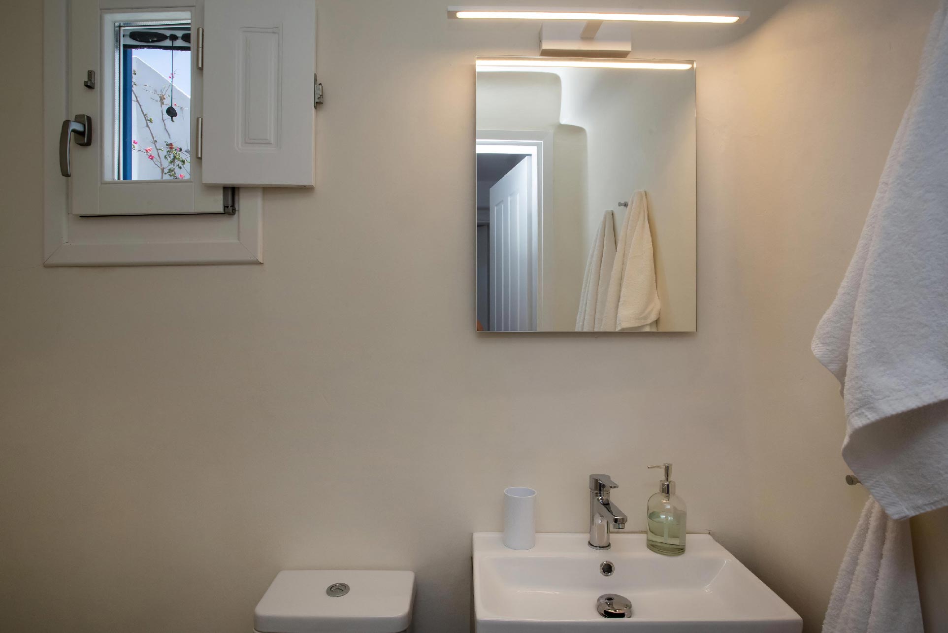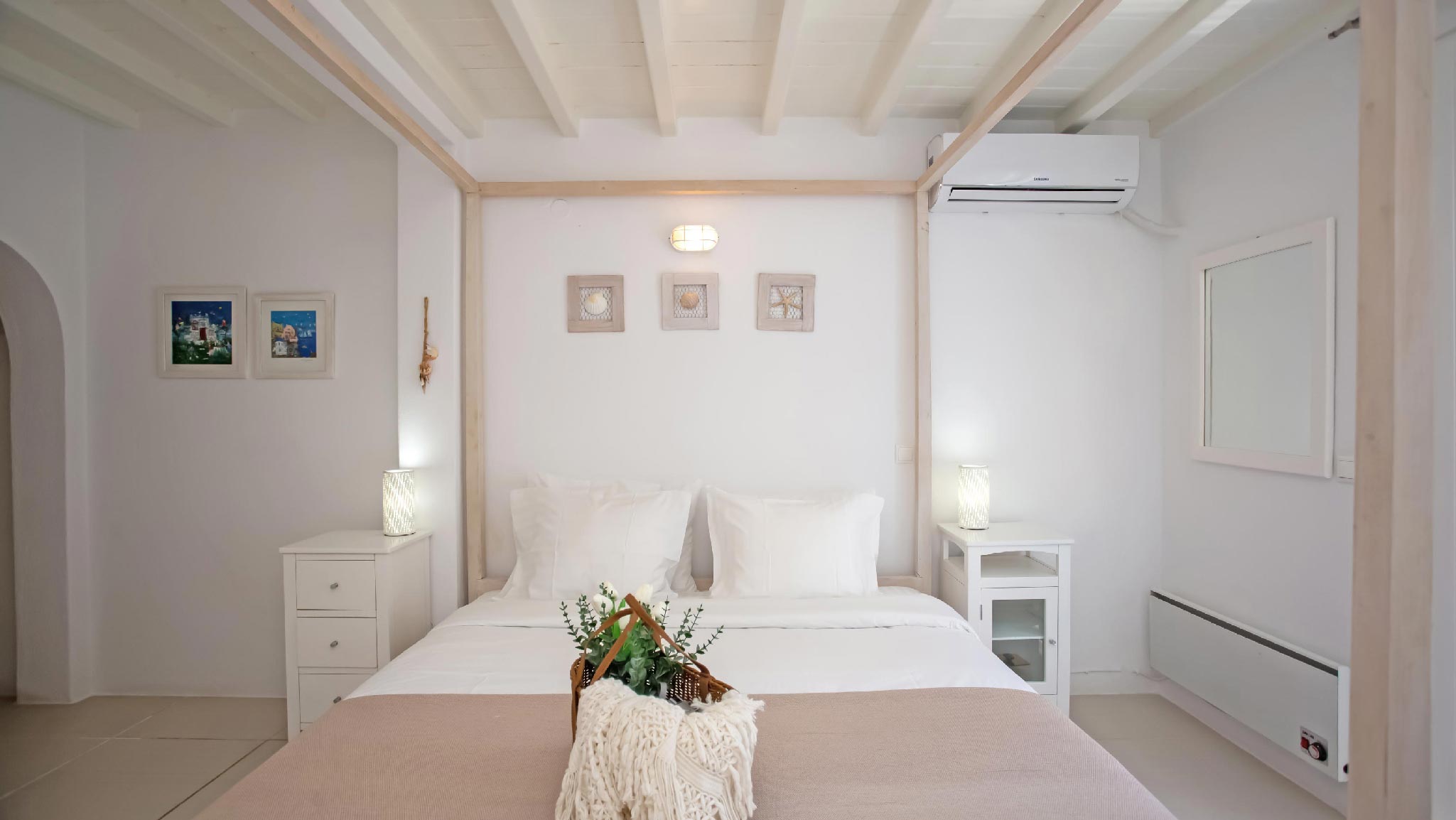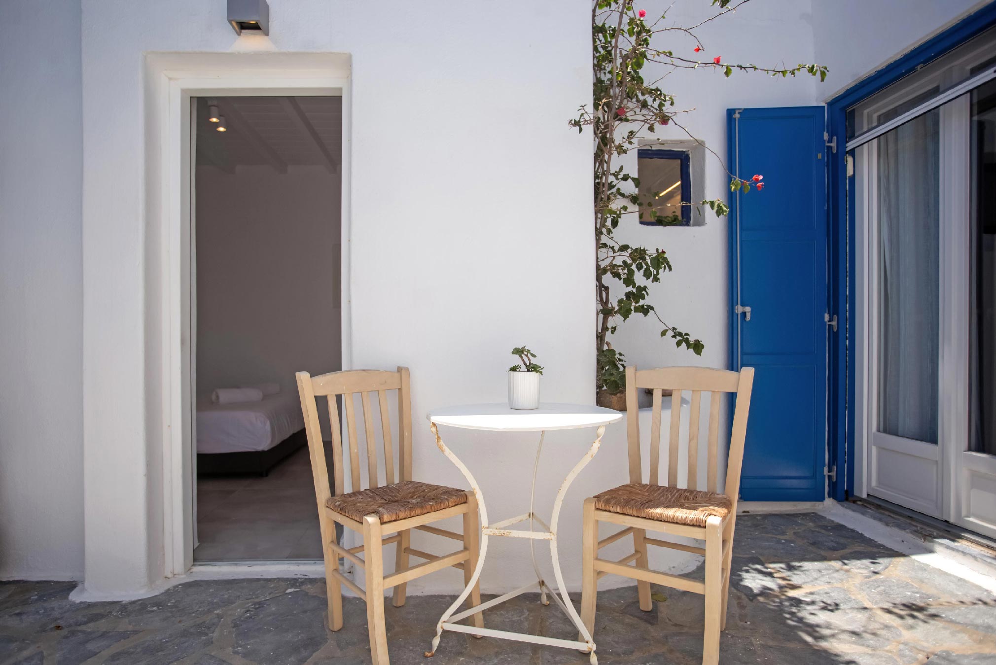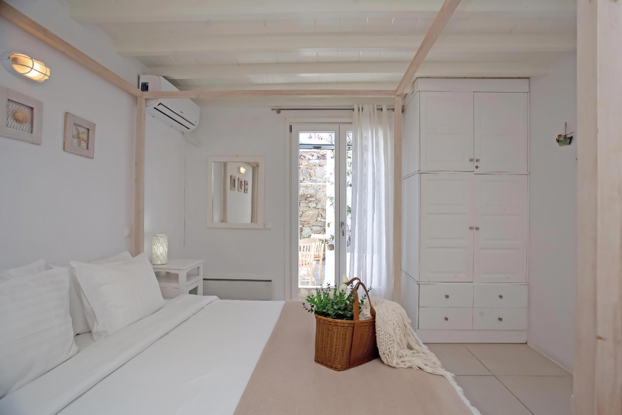 A gorgeous home that enjoys panoramic views and perfectly blends the Cycladic style with exotic details and a Mexican-like ambience with stone-built fences and large cacti plants.