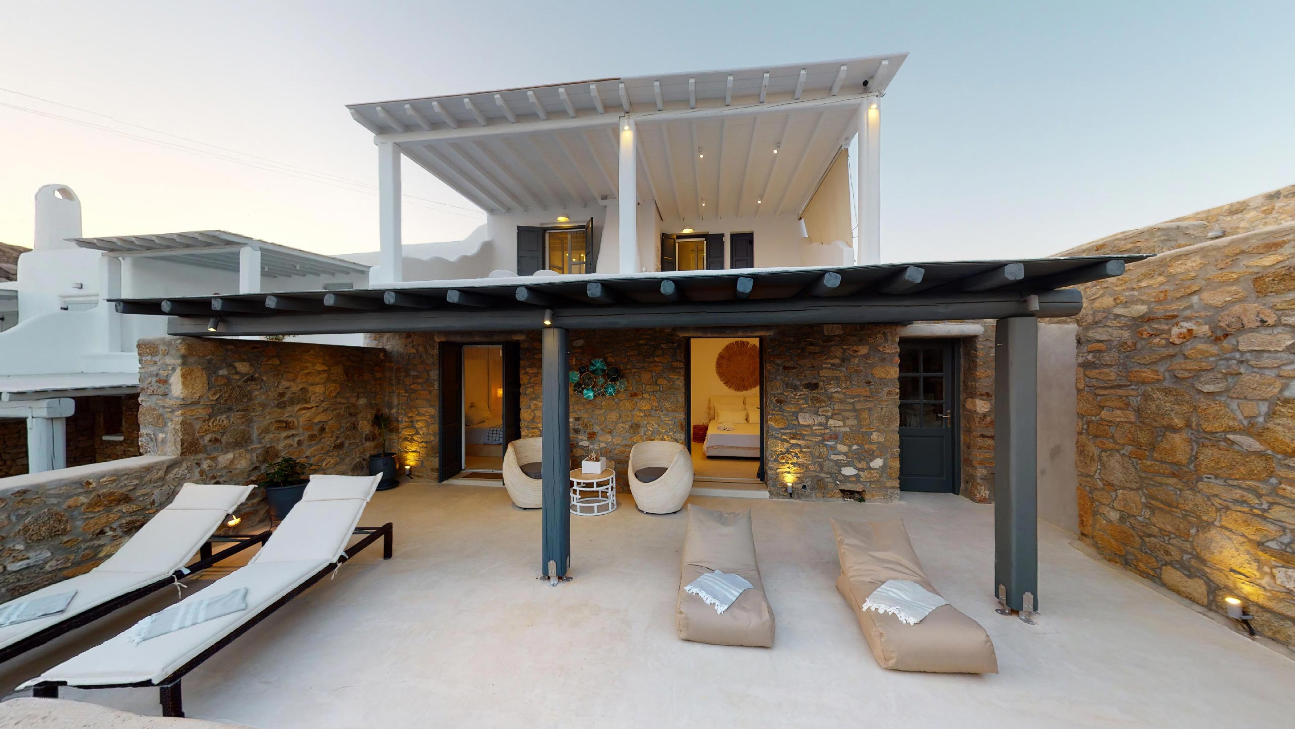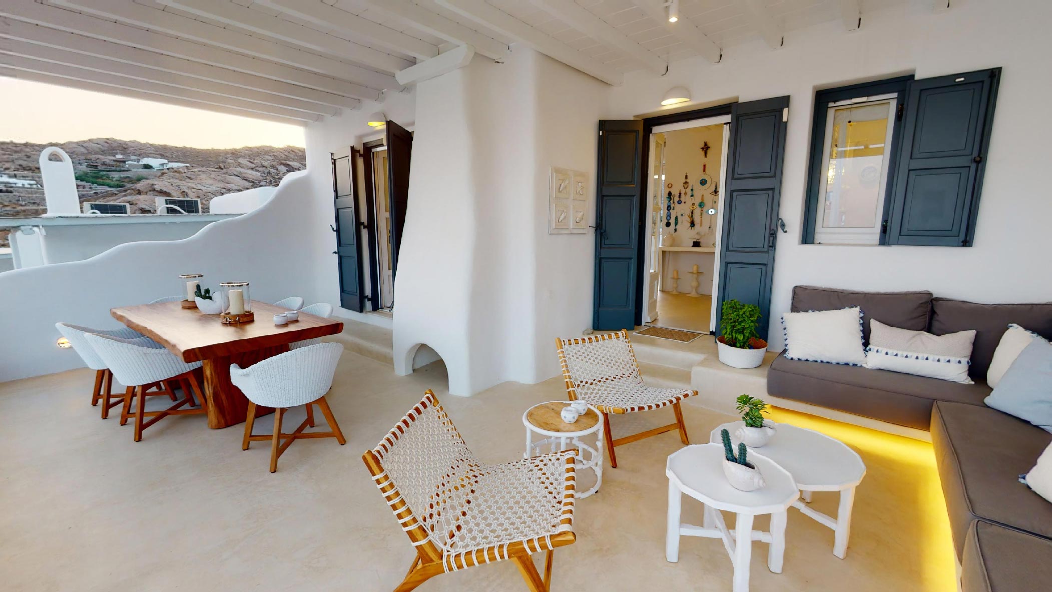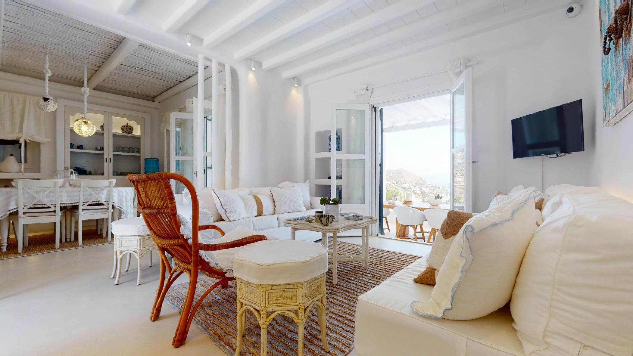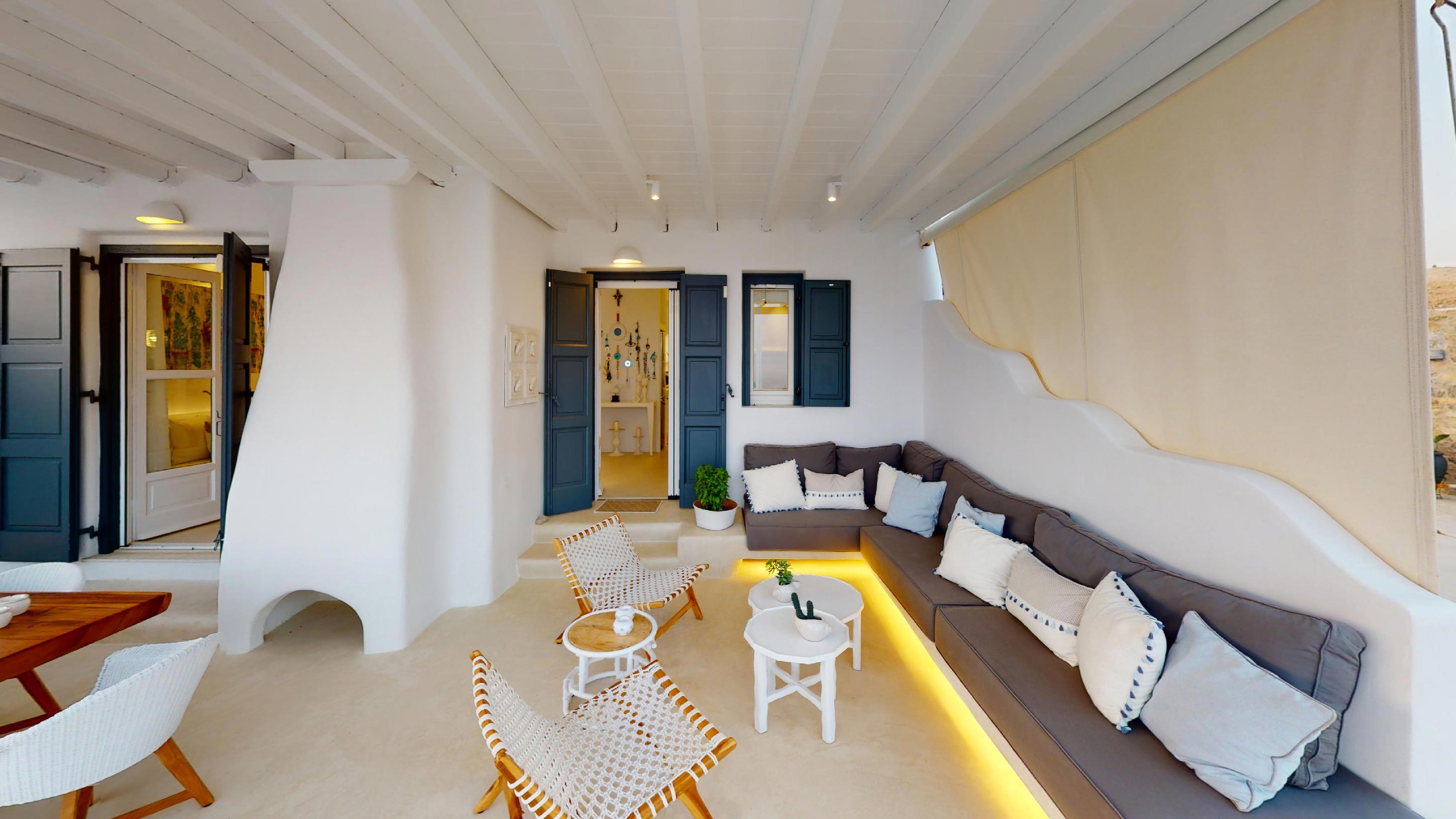 It is the ideal destination for those who wish to spend their holidays in a comfortable & elegant place, which gives the sense of a private house. This luxurious property consists of 4 bedrooms and 4 bathrooms. It has a big jacuzzi with sea view, a spacious terrace and a beautiful balcony. The living room and the kitchen have amazing sea views!
