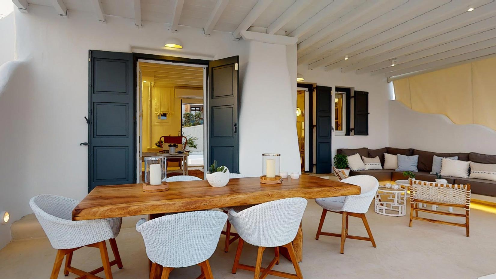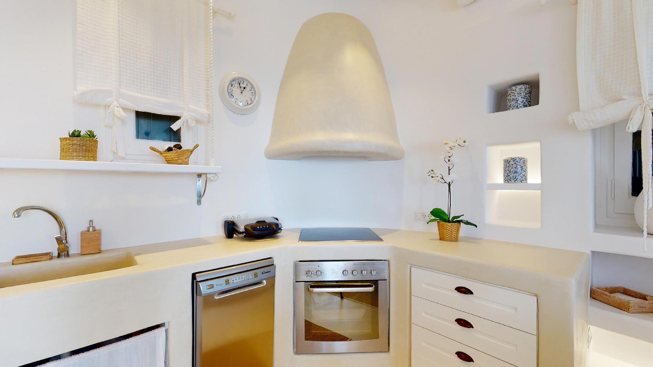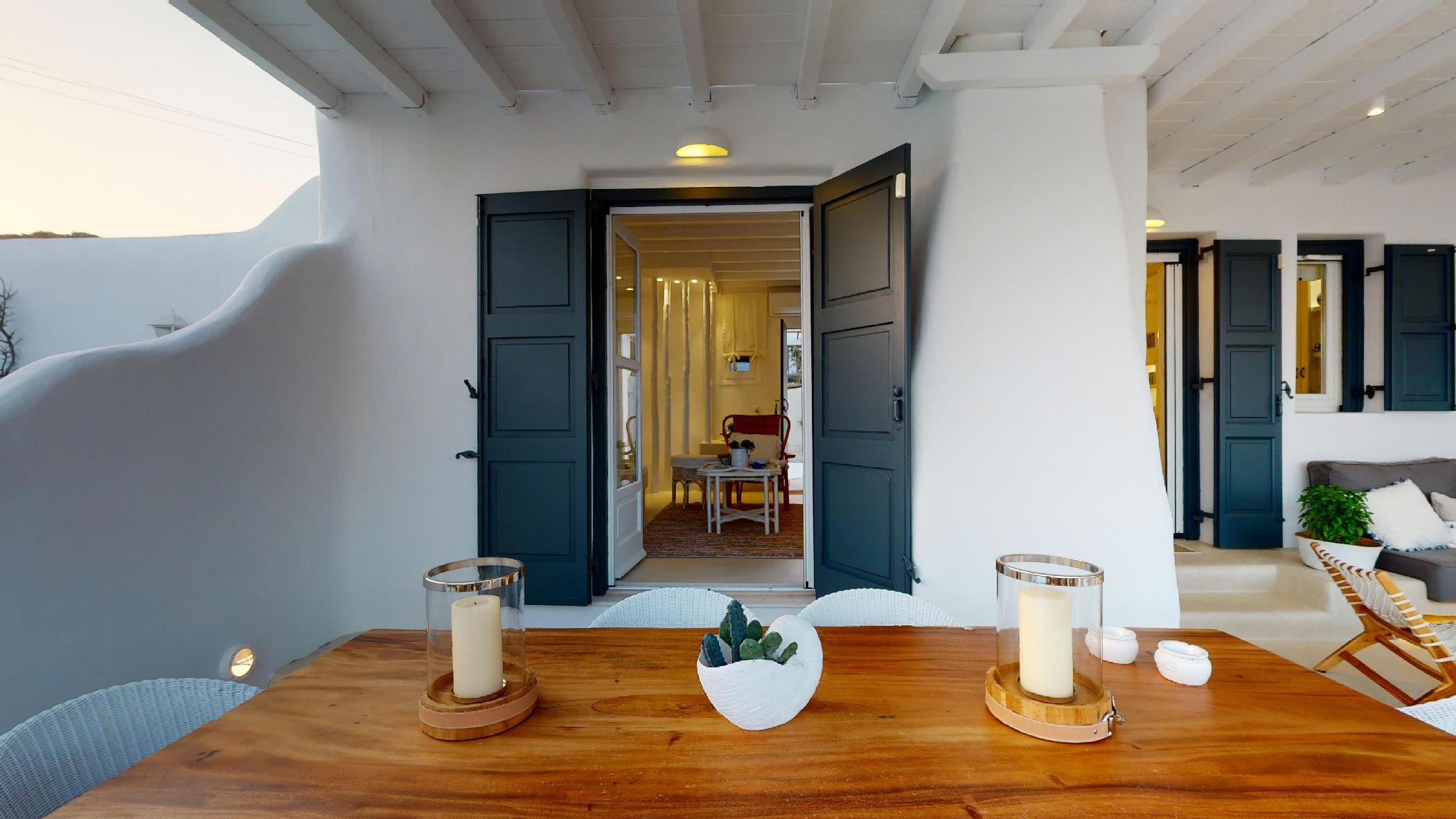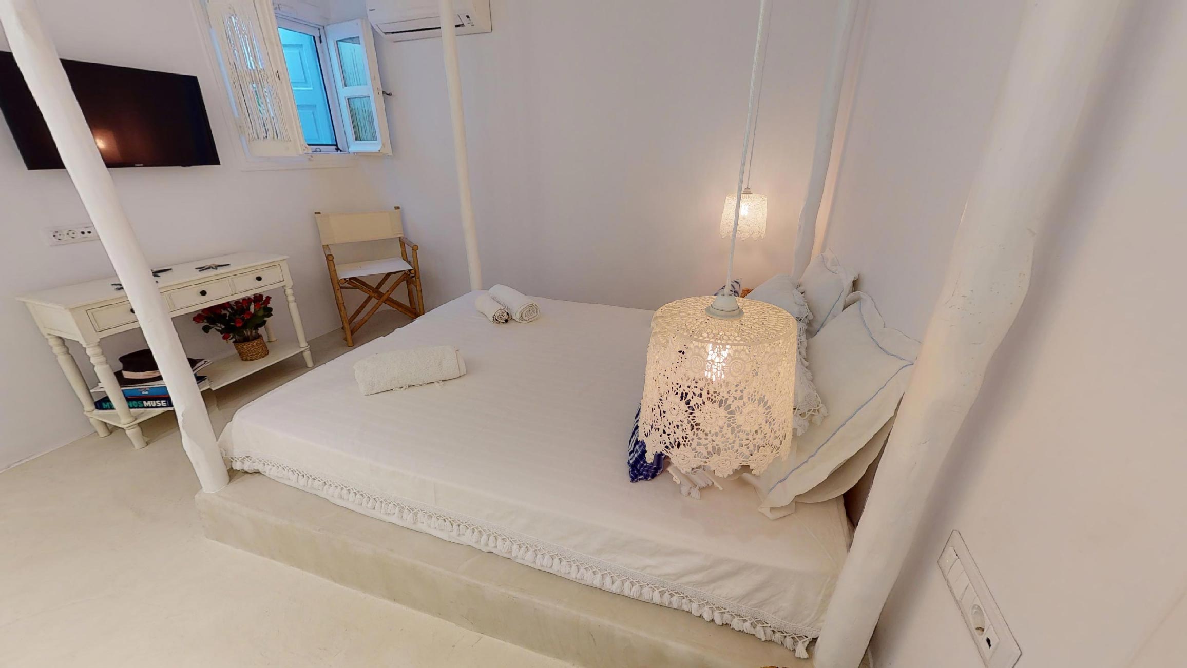 It is the ideal destination for those who wish to spend their holidays in a comfortable & elegant place, which gives the sense of a private house. This luxurious property consists of 4 bedrooms and 4 bathrooms. It has a big jacuzzi with sea view, a spacious terrace and a beautiful balcony. The living room and the kitchen have amazing sea views!