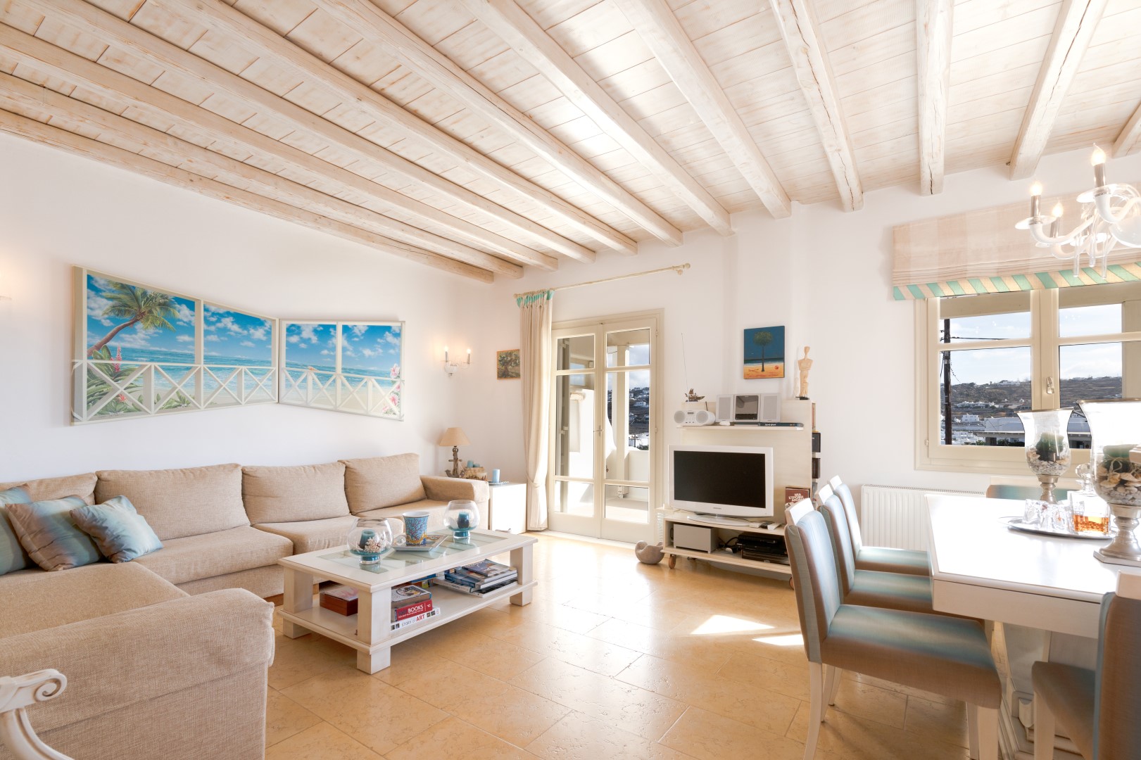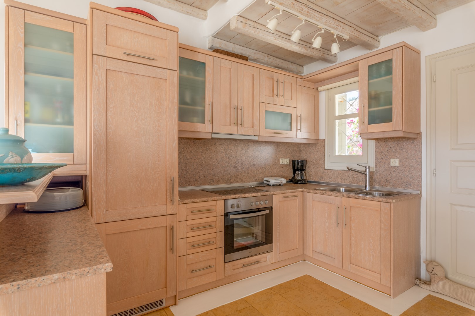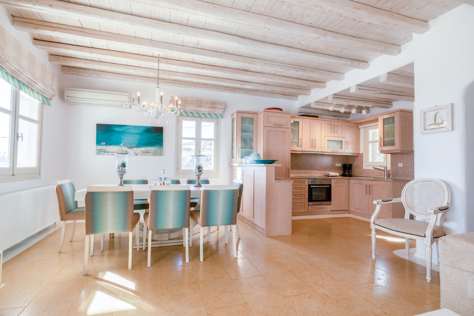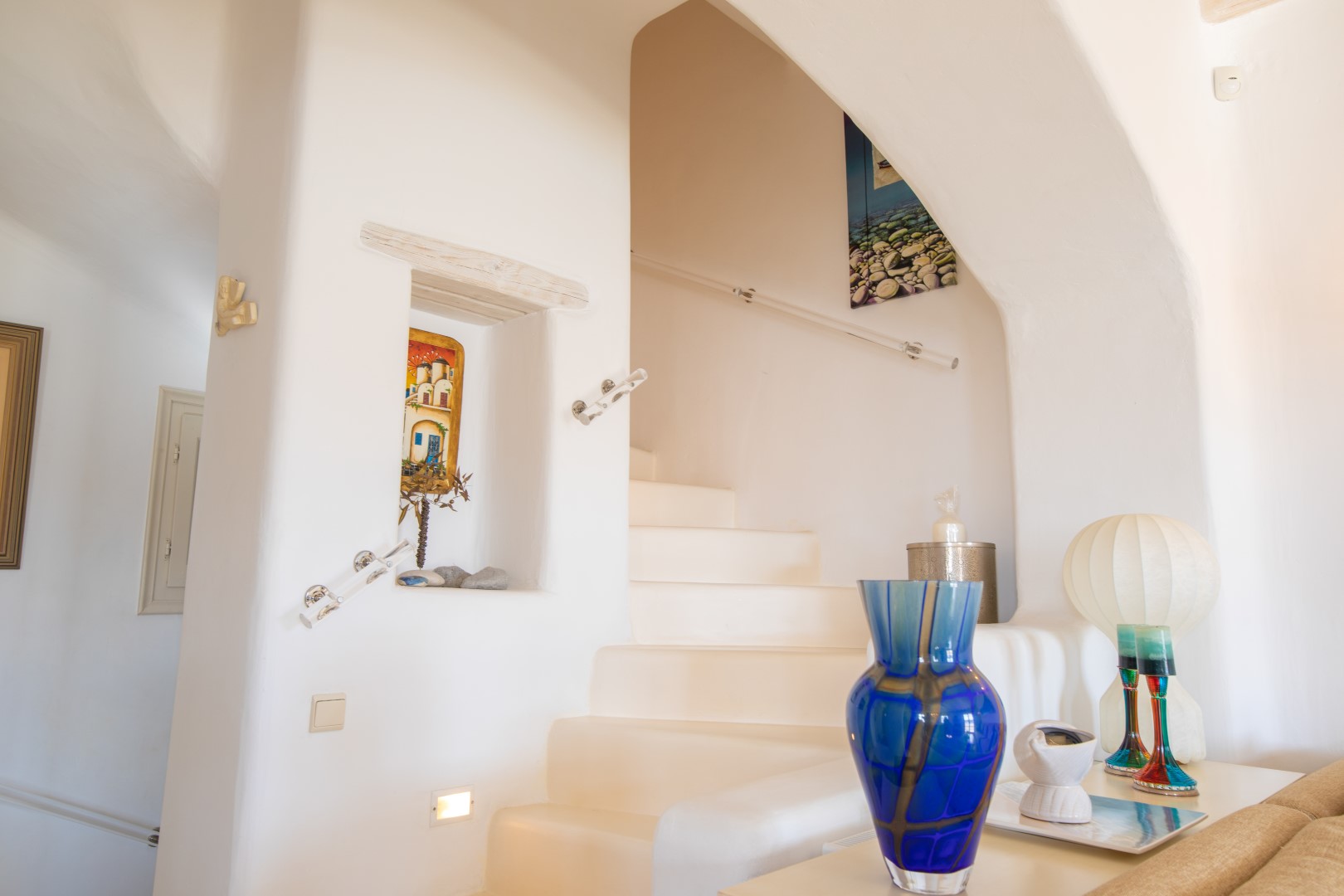 The decor is classic Cycladic with luxurious attributes. The living room has a Smart TV and a fully equipped kitchen with everything needed to enjoy convenient cooking including but not limited: to electric ovens and coffee maker (Nespresso) for the outmost home feeling. Cameras (outdoor) and alarm systems are available for security.