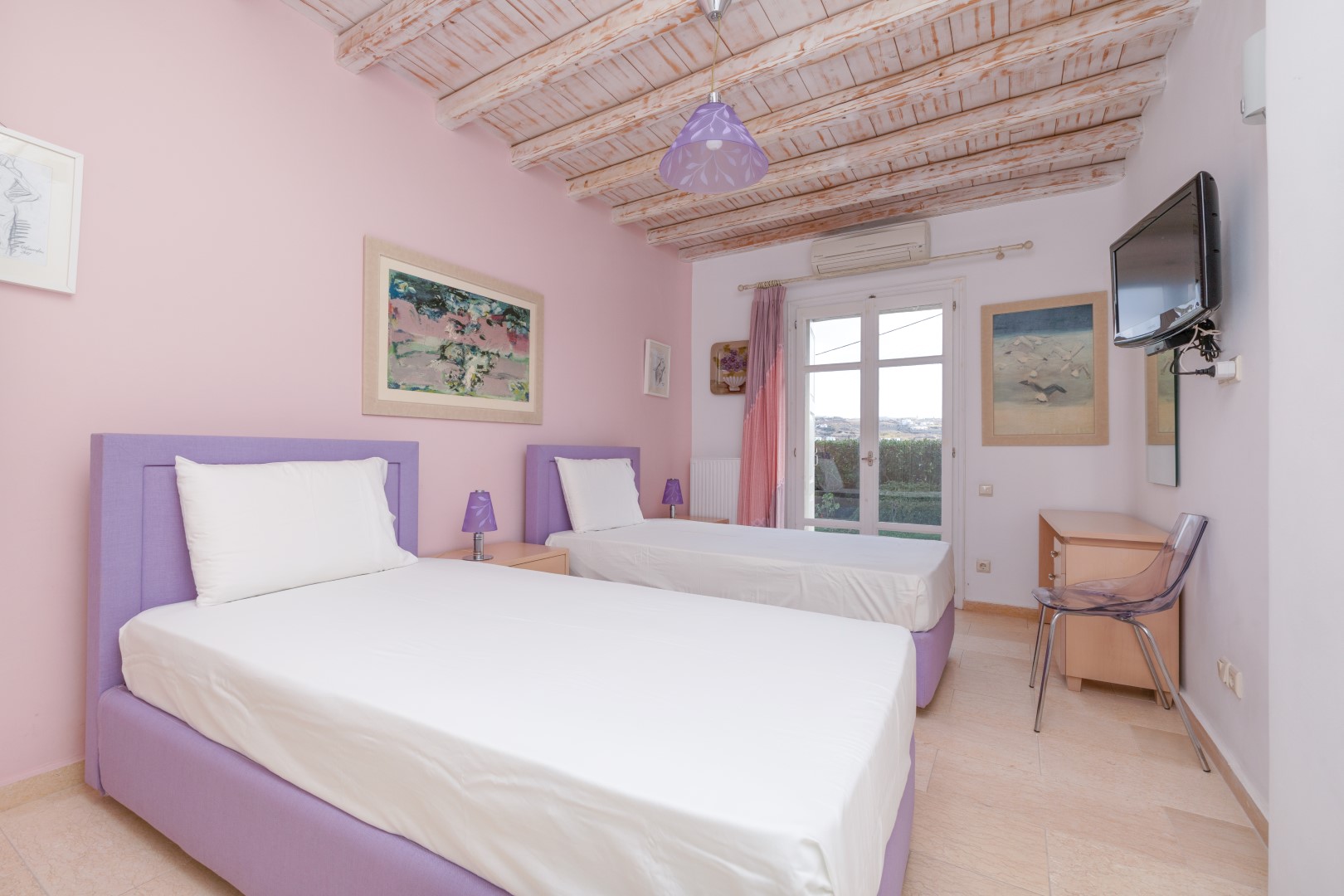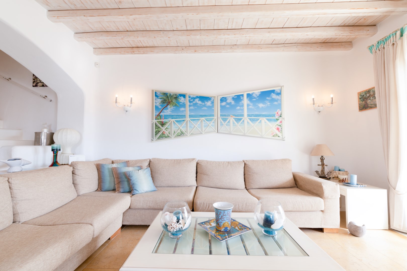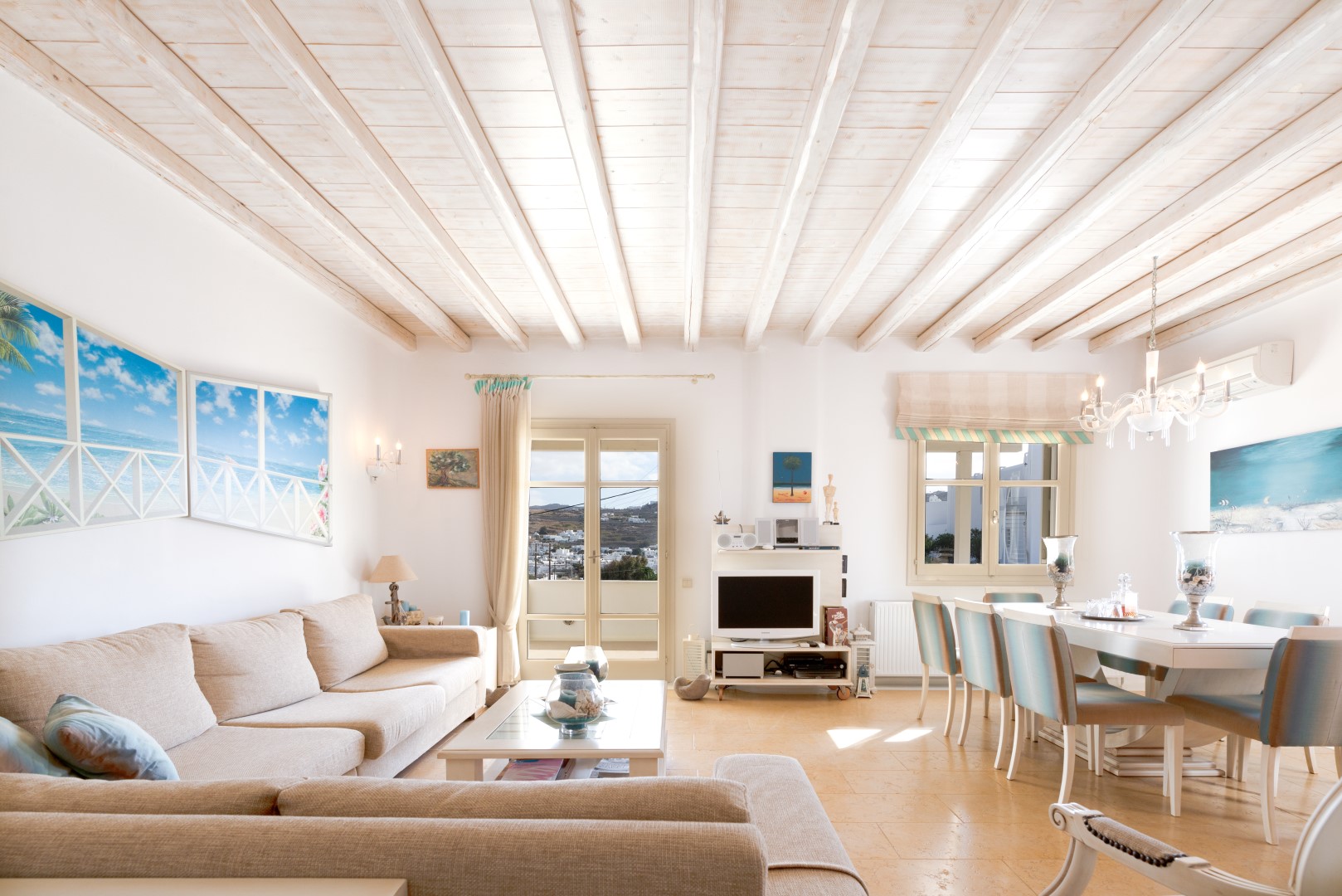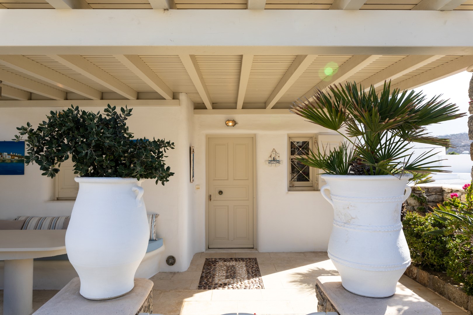 The decor is classic Cycladic with luxurious attributes. The living room has a Smart TV and a fully equipped kitchen with everything needed to enjoy convenient cooking including but not limited: to electric ovens and coffee maker (Nespresso) for the outmost home feeling. Cameras (outdoor) and alarm systems are available for security.