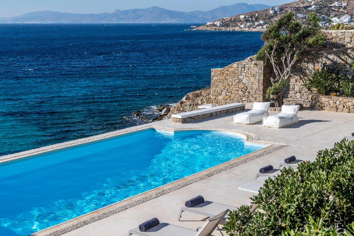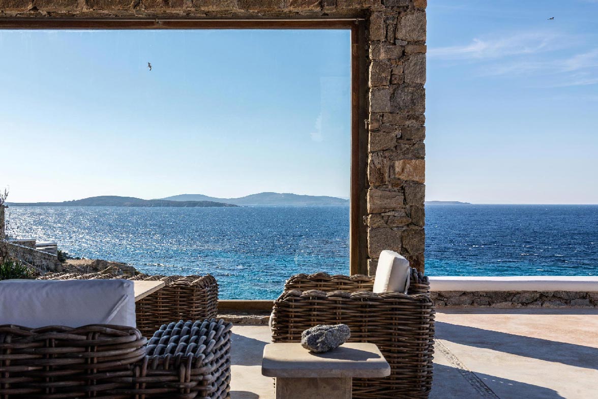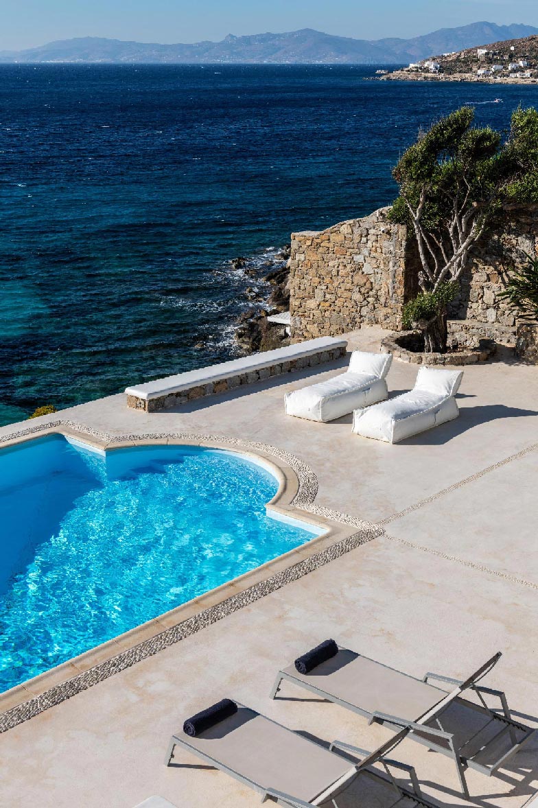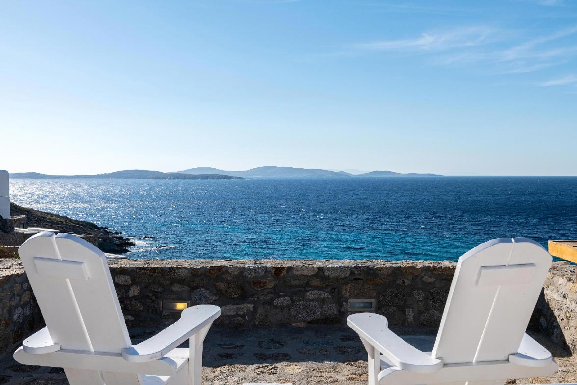 • View: direct sea and sunset views from all rooms/living rooms/pools. 10m from the water. View to Delos, Rhenia and Tinos islands.