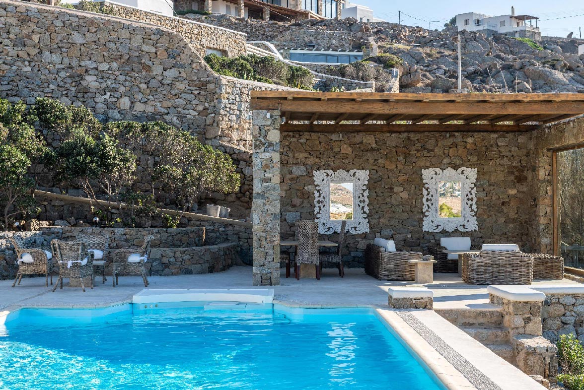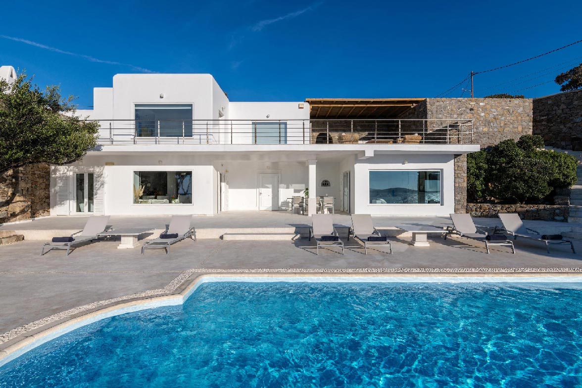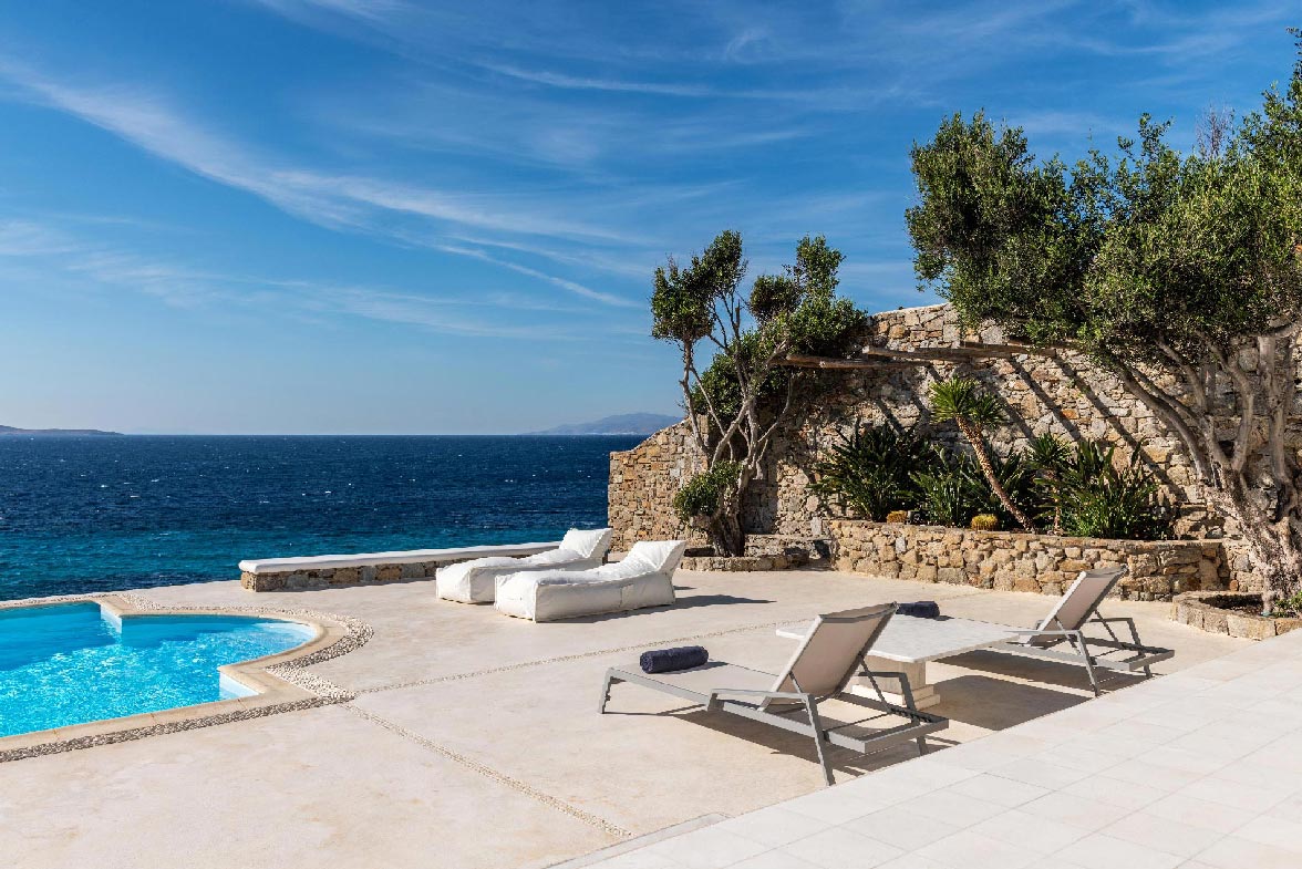 • View: direct sea and sunset views from all rooms/living rooms/pools. 10m from the water. View to Delos, Rhenia and Tinos islands.
