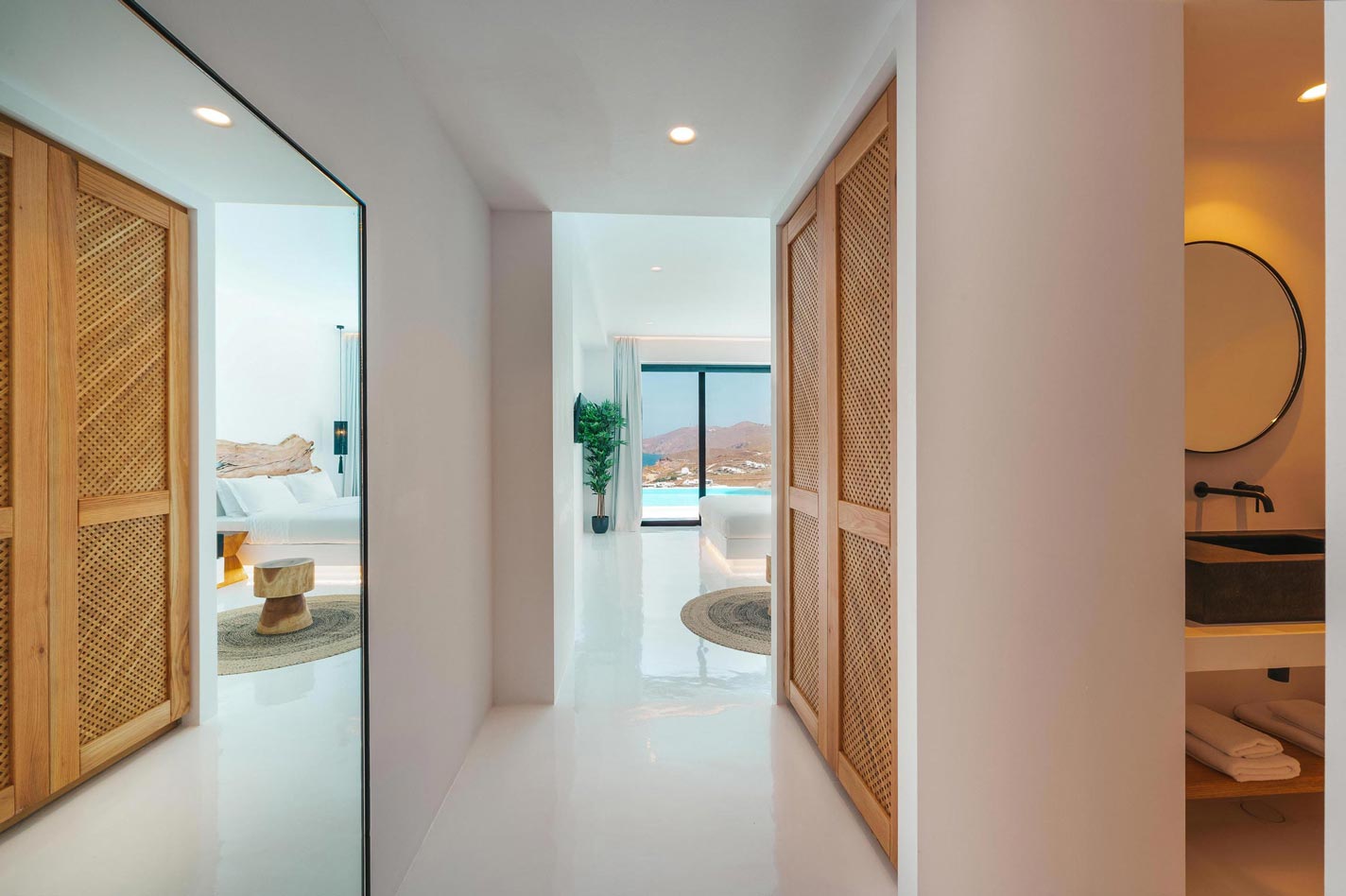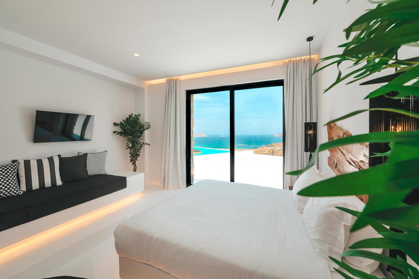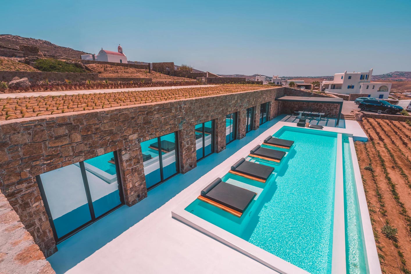 Located in an outstanding and unique location 4 kilometers away of the heart of Mykonos Town with uncanny views of the Aegean sea and the most iconic sunset. Villa Elvire is a designed sensation worthy of an international jetsetter. Modernist in structure, but with a strong Cycladic heart, villa Elvire is a stunning contemporary home imbued with a soulful bohemian character, standing nearly at the edge of the land, at times seeing to merge into the sea itself. Parties, champagne corks popping and private super yachts parading before your eyes. If you love nothing more than a touch of glam and indulgent luxury, then look no further than this one of a kind summer lair for up to 10 guests.