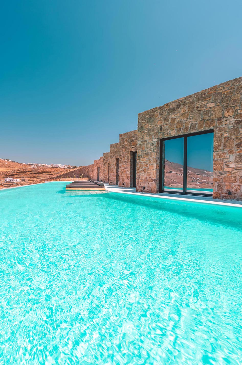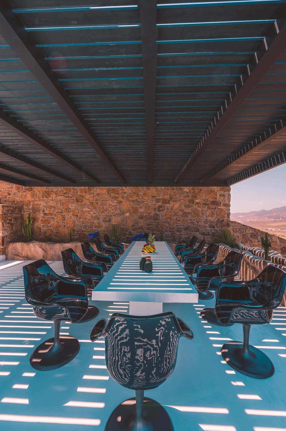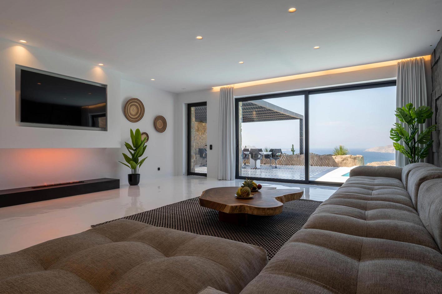 Located in an outstanding and unique location 4 kilometers away of the heart of Mykonos Town with uncanny views of the Aegean sea and the most iconic sunset. Villa Elvire is a designed sensation worthy of an international jetsetter. Modernist in structure, but with a strong Cycladic heart, villa Elvire is a stunning contemporary home imbued with a soulful bohemian character, standing nearly at the edge of the land, at times seeing to merge into the sea itself. Parties, champagne corks popping and private super yachts parading before your eyes. If you love nothing more than a touch of glam and indulgent luxury, then look no further than this one of a kind summer lair for up to 10 guests.