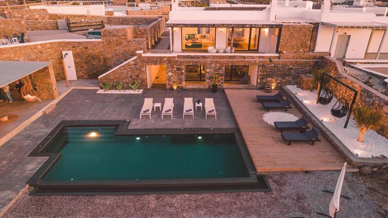 Villa Eolos is a luxurious villa located in the beautiful area called “Kanalia Mykonou”, at a distance of 10 minutes from the cosmopolitan town of Mykonos and only 5 minutes from the organized and popular for the famous beach bar and restaurants Ornos beach.