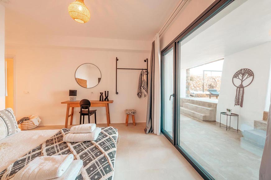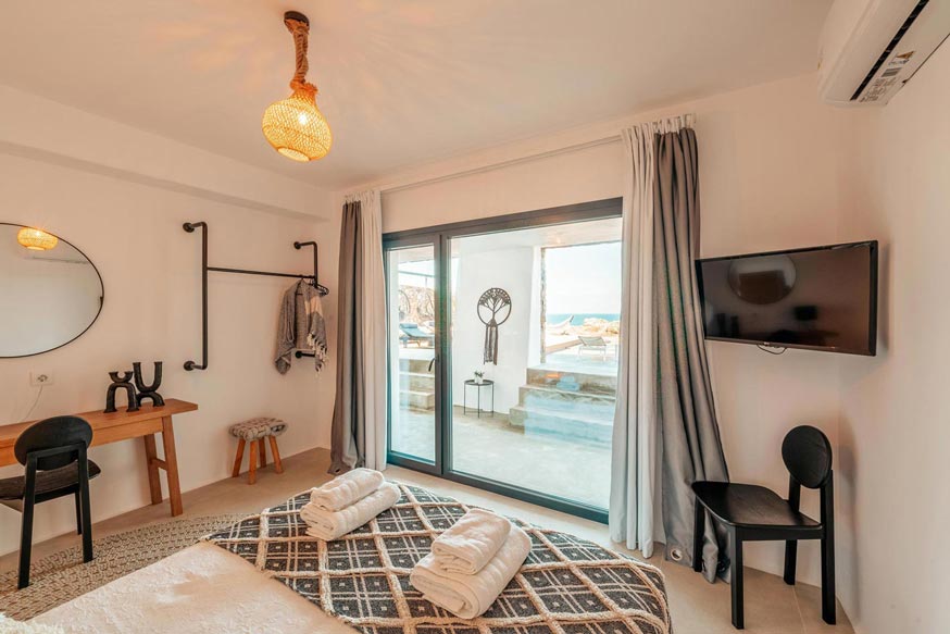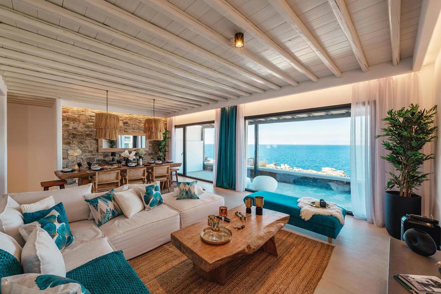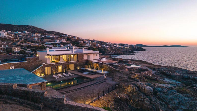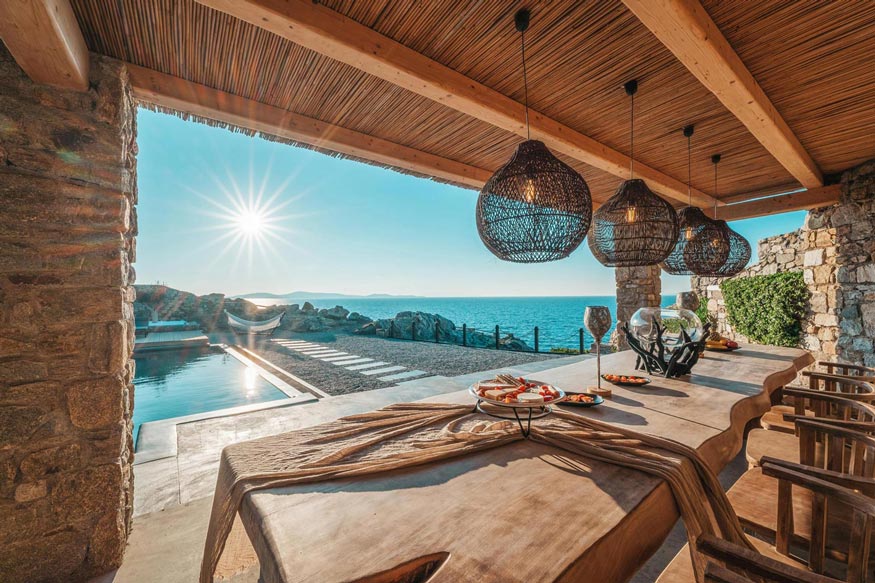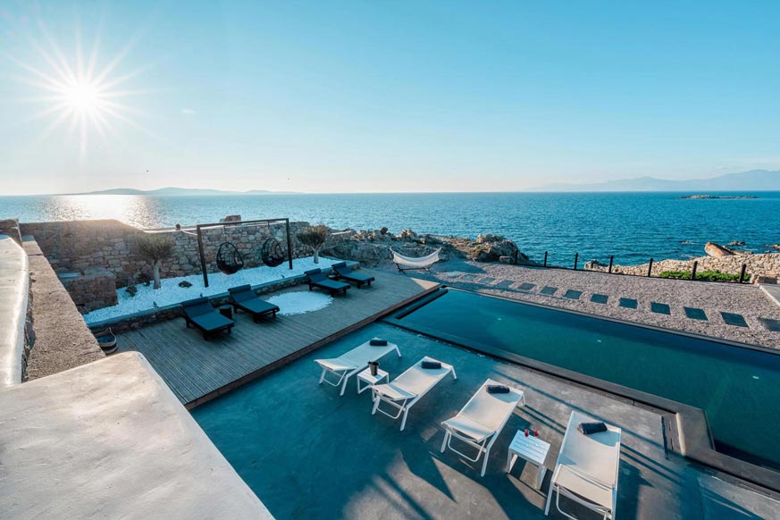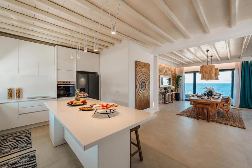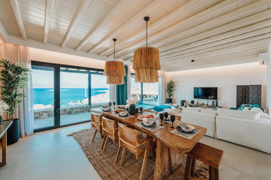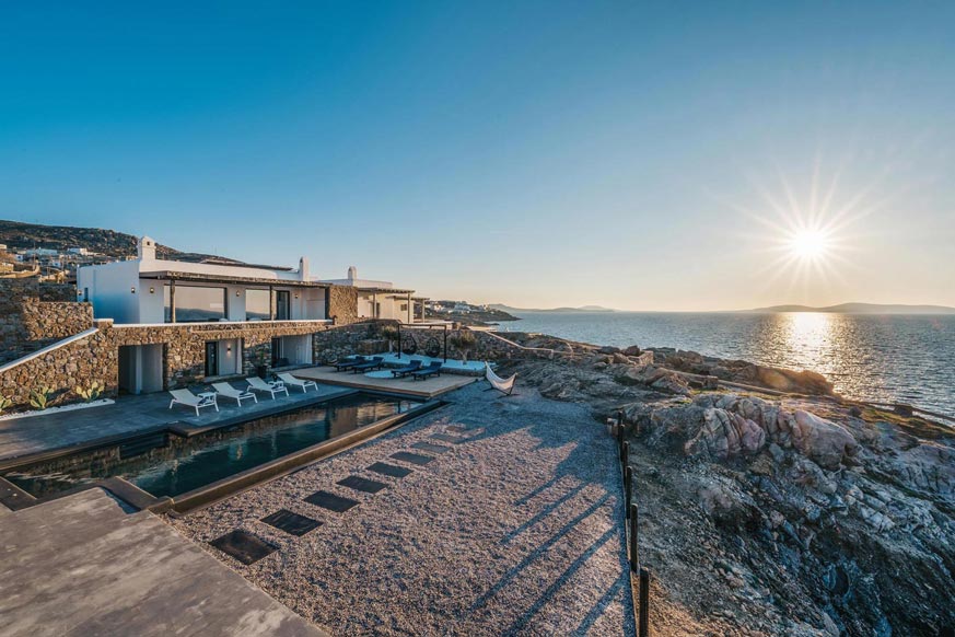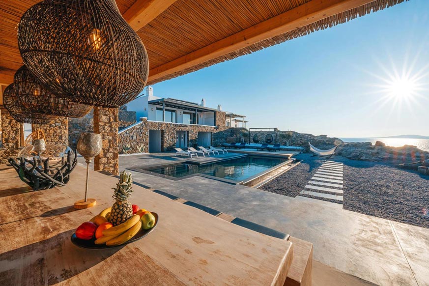 However, the main element that makes the villa unique, is the direct visibility and unobstructed view to the sea and the magnificent sunset, especially that time of the day, when the sun sinks into the sea, revealing the well-known ancient island of Delos.