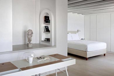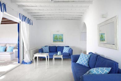 The beautiful 4-bedroom villa is located in a residential complex in Agios Ioannis, just 4 km from Mykonos town and less than 3 km to Ornos.