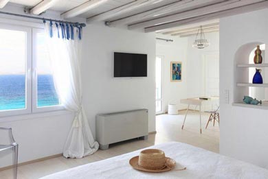 The property has great views of the Aegean Sea, Delos island and the famous Mykonian sunset.