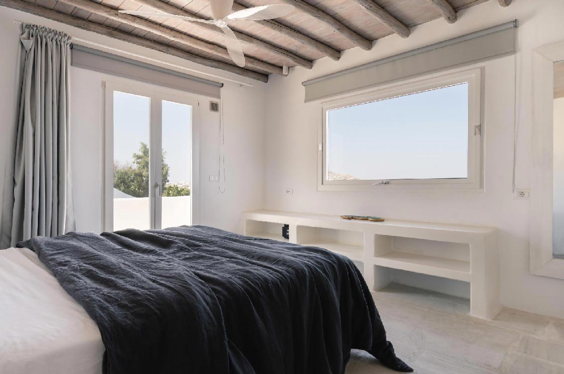 Bedroom 1 – Master (1.80 x 2) with en- suite shower, AC, Ceiling fan, sea view – overlooking Psarou beach