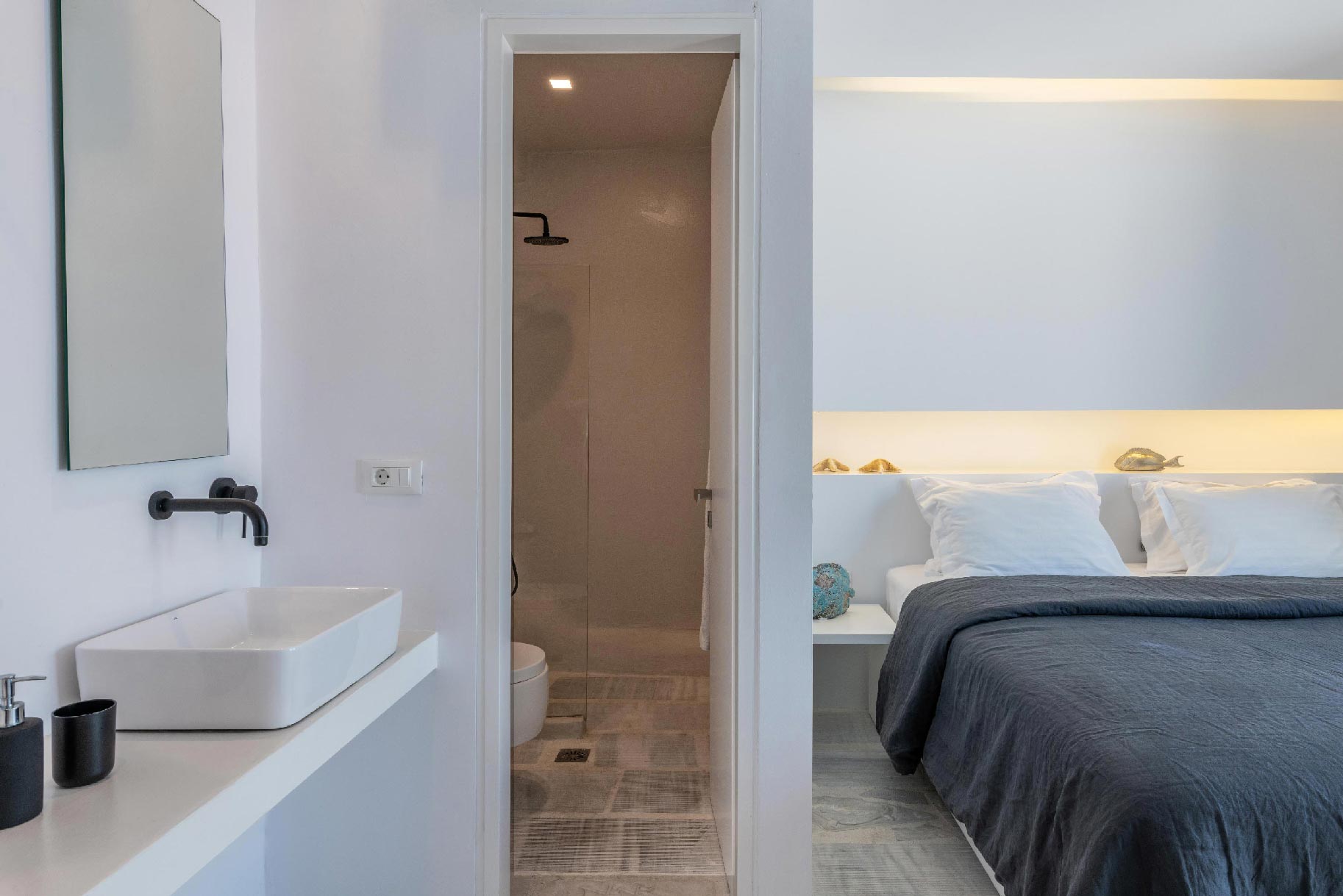 With its ample open-air terraces spilling onto endless views to Psarou, Platys Gialos, Agia Anna, Paraga and the Cycladic coastline, villa Eris offers vastness in a suctuary to connect with your body and soul.