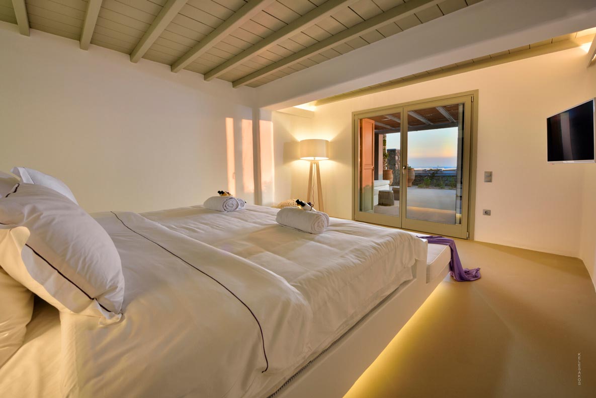 A stunning, hillside Villa with spectacular views over Kounoupas and the Aegean. Cleverly designed with the guests of the 2 master bedrooms enjoy a private terrace, this superb ground-level home is a sun worshipper’s dream.