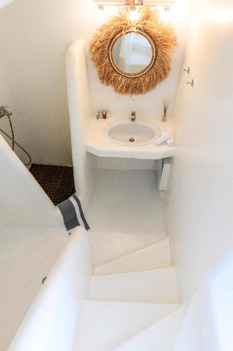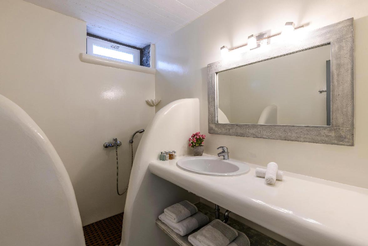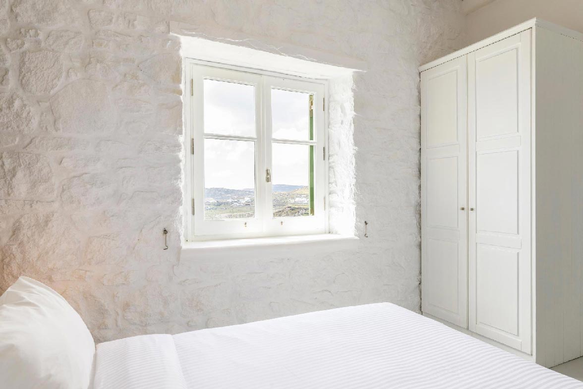 •  1 master bedroom 18 m2, 1 double size bed. The room has direct access to the parking area with view to Kalafatis beach and it is equipped with safe box, hairdryer, bathroom amenities and towels.