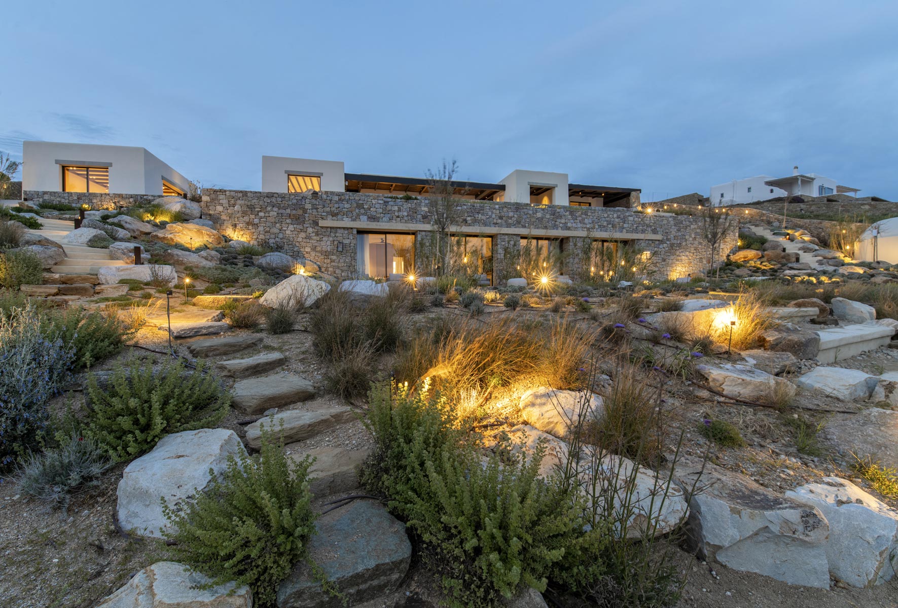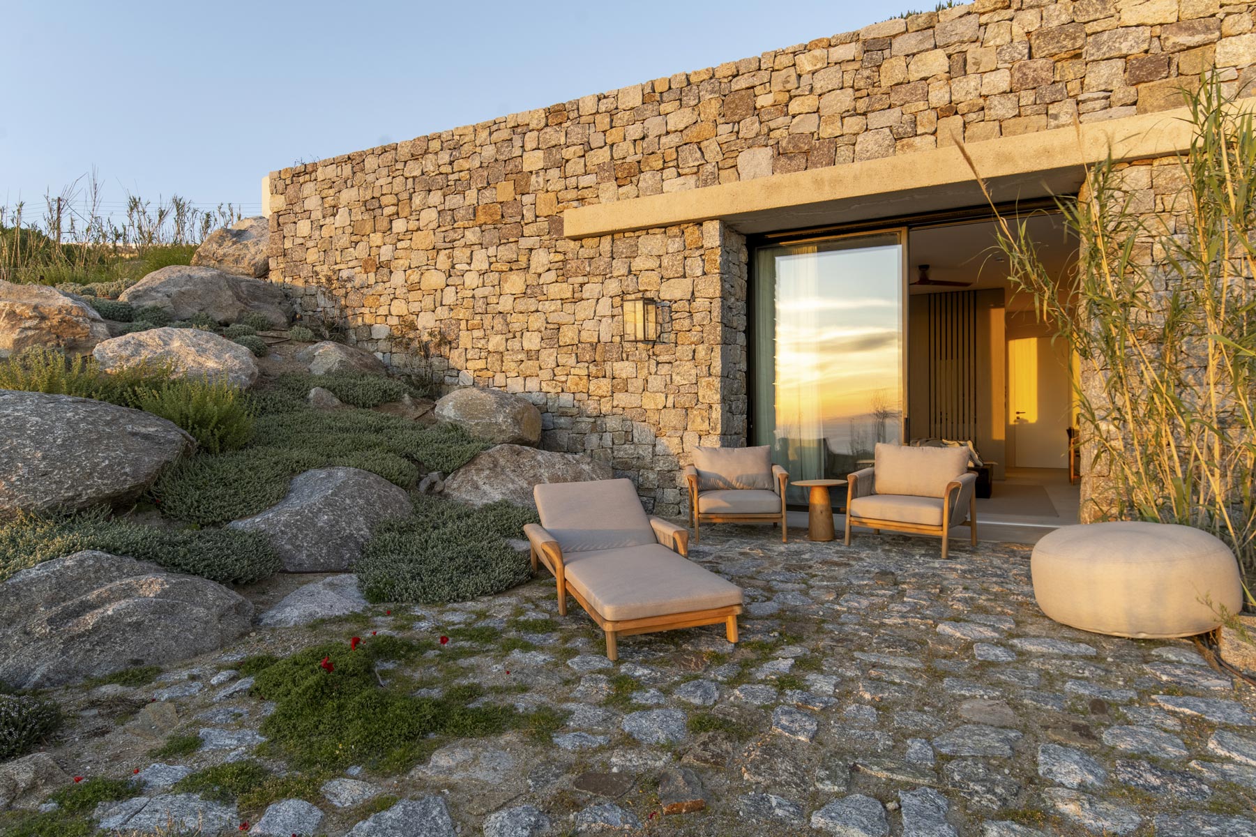 Nestled on Faro a prime hillside location just 14 minutes from Mykonos Town, Villa Faro is an exquisite private retreat offering unobstructed sea views, breathtaking sunsets, and a direct gaze toward the sacred island of Delos. Designed to harmonize with the island’s natural beauty and architectural heritage, this 1,050 m² villa blends traditional Cycladic elements with modern elegance across a 4,100 m² estate.