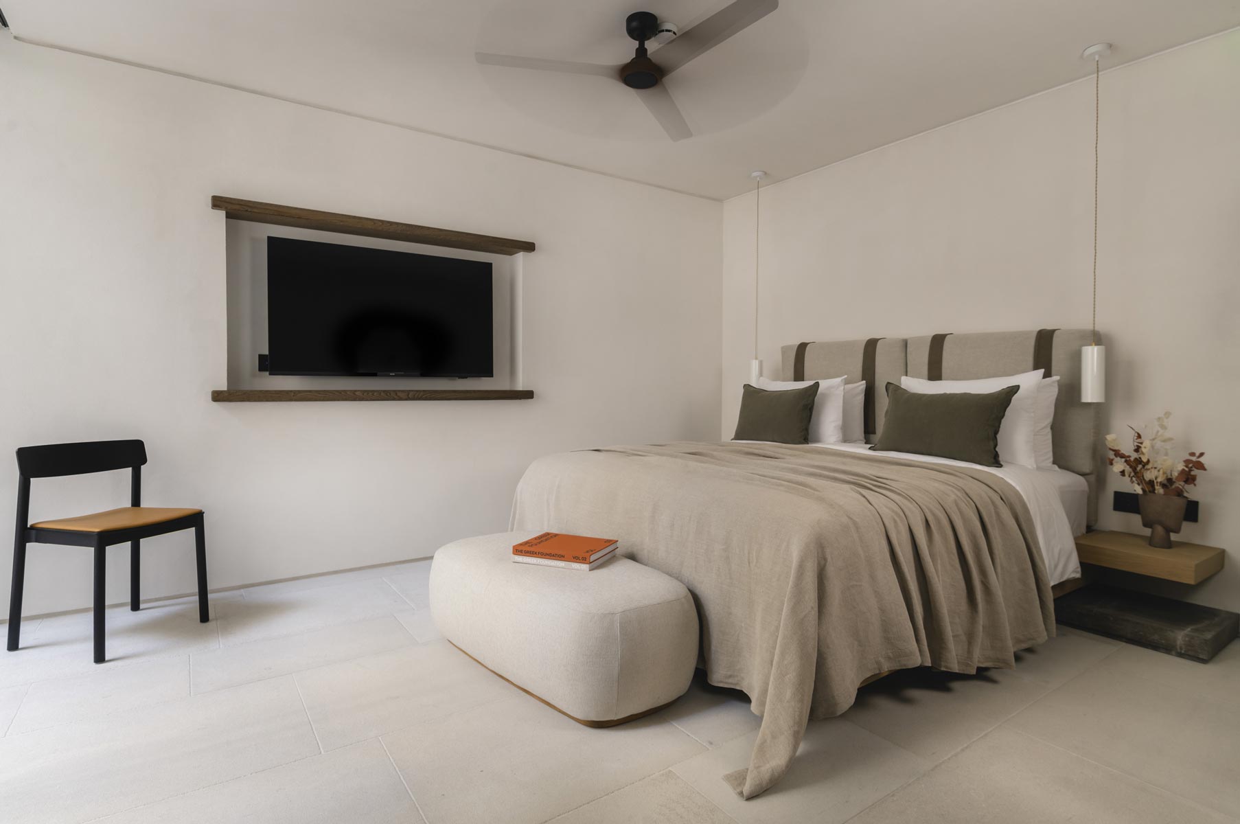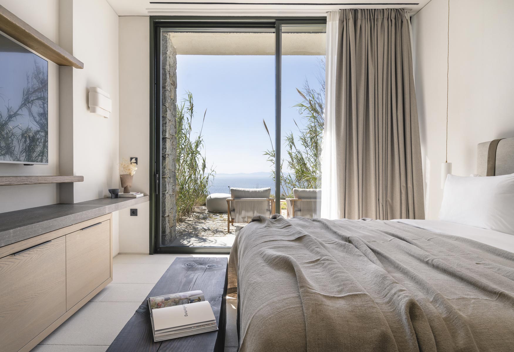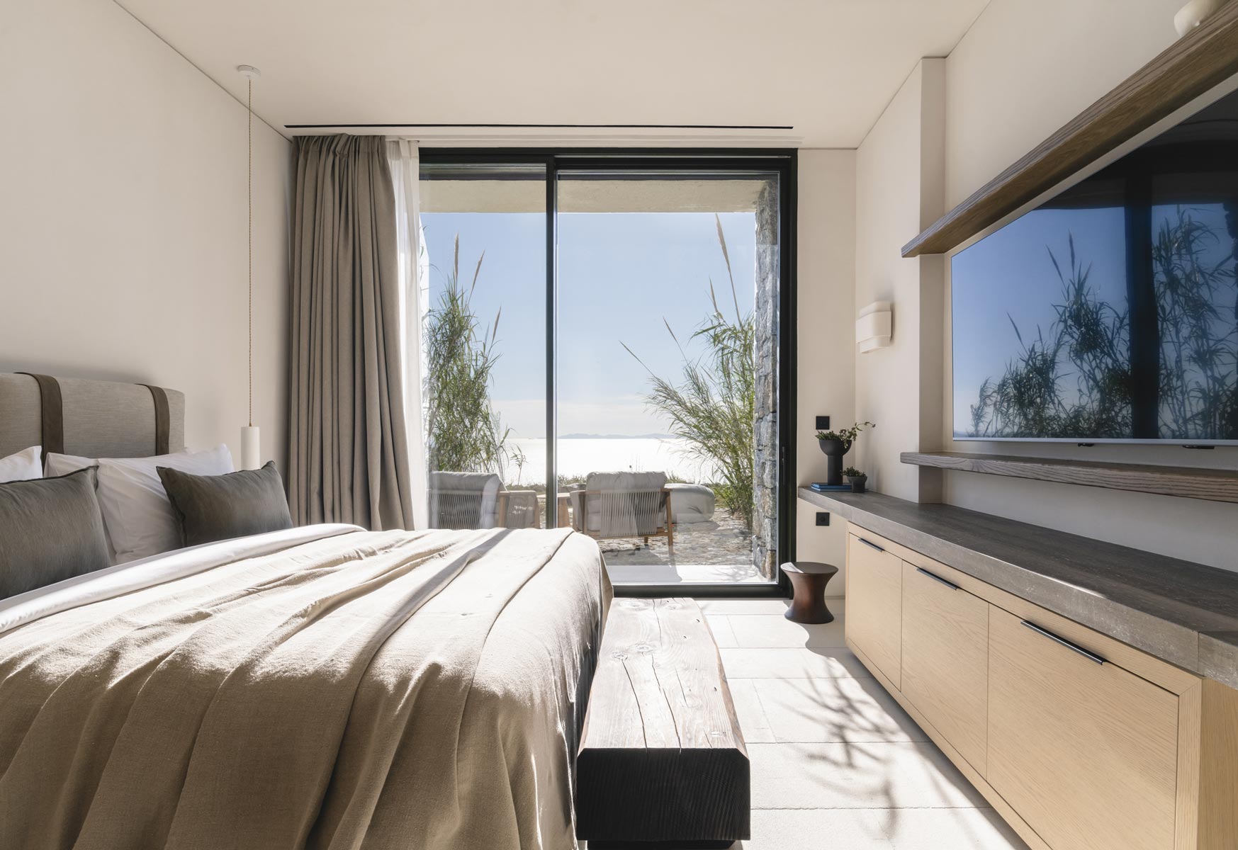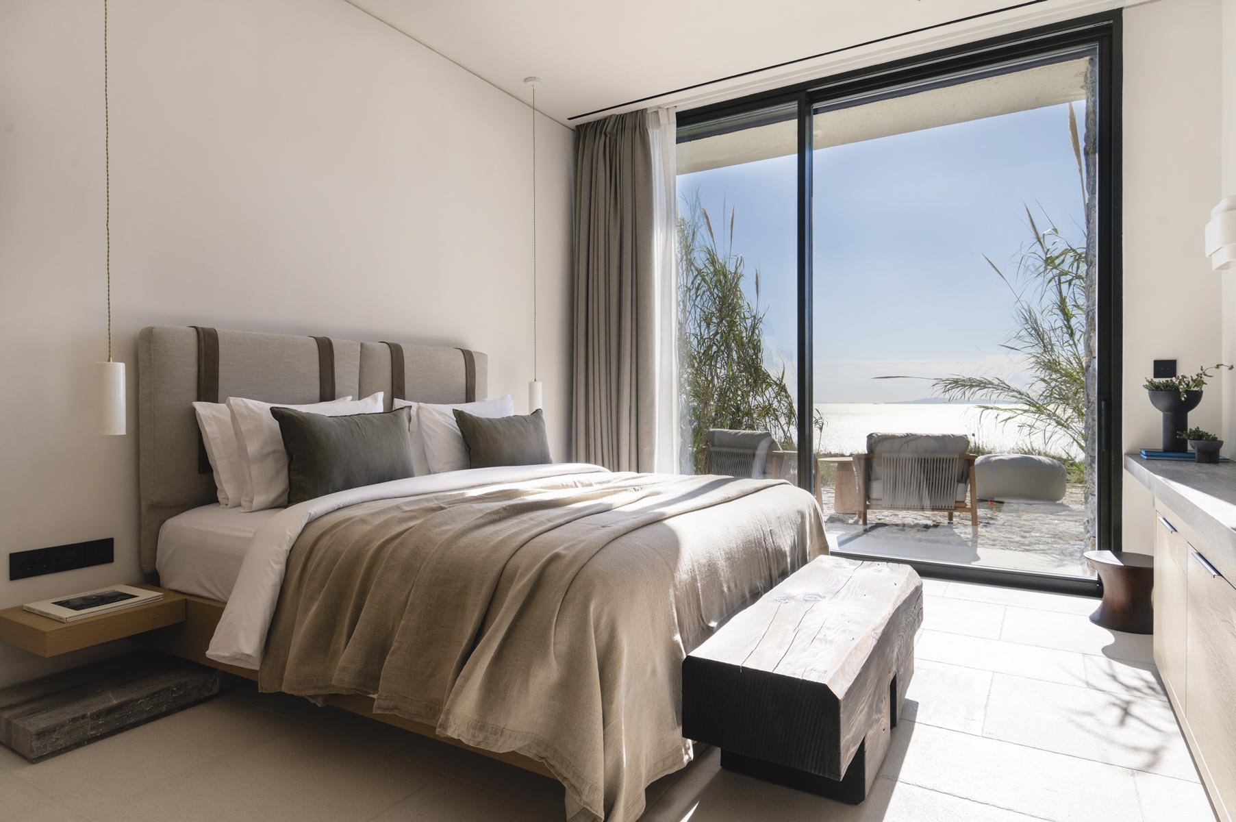 The villa hosts up to 14 guests (+5 staff or additional guests), offering 7 en-suite bedrooms, including 2 spacious master suites with panoramic sea views. An independent two-bedroom staff apartment with a private kitchen and an additional nanny’s en-suite room ensure absolute privacy and seamless service.