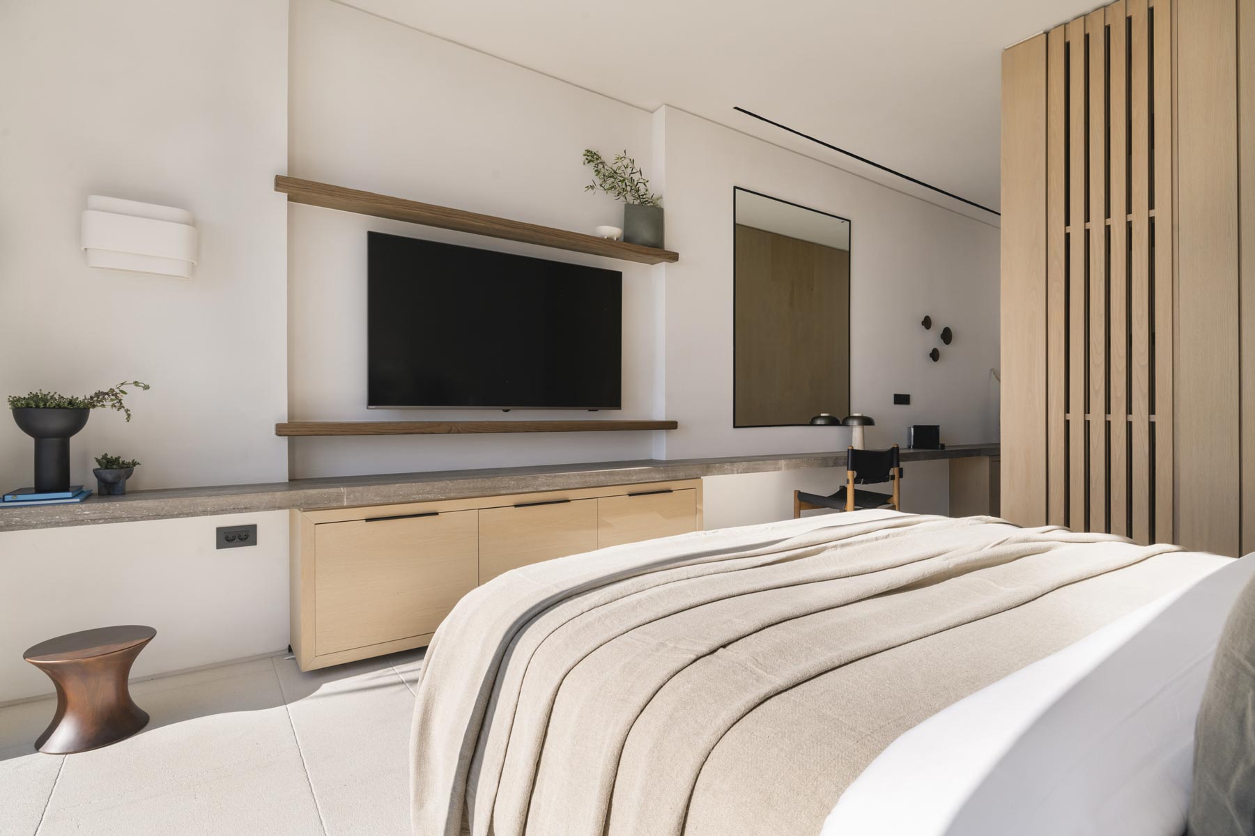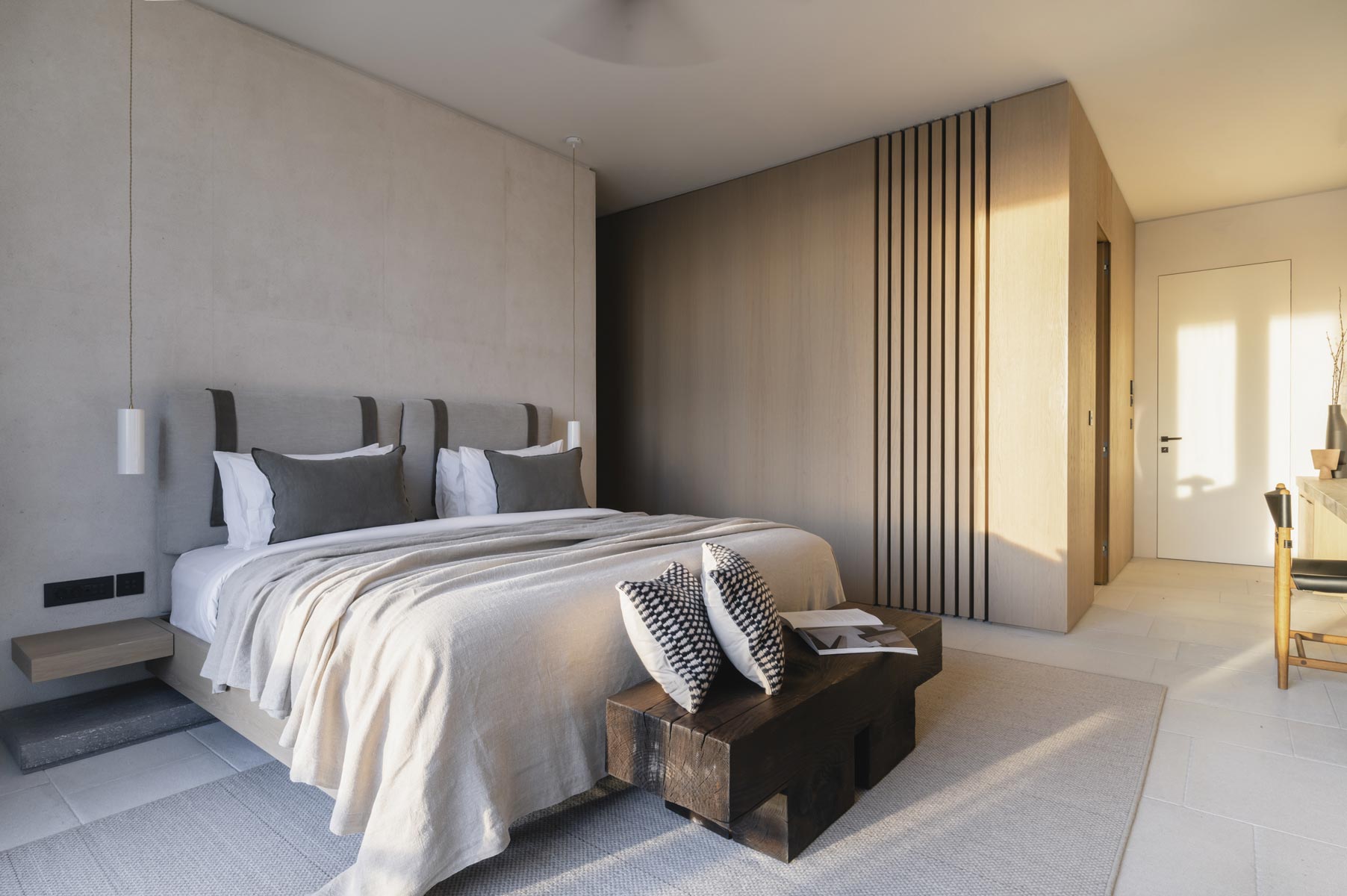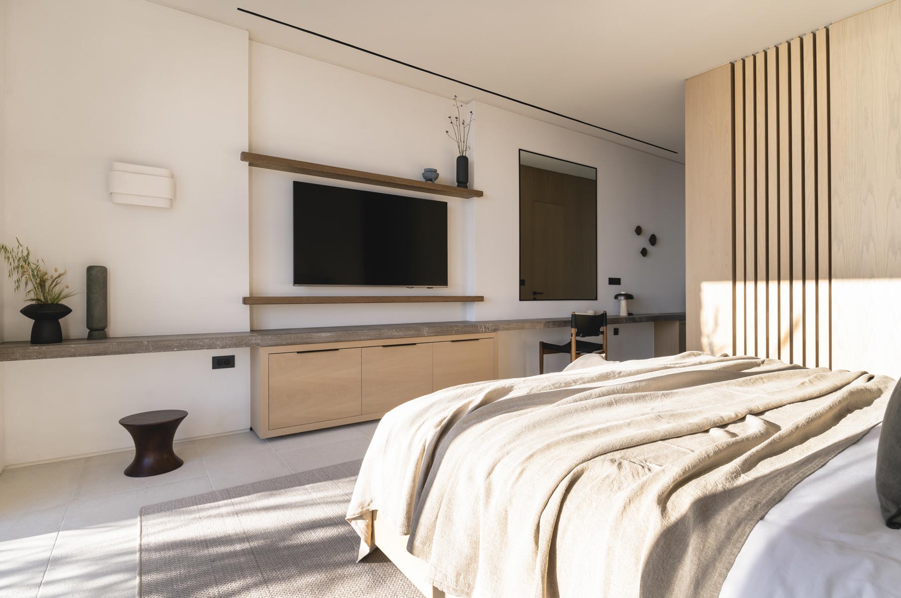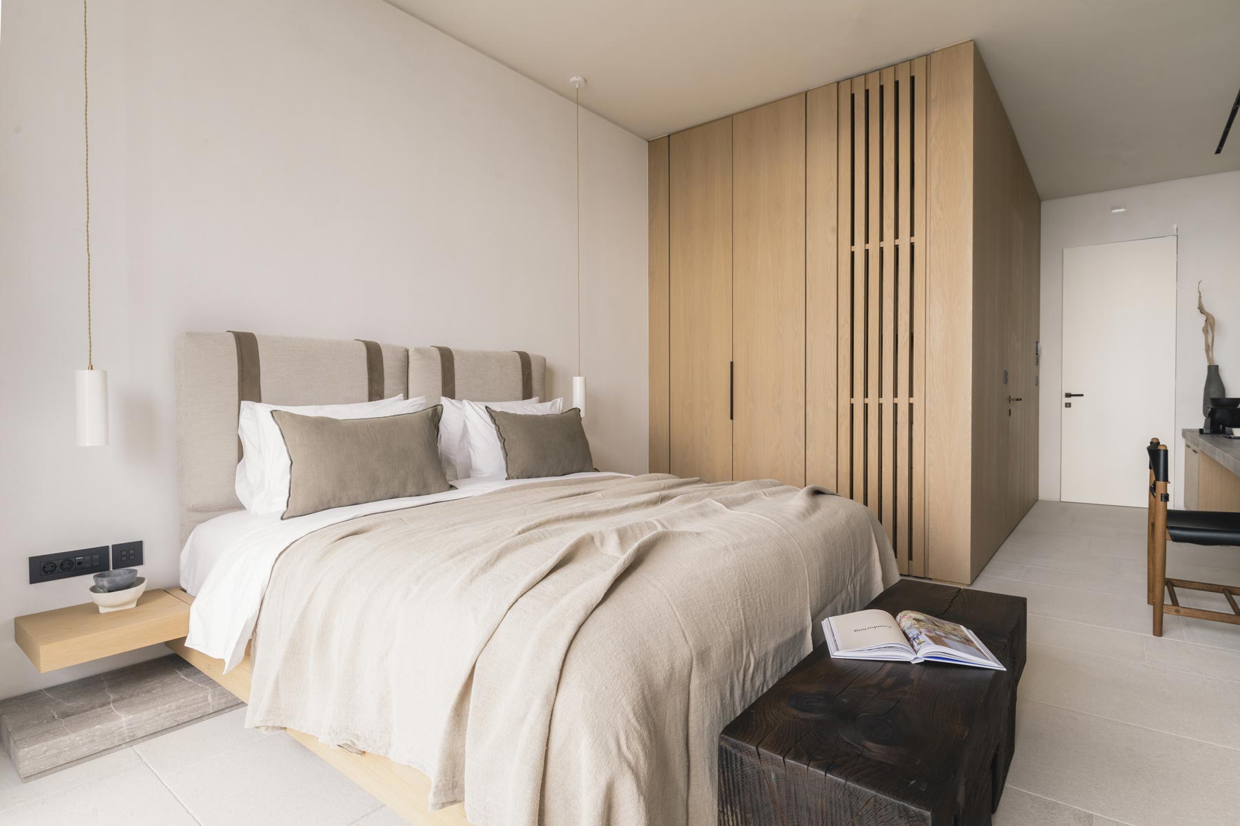The villa hosts up to 14 guests (+5 staff or additional guests), offering 7 en-suite bedrooms, including 2 spacious master suites with panoramic sea views. An independent two-bedroom staff apartment with a private kitchen and an additional nanny’s en-suite room ensure absolute privacy and seamless service.