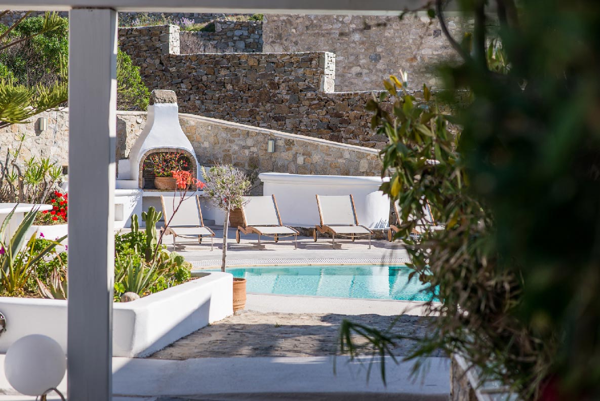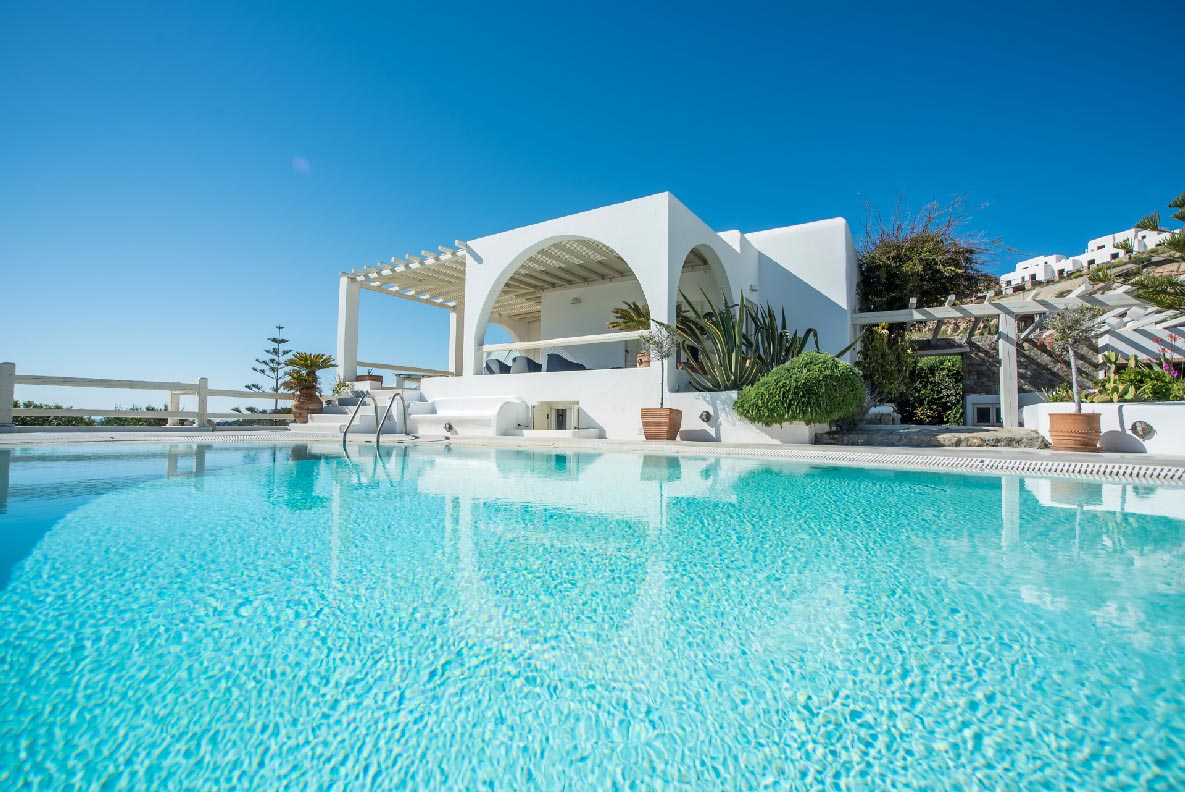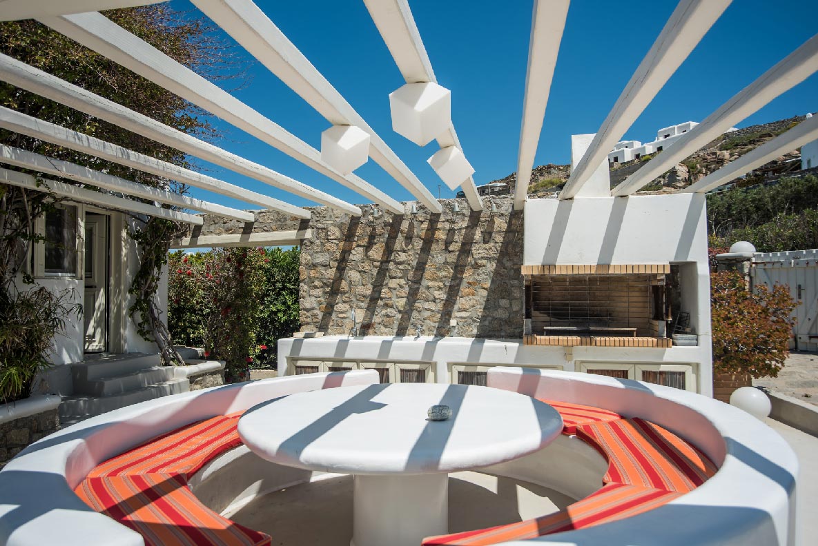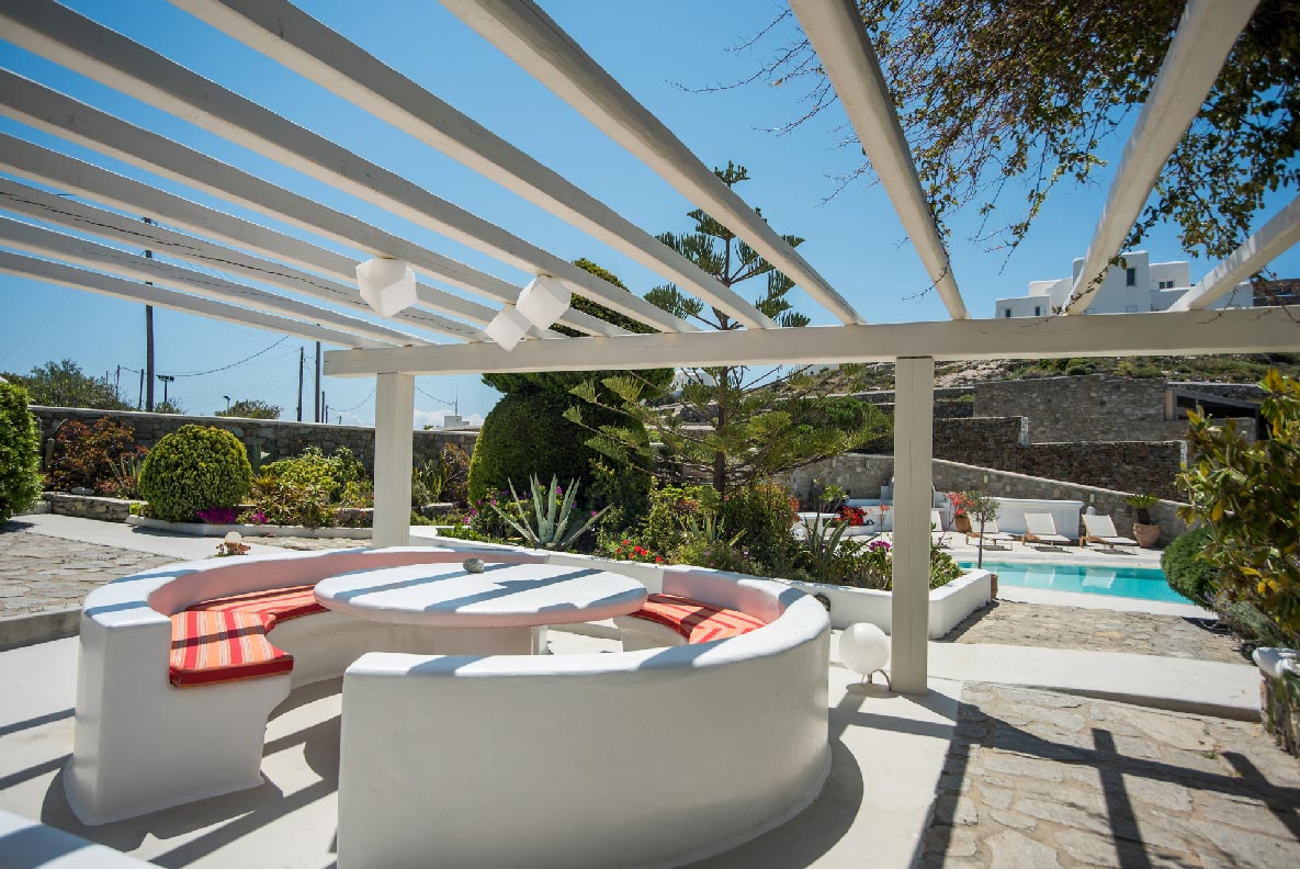 The villa lays on a hillside at the famous area of Saint John, in just a 5-minute driving distance from the vibrant Mykonos town and a breath away from the cosmopolitan beach of Ornos. With wonderful views towards the Aegean sea, Delos island and the colorful sunsets, its sublime location offers serenity and peace and at the same time proximity to shops and groceries stores. Surrounded by spacious outdoors, the villa boasts a private swimming pool, dinning and seating areas, both pergola-covered and alfresco, and plenty of cozy corners in the garden.