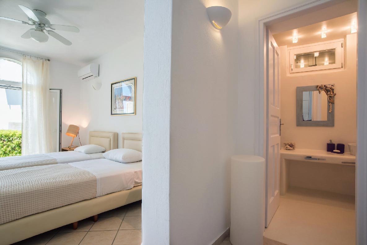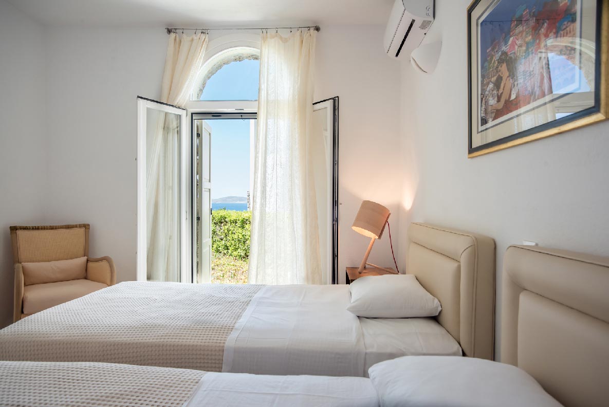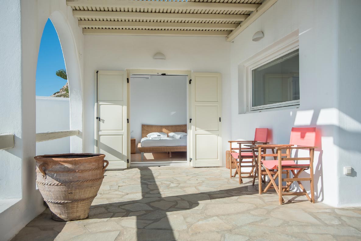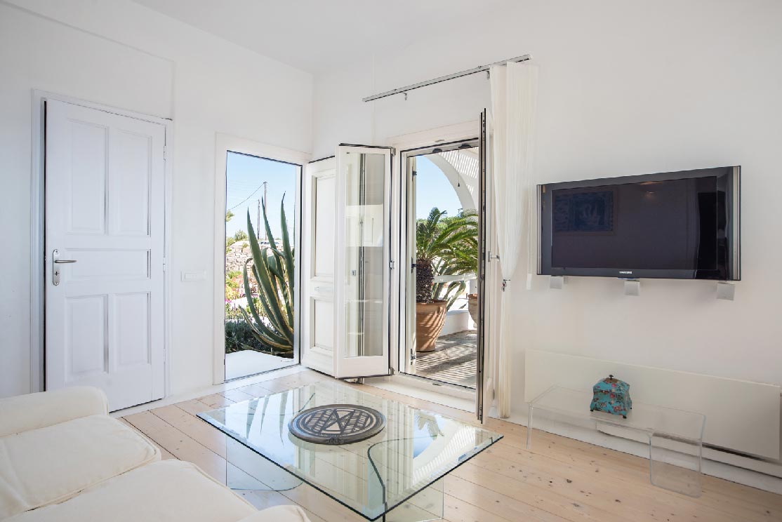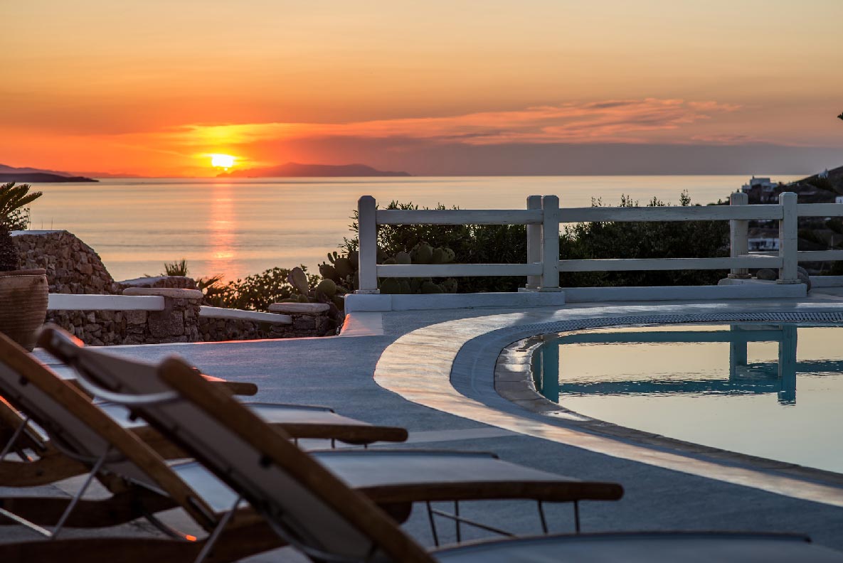 The villa lays on a hillside at the famous area of Saint John, in just a 5-minute driving distance from the vibrant Mykonos town and a breath away from the cosmopolitan beach of Ornos. With wonderful views towards the Aegean sea, Delos island and the colorful sunsets, its sublime location offers serenity and peace and at the same time proximity to shops and groceries stores. Surrounded by spacious outdoors, the villa boasts a private swimming pool, dinning and seating areas, both pergola-covered and alfresco, and plenty of cozy corners in the garden.