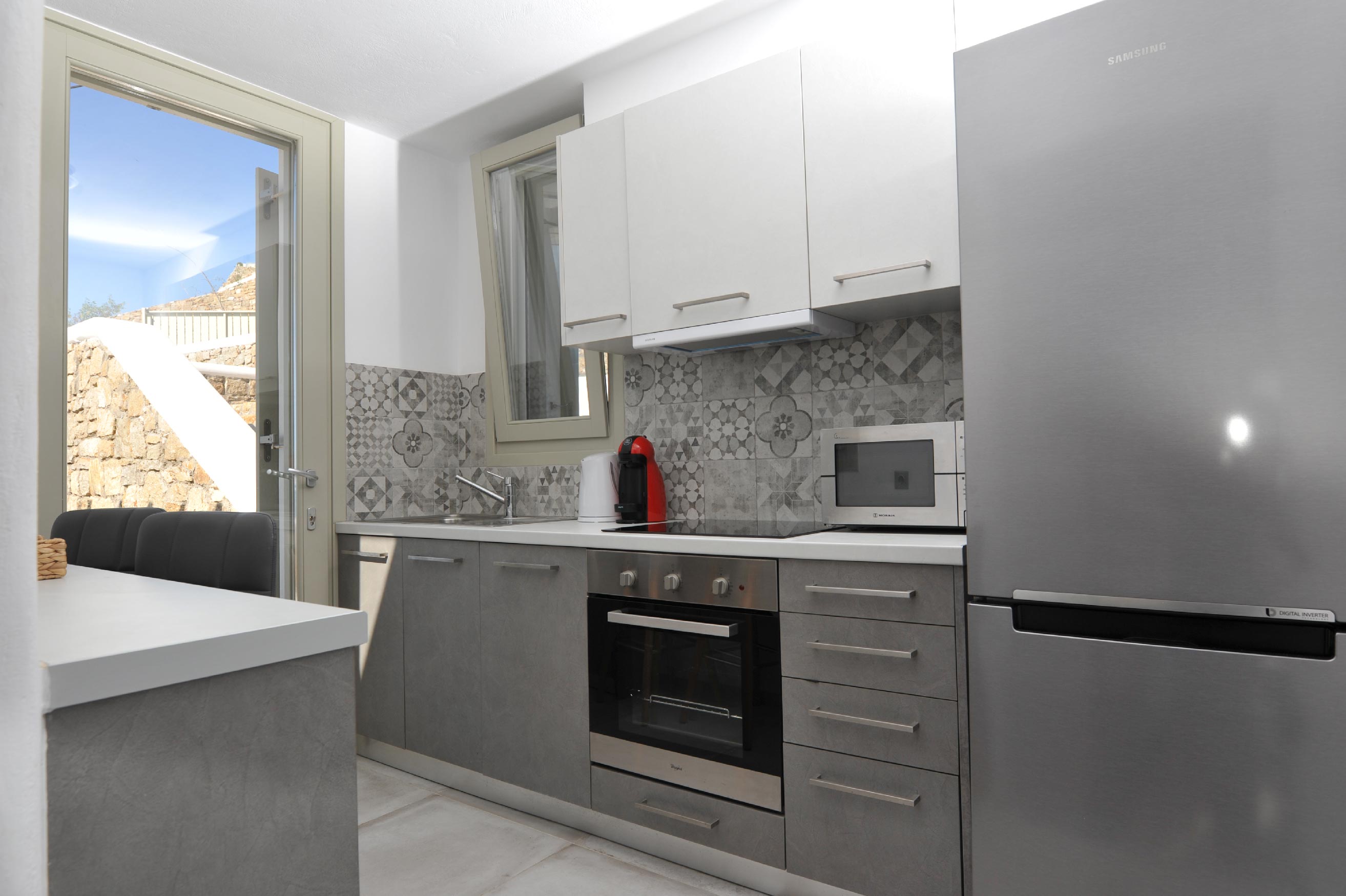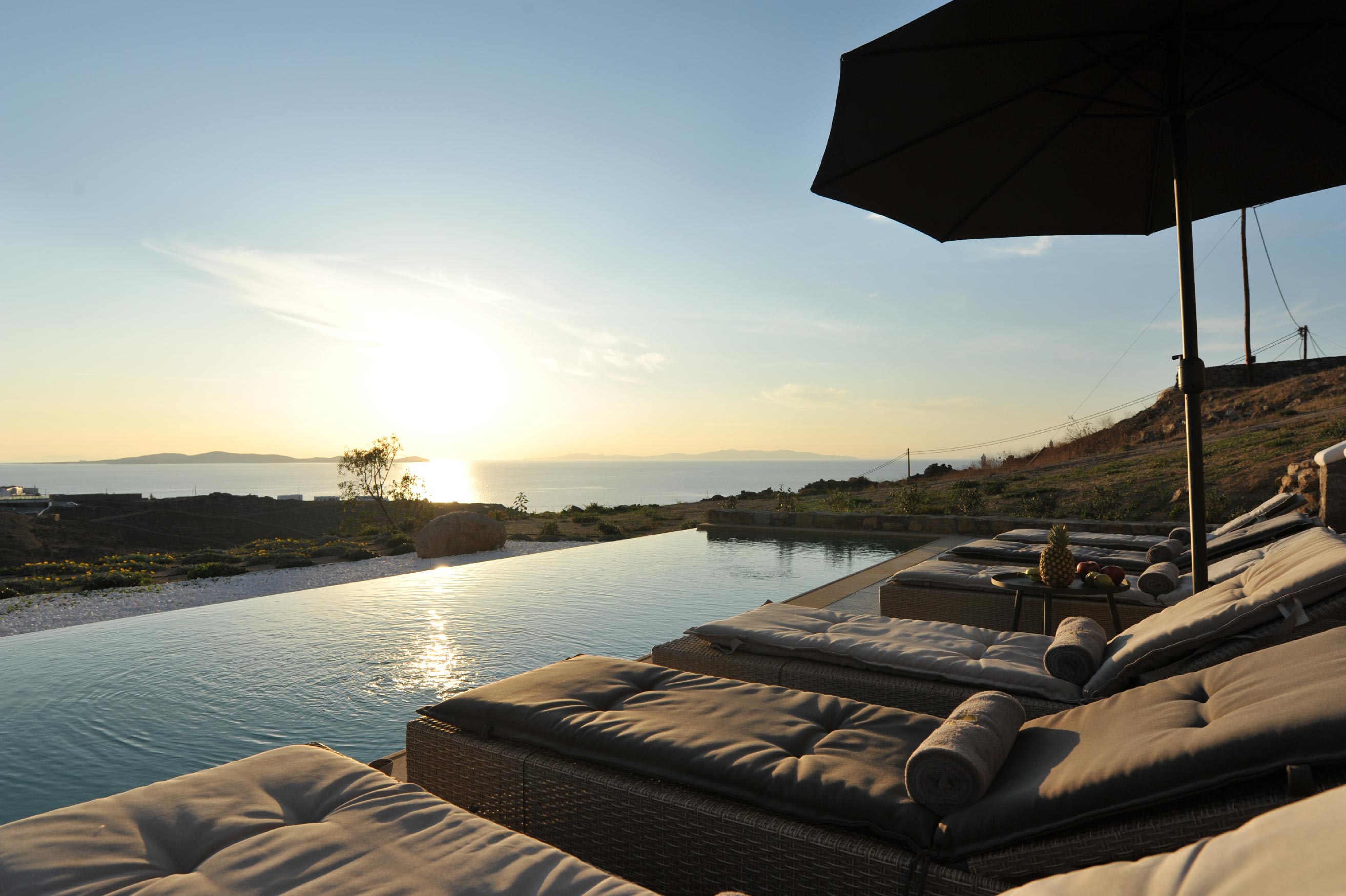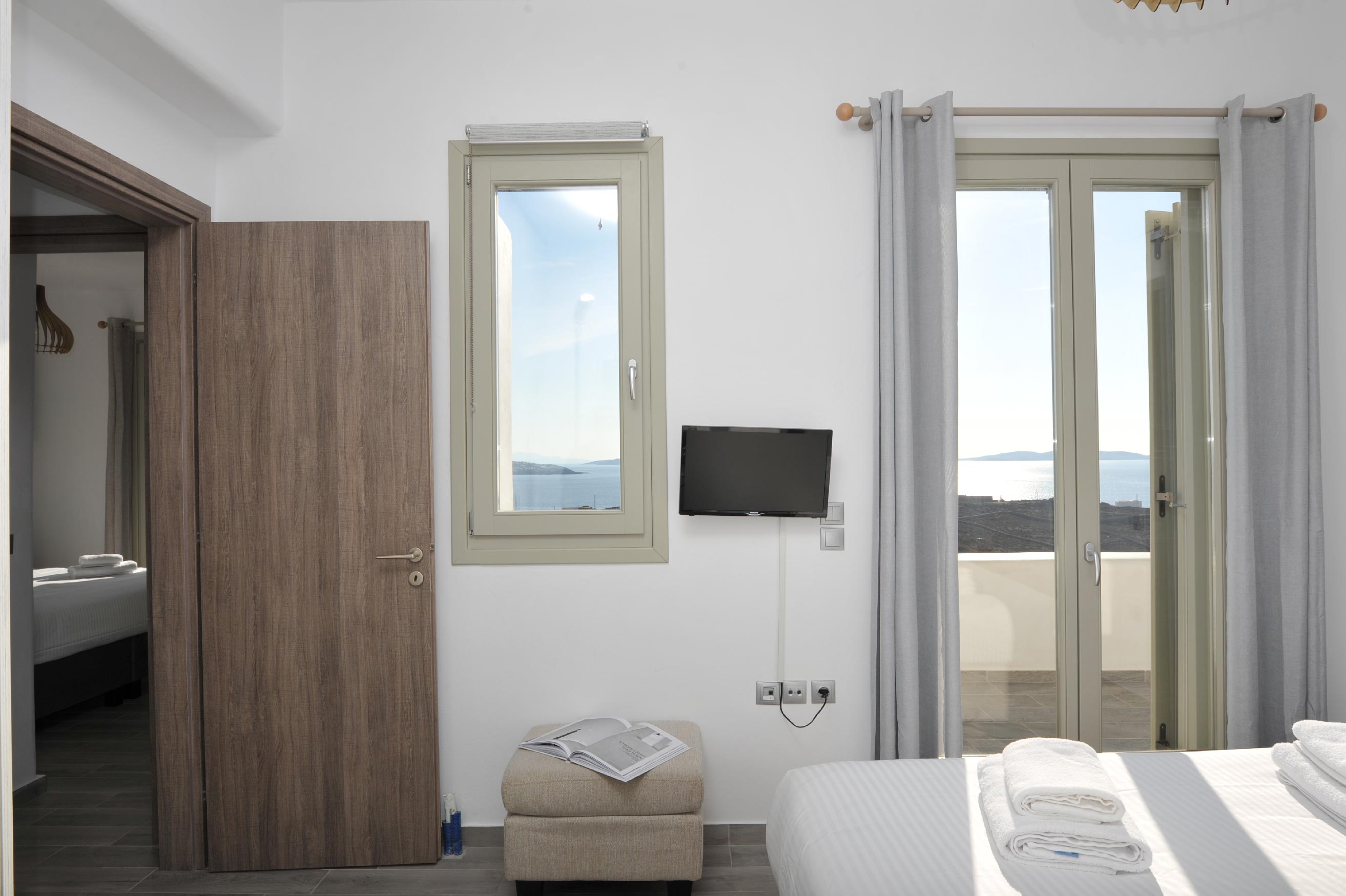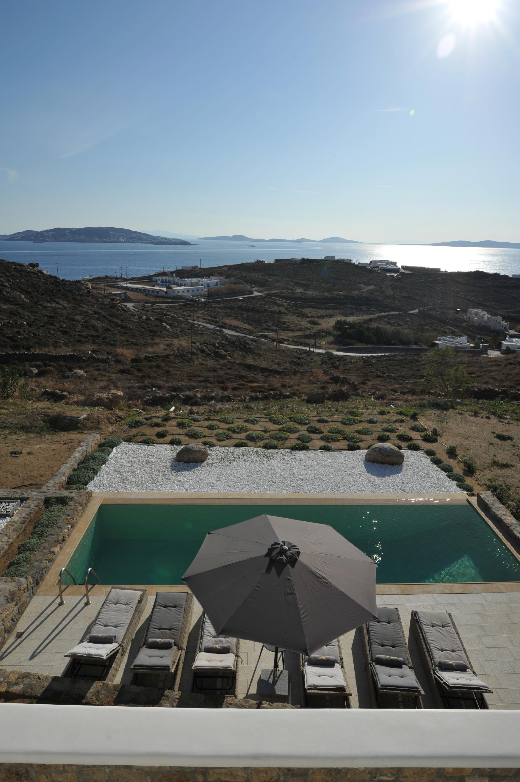 Welcome to villa Gratia, your luxurious 115 m2 villa perched on a hillside overlooking the picturesque Houlakia bay in Mykonos. This newly built retreat (2019) offers the perfect blend of proximity to Mykonos town (just 4.9 km away) and tranquility away from the hustle and bustle. With stunning views of the Aegean Sea and neighboring islands Syros and Rhenia, Peace boasts three bedrooms, each with its own bathroom featuring rain showers and private balconies to soak in the mesmerizing vistas. The upper level bedrooms provide a serene escape, while the lower level offers a cozy living room with a convertible sofa bed, a dining area, and a fully-equipped kitchen.