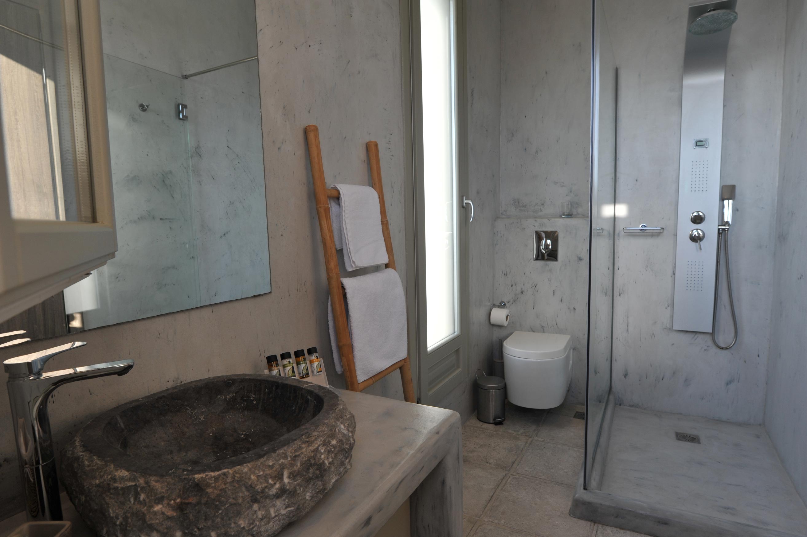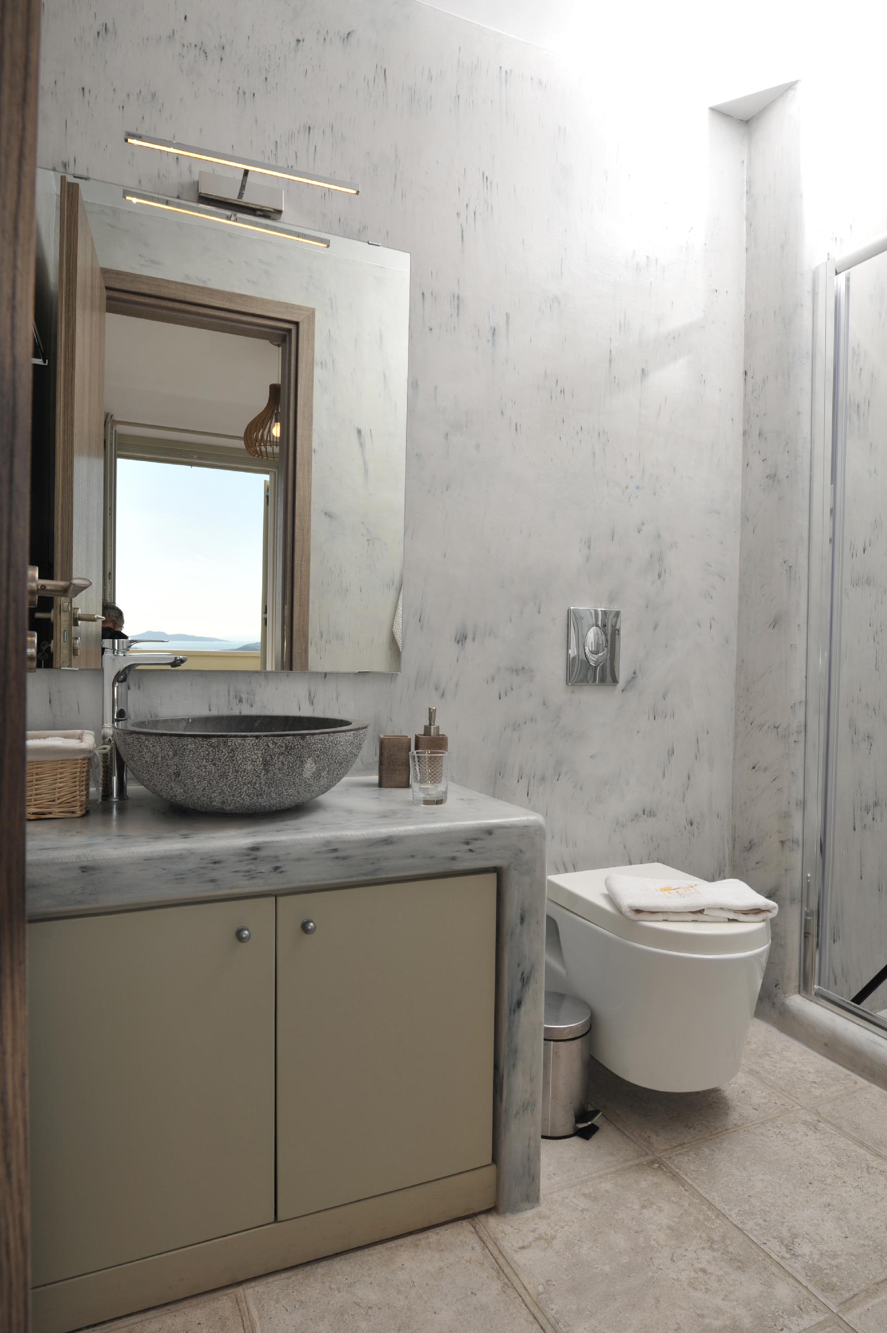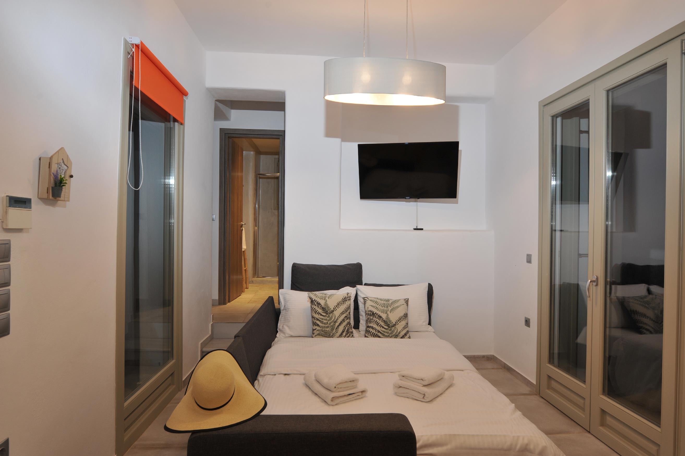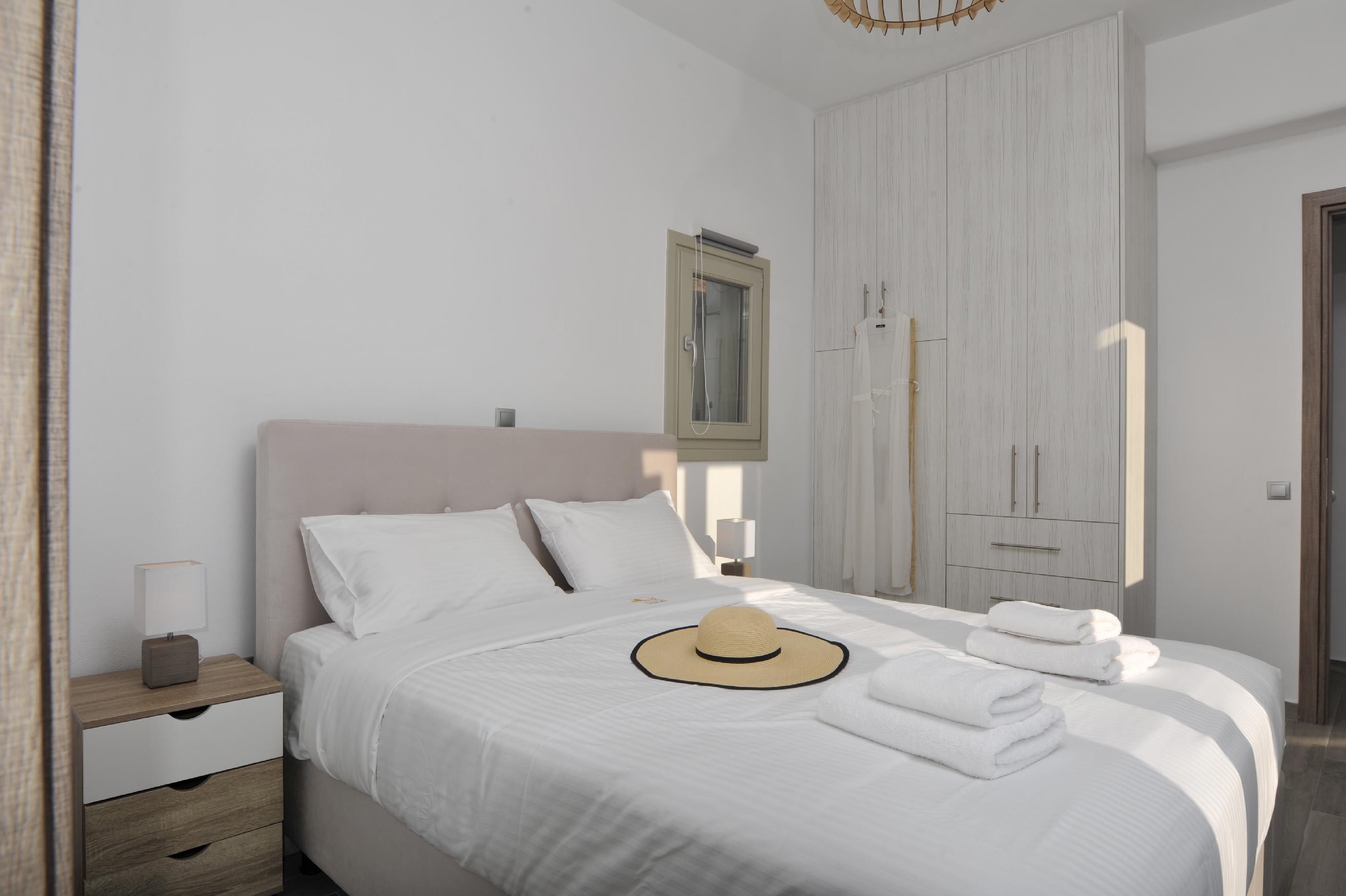 Welcome to villa Gratia, your luxurious 115 m2 villa perched on a hillside overlooking the picturesque Houlakia bay in Mykonos. This newly built retreat (2019) offers the perfect blend of proximity to Mykonos town (just 4.9 km away) and tranquility away from the hustle and bustle. With stunning views of the Aegean Sea and neighboring islands Syros and Rhenia, Peace boasts three bedrooms, each with its own bathroom featuring rain showers and private balconies to soak in the mesmerizing vistas. The upper level bedrooms provide a serene escape, while the lower level offers a cozy living room with a convertible sofa bed, a dining area, and a fully-equipped kitchen.