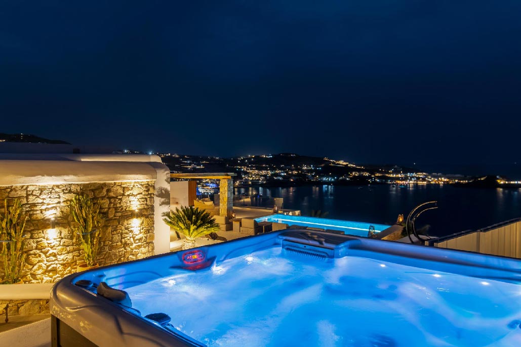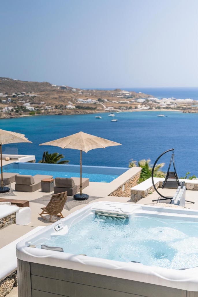 Villa Iason is gracefully located in Agios Lazaros, thus offering the most spectacular sea view in Mykonos. Overlooking the beaches of Psarou, Paraga and Scorpios, in addition to the islands of Paros and Naxos, the outdoor terrace has it all to make your stay heavenly. Between the private infinity pool, outdoor Jacuzzi, outdoor bar, barbecue corner, sun loungers and dining area, you will be able to enjoy every moment of your stay and fulfill your dream holiday bucket list.