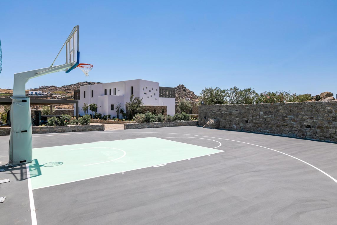 Ideally secluded, the approach to the estate is via a private road and entry to the premises is secured by a gated entrance with CCTV. The 7 bedroom villa boasts vast indoor and outdoor living spaces giving our guests plentiful options. A professional kitchen caters for private parties of up to 60 persons.The 120 sqm private heated pool, a fully equipped in and outdoor gym, a table tennis and a basketball or mini soccer court are available for the guests’ full use for entertainment and exercise of mind and body.