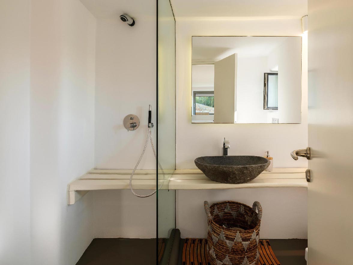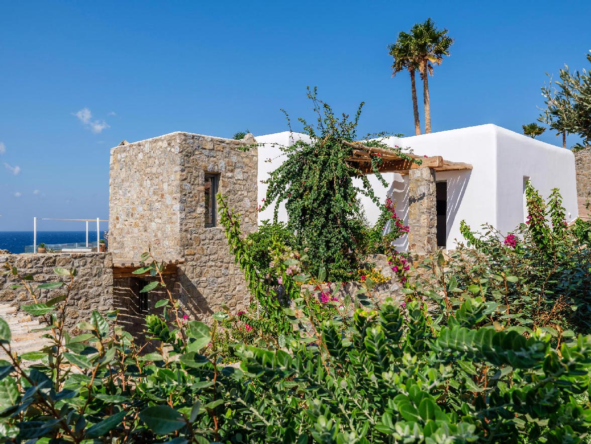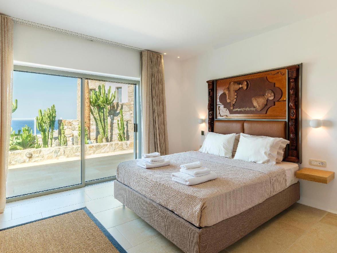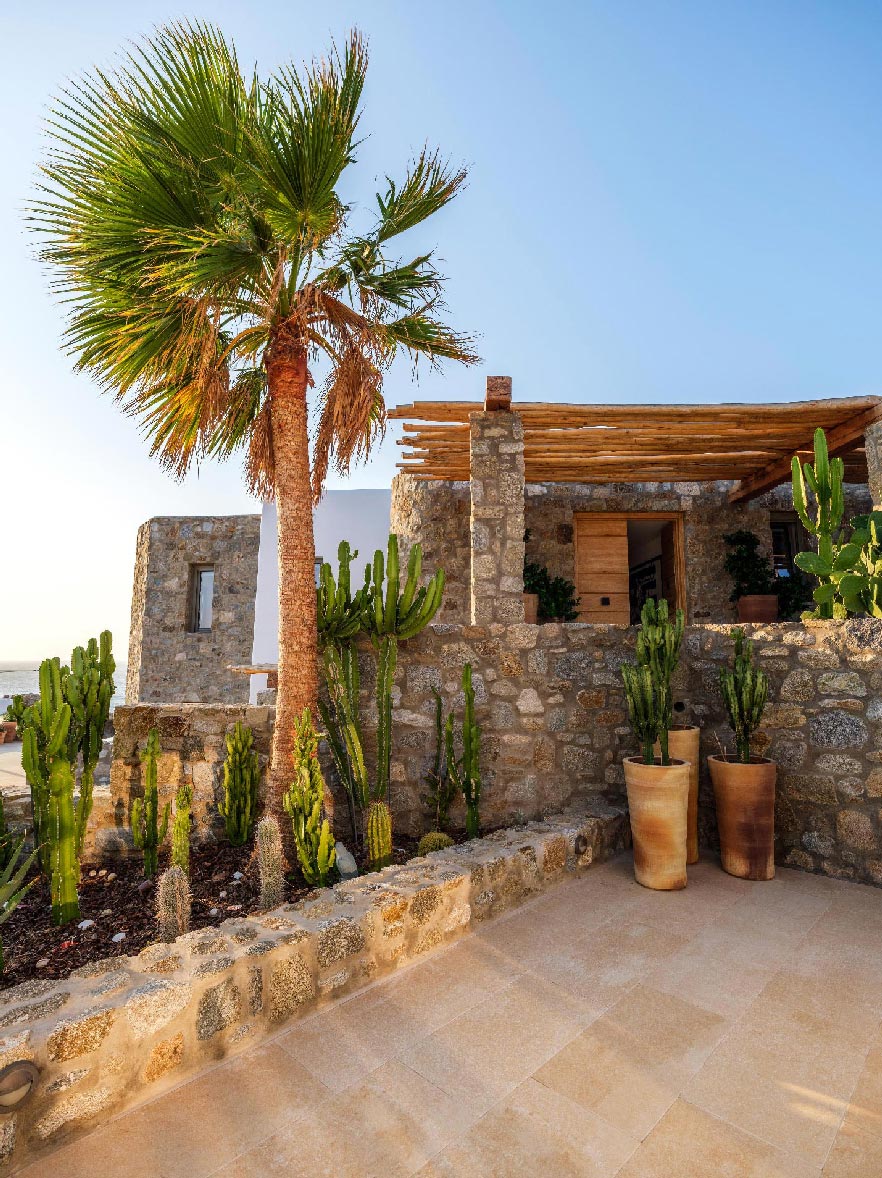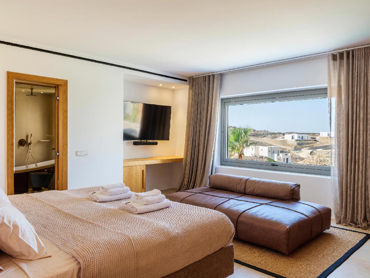 Irida boasts an exclusive perch with breathtaking views of Chouloukas Beach on the captivating Mykonos Island. This architecturally striking stone villa blends contemporary elegance with lavish amenities, ensuring an unforgettable experience for all who choose to stay. Take pleasure in the sweeping sunset and captivating Aegean scenery that graces this extraordinary property. The Villa presents an architectural design characterized by its contemporary and stylish aesthetics. It features three captivating swimming pools, elegantly framed by opulent sun loungers, providing a breathtaking setting for memorable sunset vistas. Enhancing its allure, an outdoor dining area is discreetly nestled beneath a protective pergola, complemented by a meticulously crafted stone barbecue, ensuring a delightful experience of al fresco dining beneath the starlit night sky
