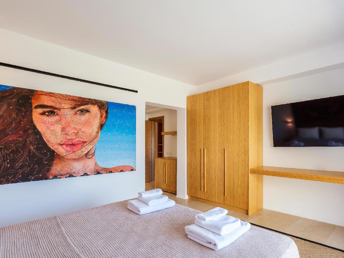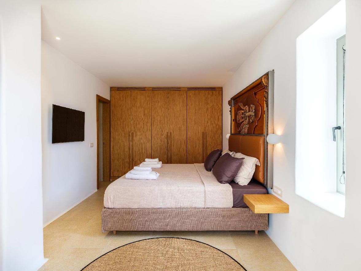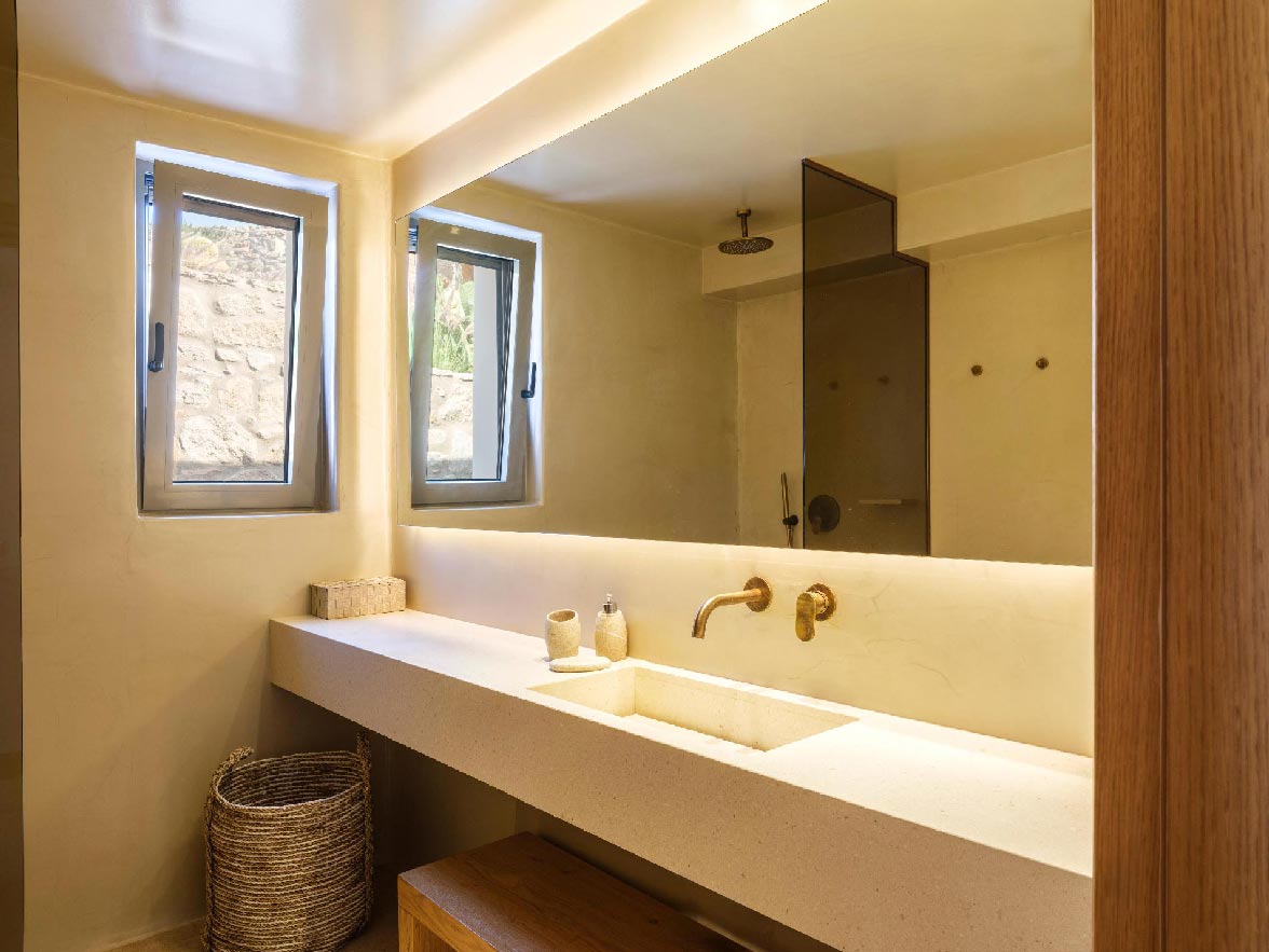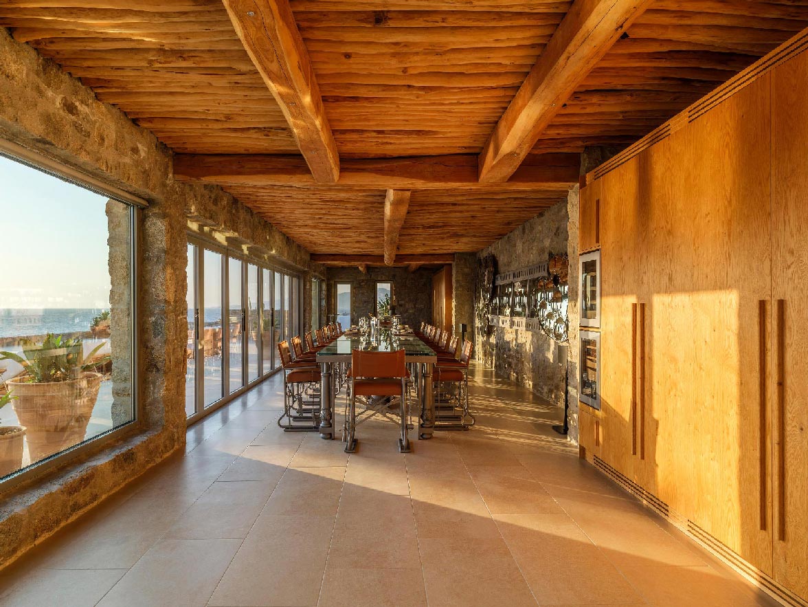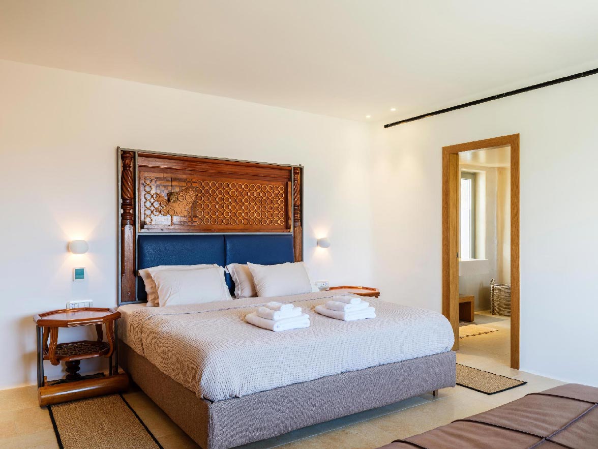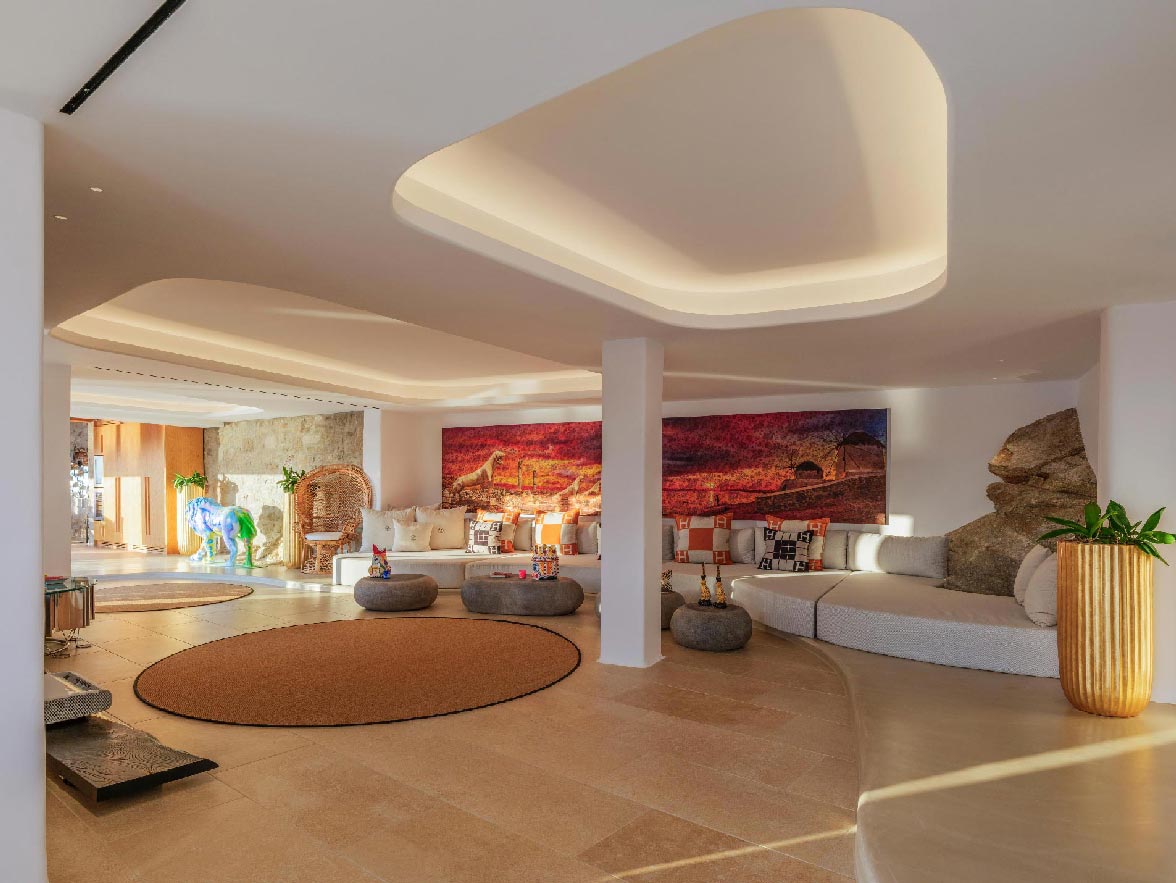 Irida boasts an exclusive perch with breathtaking views of Chouloukas Beach on the captivating Mykonos Island. This architecturally striking stone villa blends contemporary elegance with lavish amenities, ensuring an unforgettable experience for all who choose to stay. Take pleasure in the sweeping sunset and captivating Aegean scenery that graces this extraordinary property. The Villa presents an architectural design characterized by its contemporary and stylish aesthetics. It features three captivating swimming pools, elegantly framed by opulent sun loungers, providing a breathtaking setting for memorable sunset vistas. Enhancing its allure, an outdoor dining area is discreetly nestled beneath a protective pergola, complemented by a meticulously crafted stone barbecue, ensuring a delightful experience of al fresco dining beneath the starlit night sky