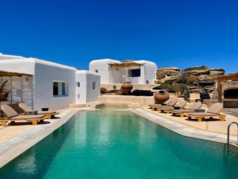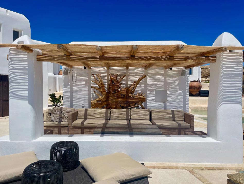 Established on a land of 7.000 sqm in Pyrgi, between Paradise bay and Super Paradise beach, everything about this property breathes cool and calmness.