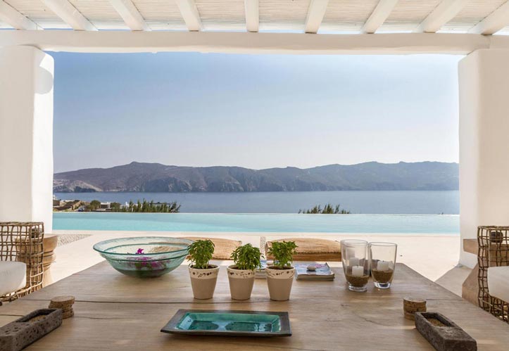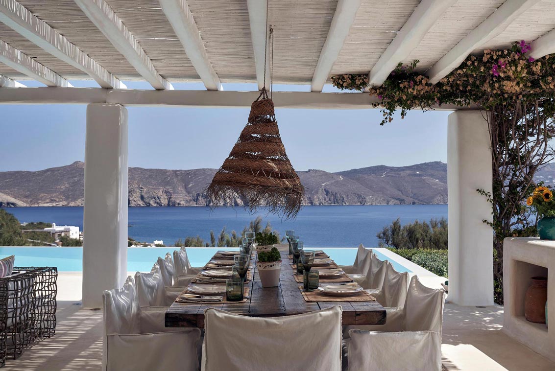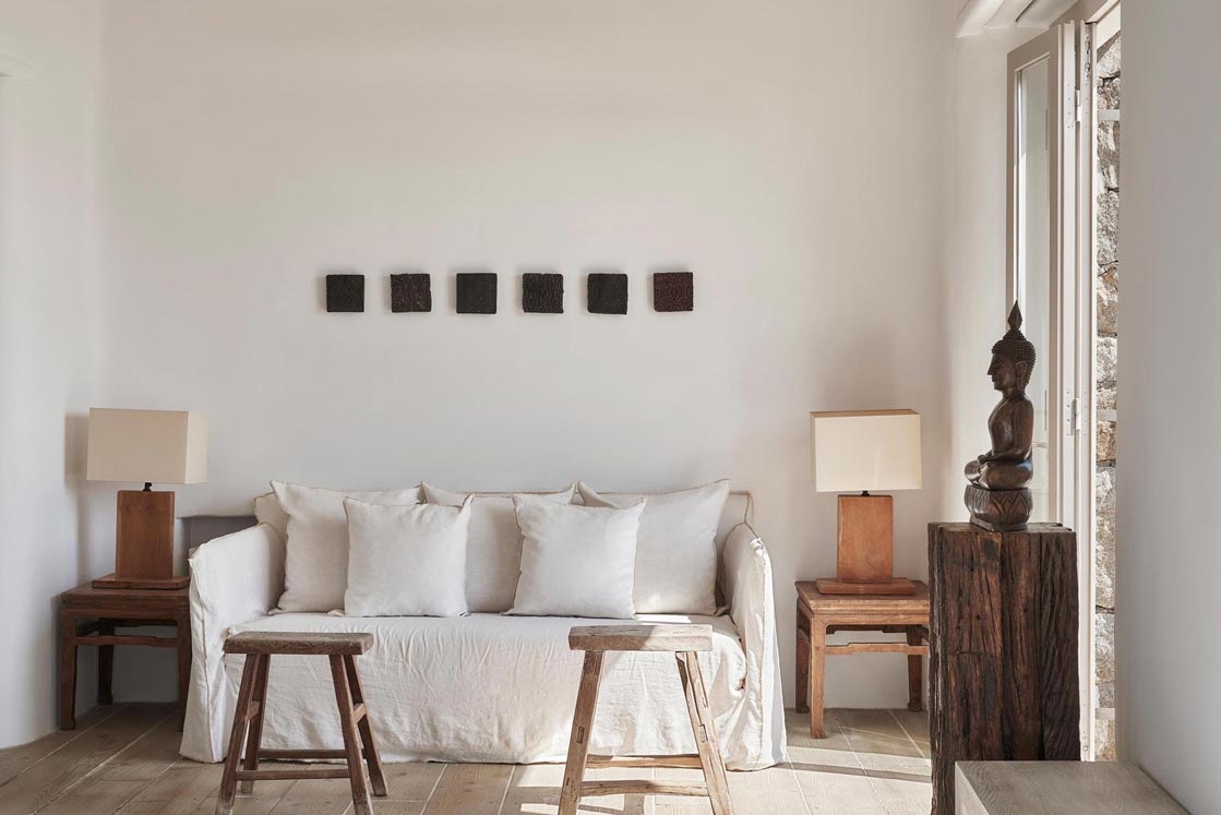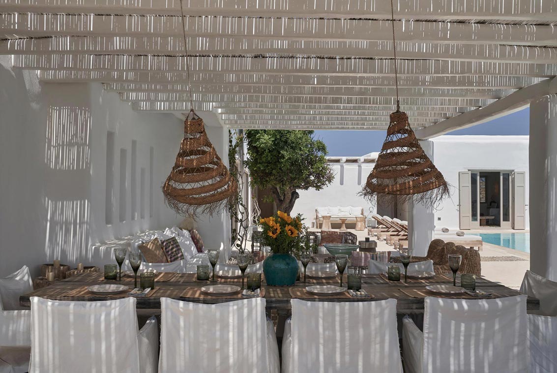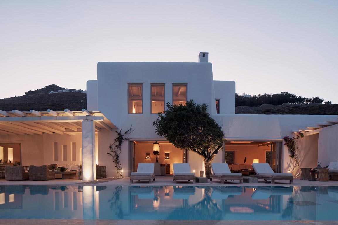 Villa Kallisti offers classic Mykonian style at its best, with an airy, easy and happy atmosphere. Agios Sostis beach with its church and famous little taverna is only a 5 minute walk below while Panormos beach is only a short drive away. The retractable glass French windows