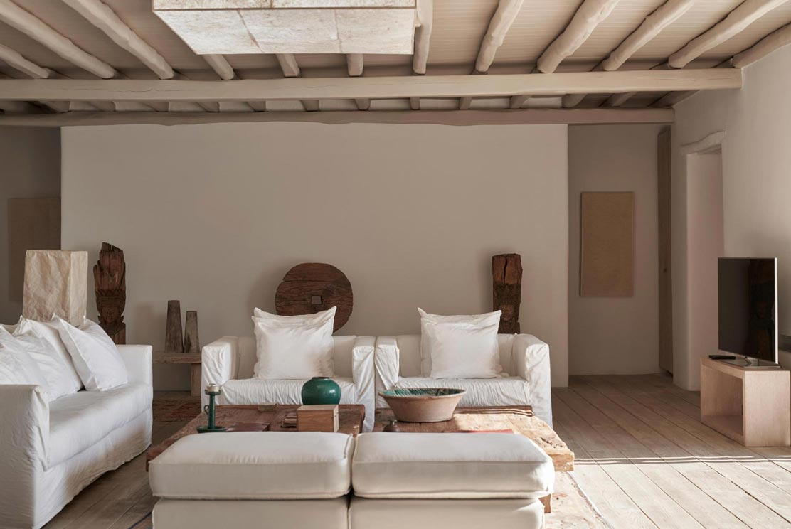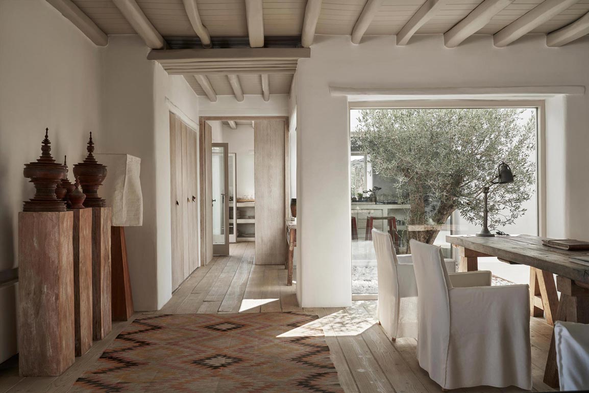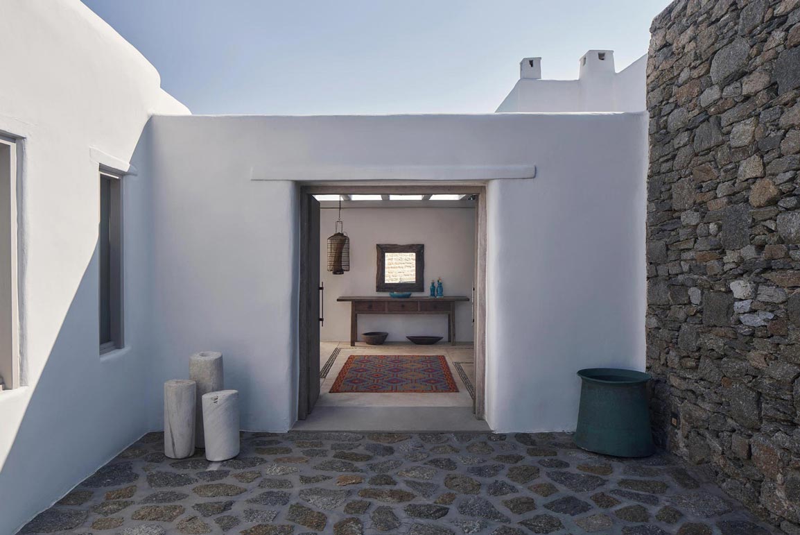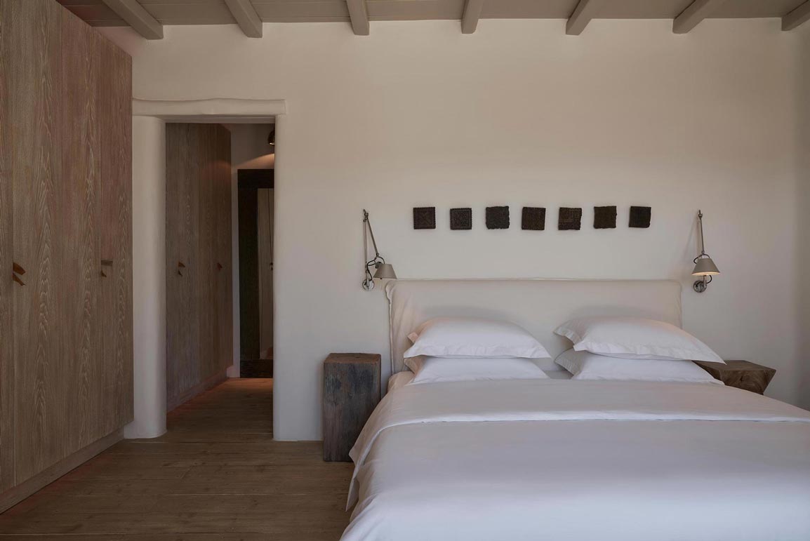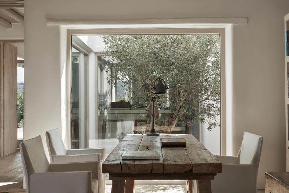 Villa Kallisti offers classic Mykonian style at its best, with an airy, easy and happy atmosphere. Agios Sostis beach with its church and famous little taverna is only a 5 minute walk below while Panormos beach is only a short drive away. The retractable glass French windows