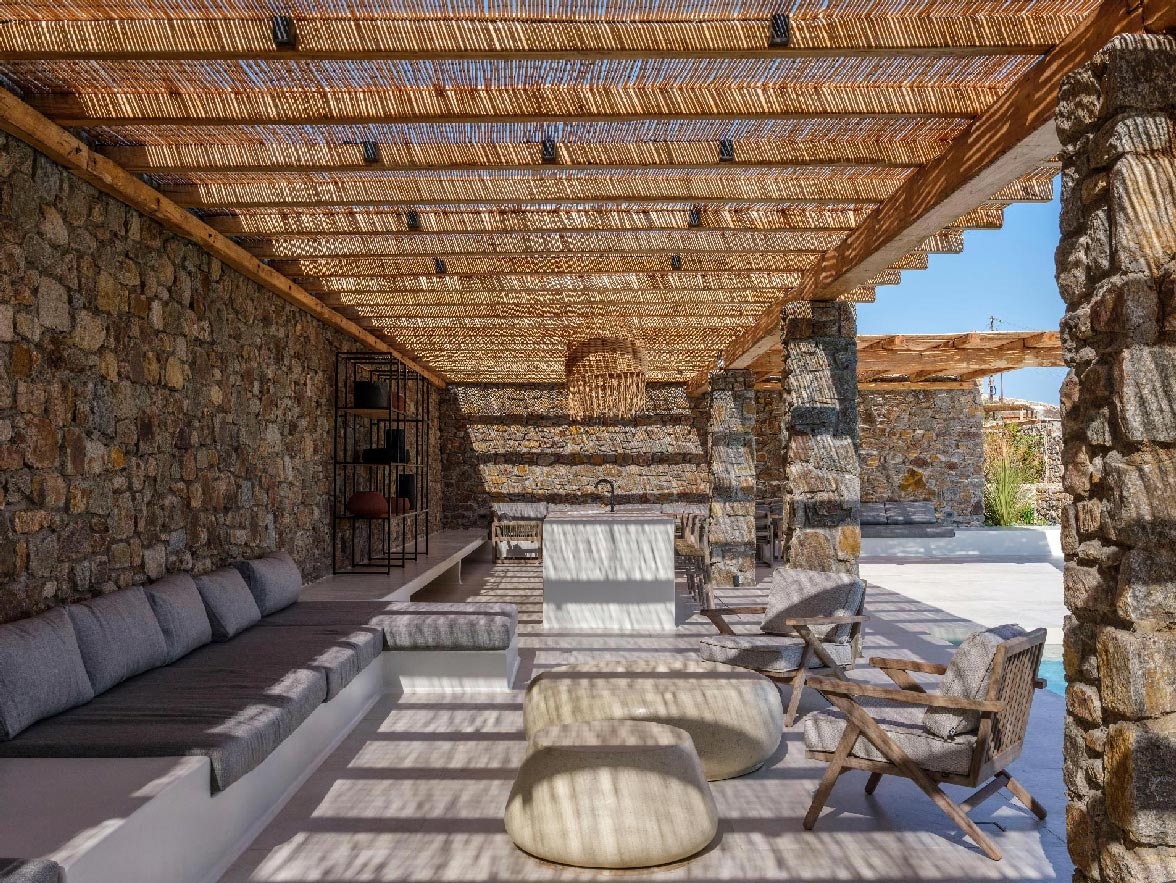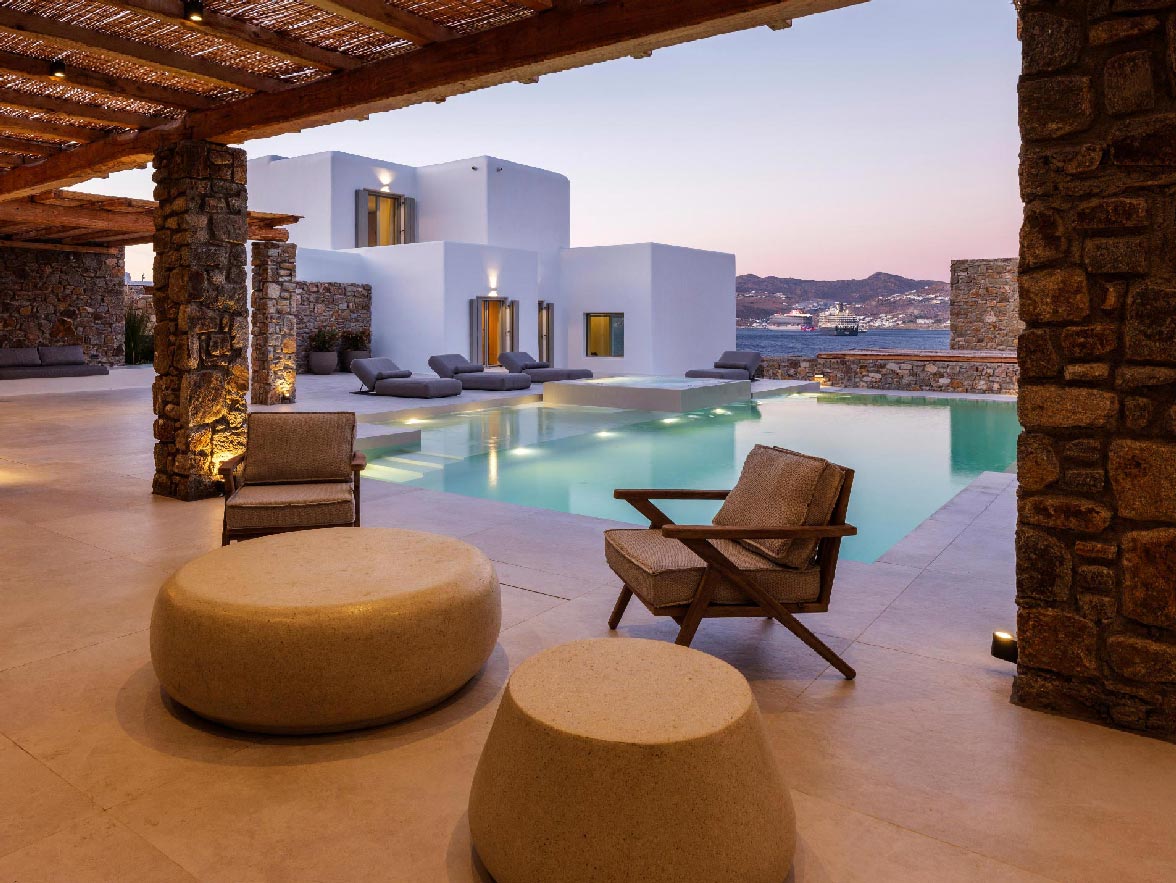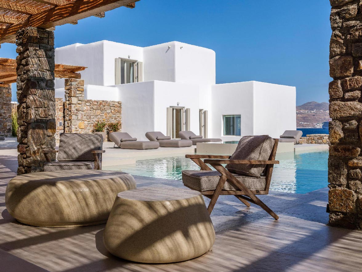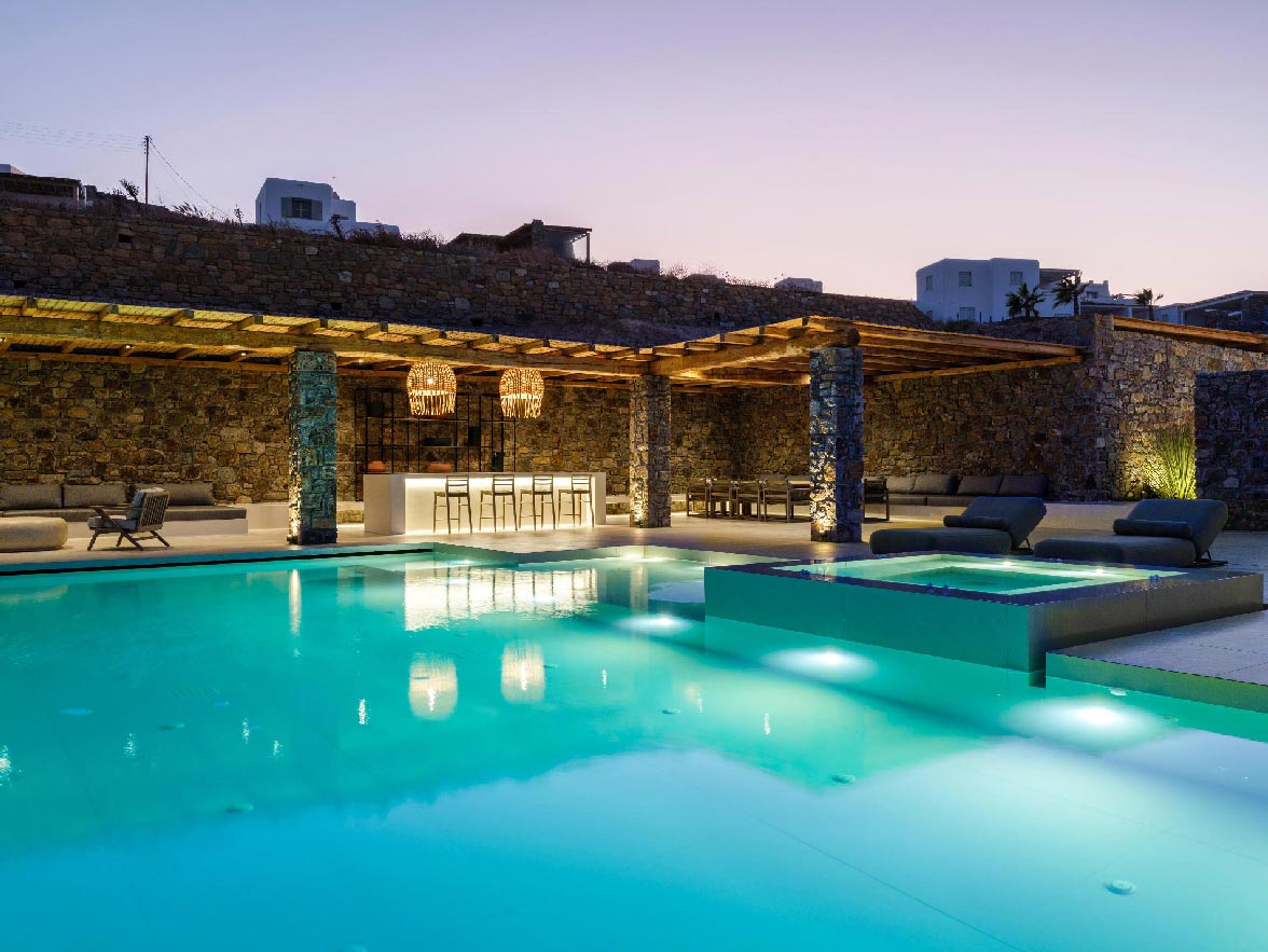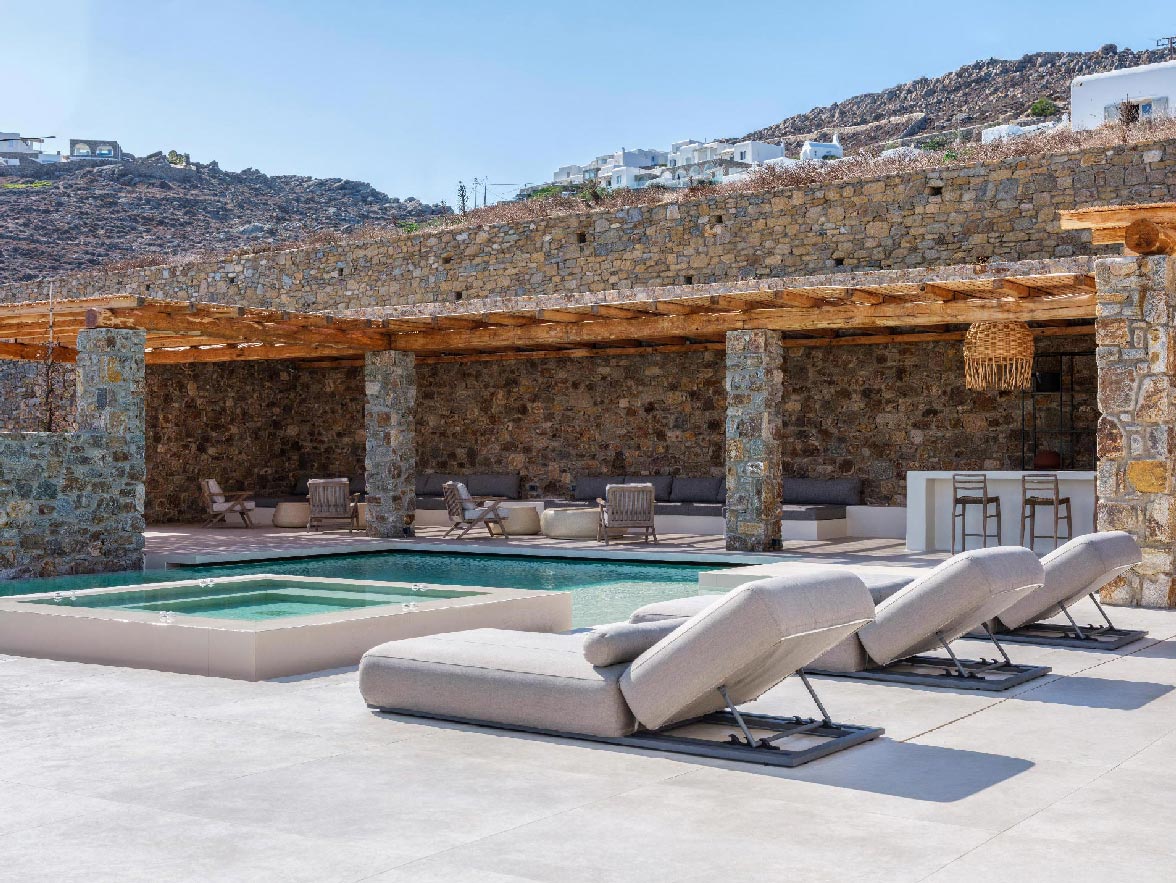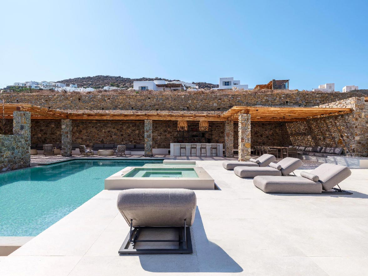 This brand new villa is a high-end property, located only a few minutes away from Ornos and Mykonos Town. The villa offers absolute privacy and proximity to all points of interest, at the same time. Away from the noise of Mykonos town, but still so close to all island facilities and nightlife.